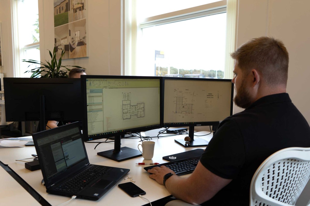 Efter jeres første møde med byggerådgiveren kommer tegneren på banen. Byggerådgiveren deler jeres tanker, krav og ønsker med tegneren, som så begynder at forme en skitse baseret på disse elementer.