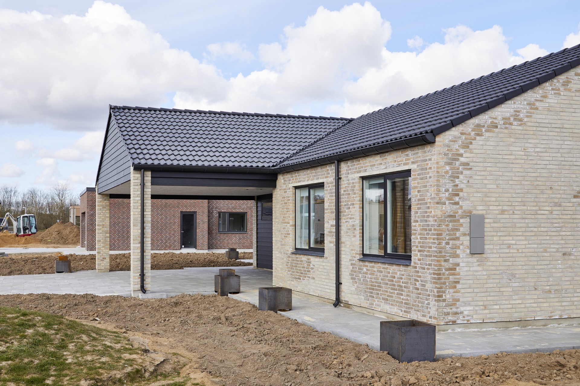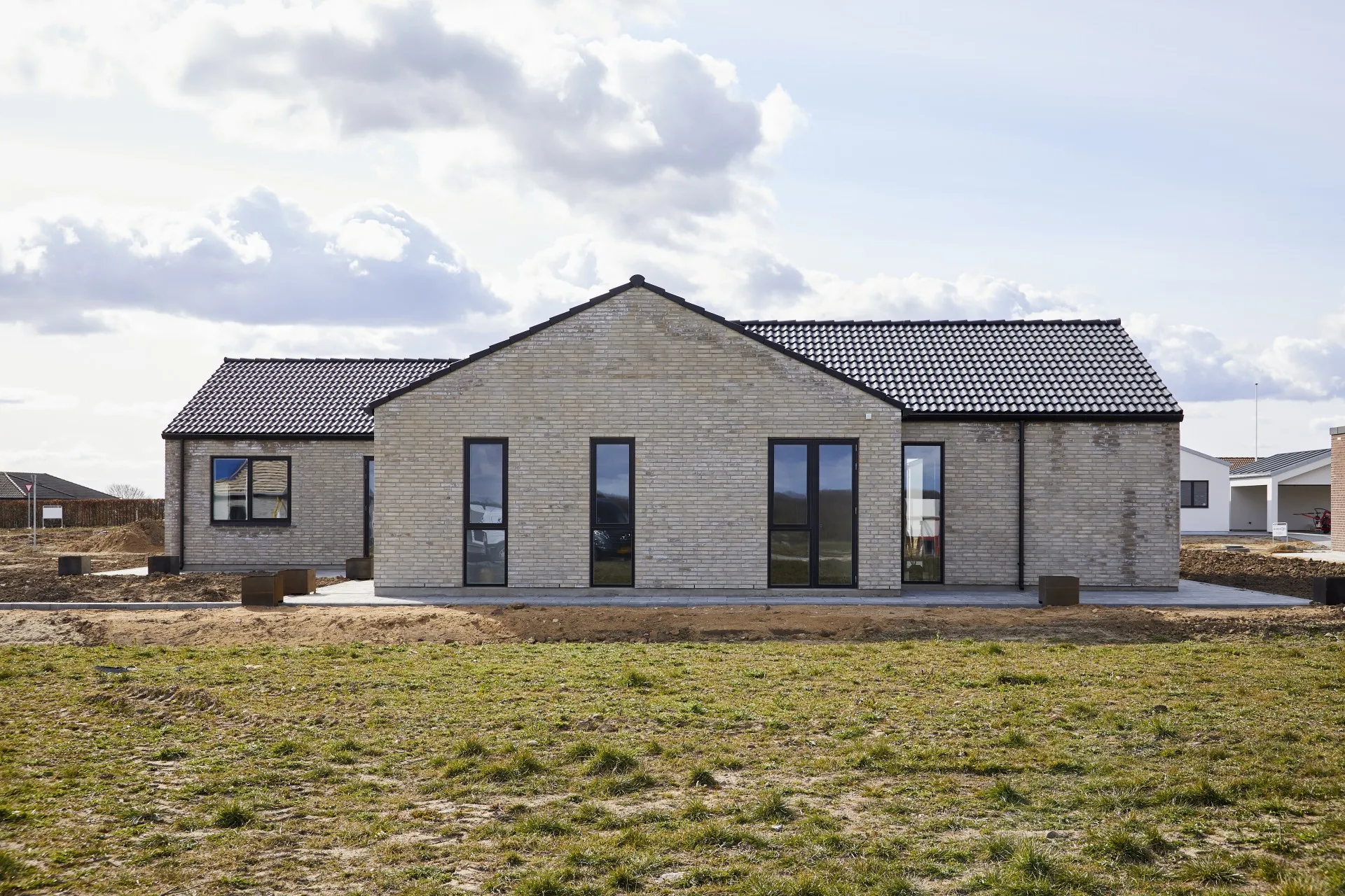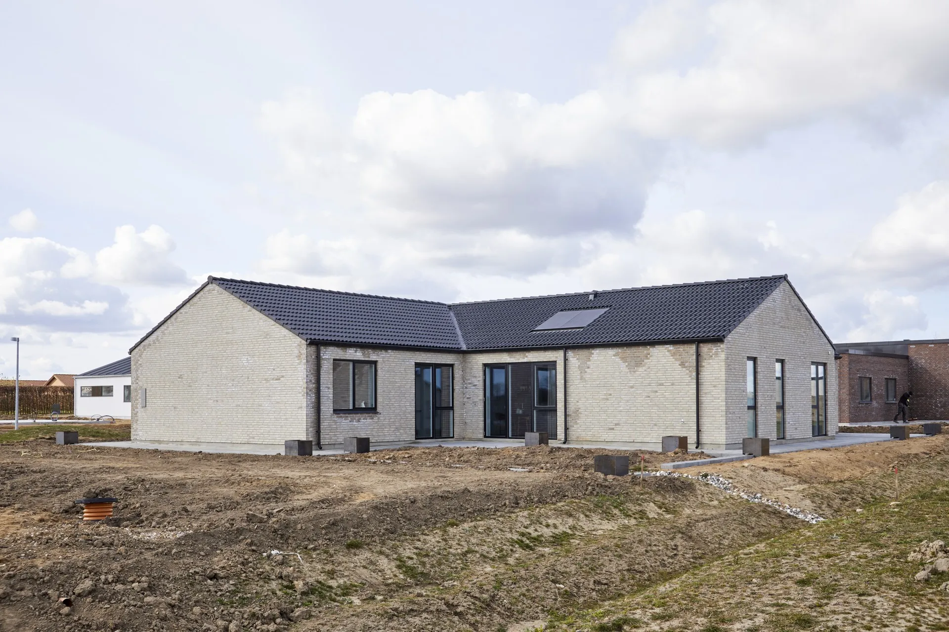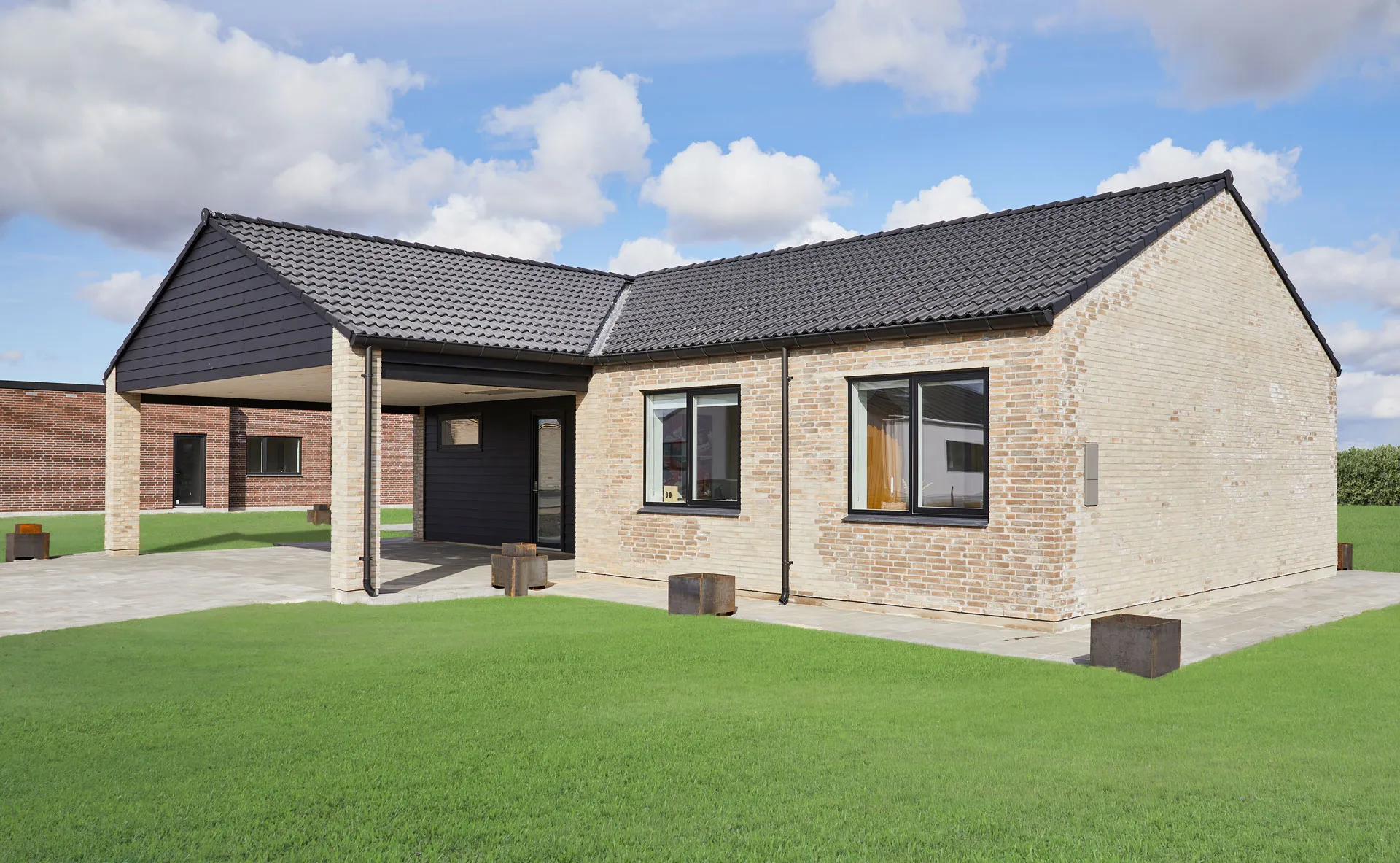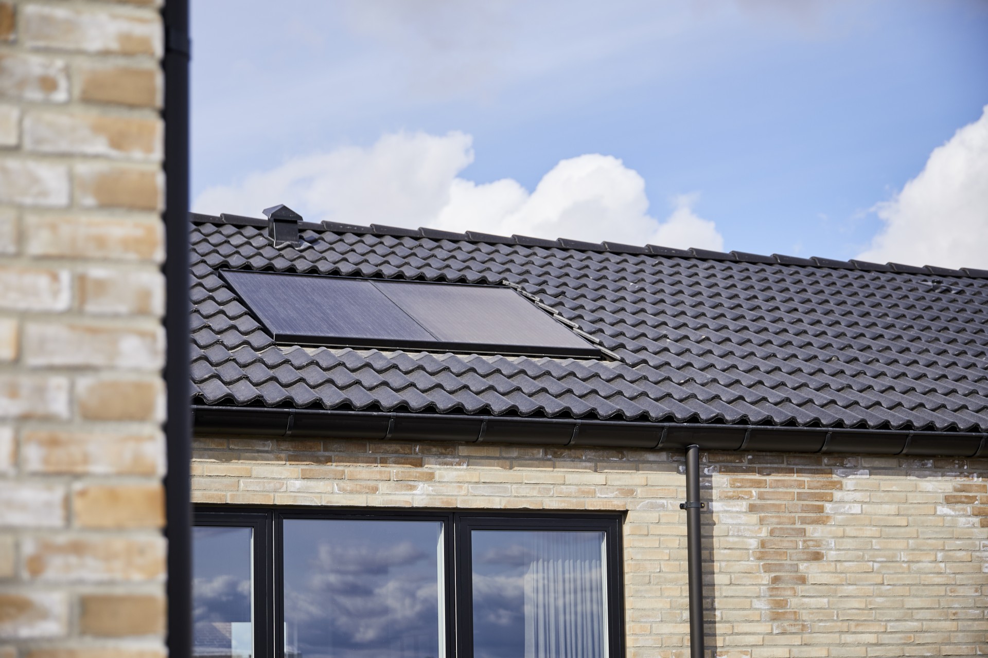 Forskudt hus med saddeltag uden udhæng.
