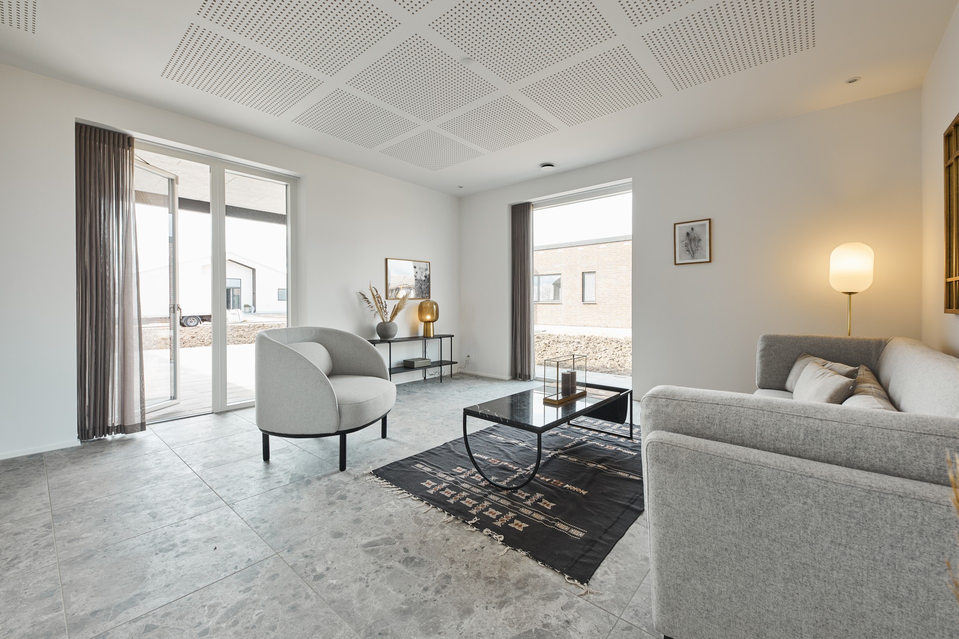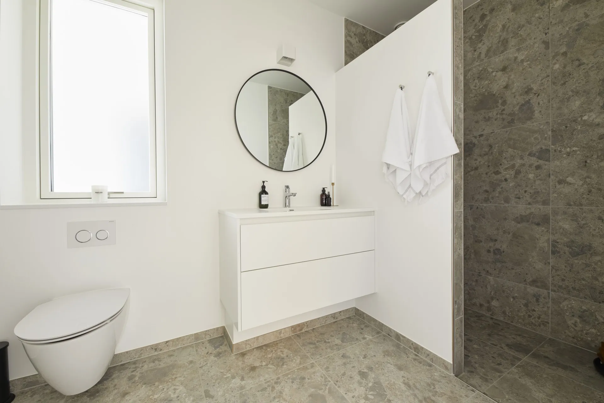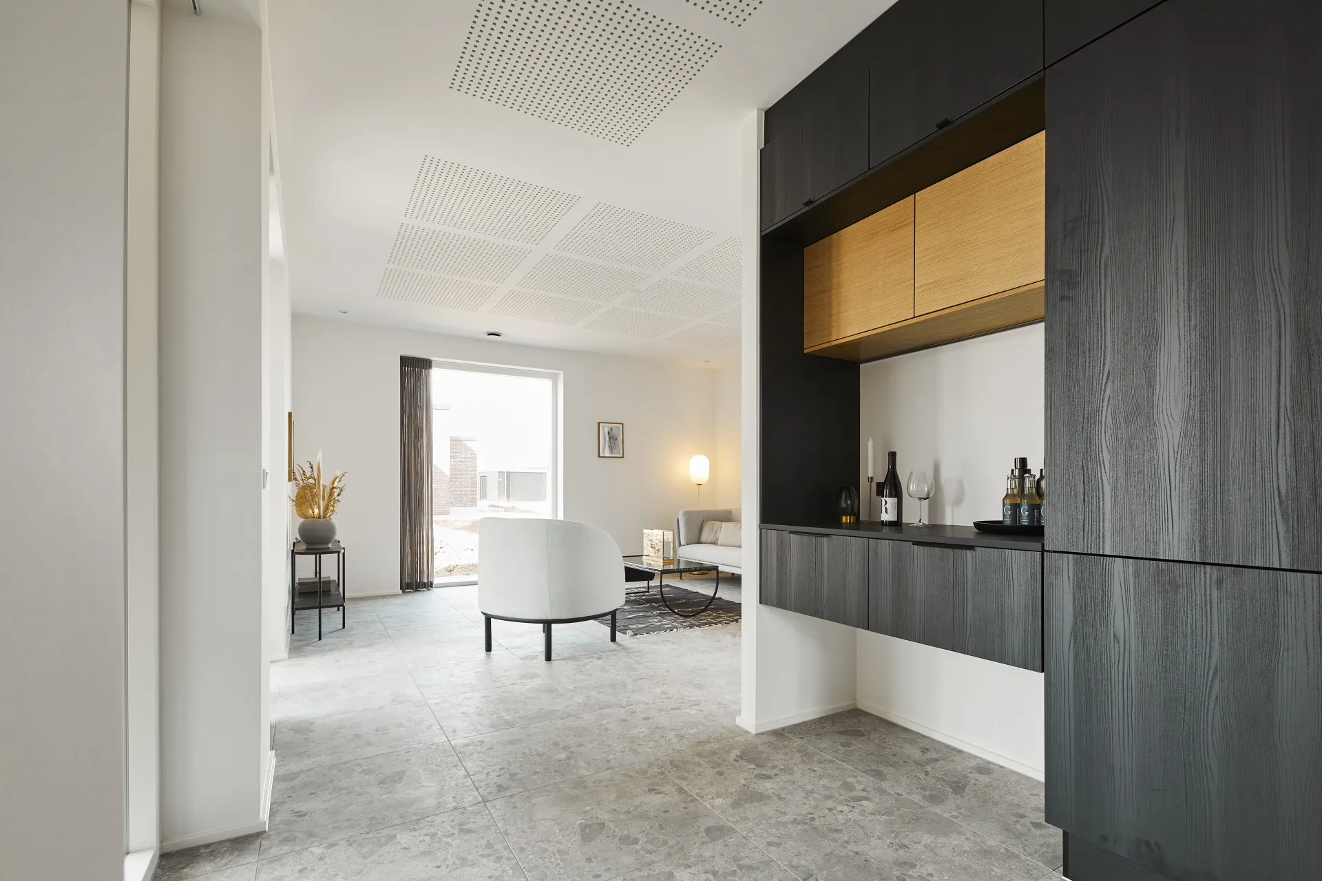 Mursten: Cold Hawaii. Klinker: Ragno Eterna Gråmix. Gulv: Midi-Plank natureg