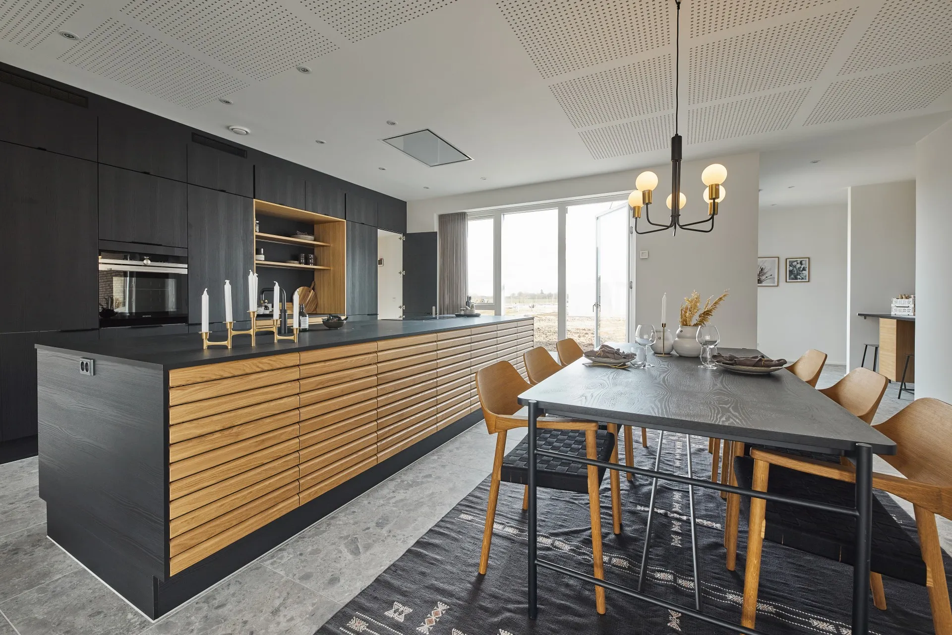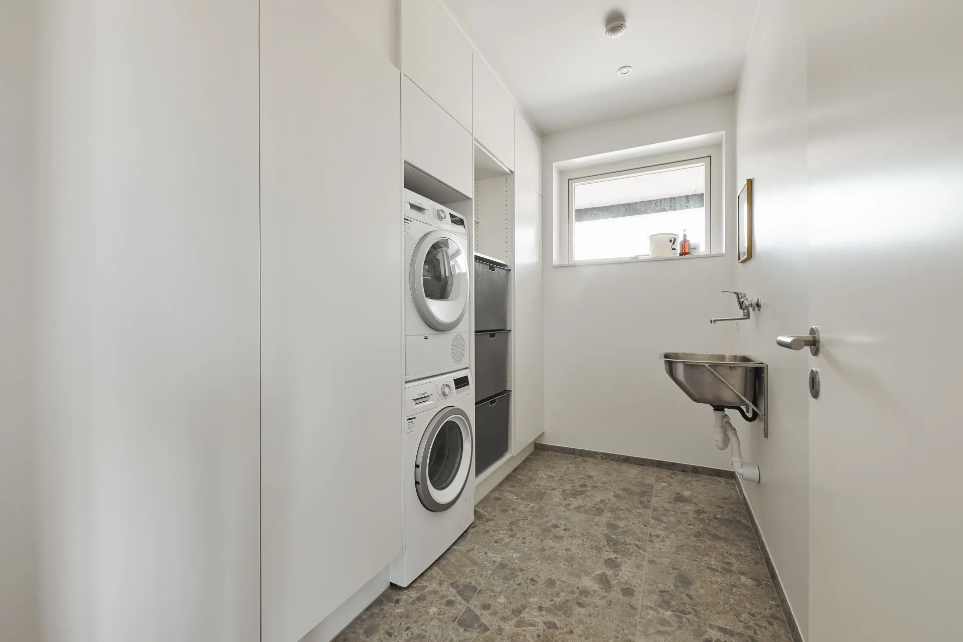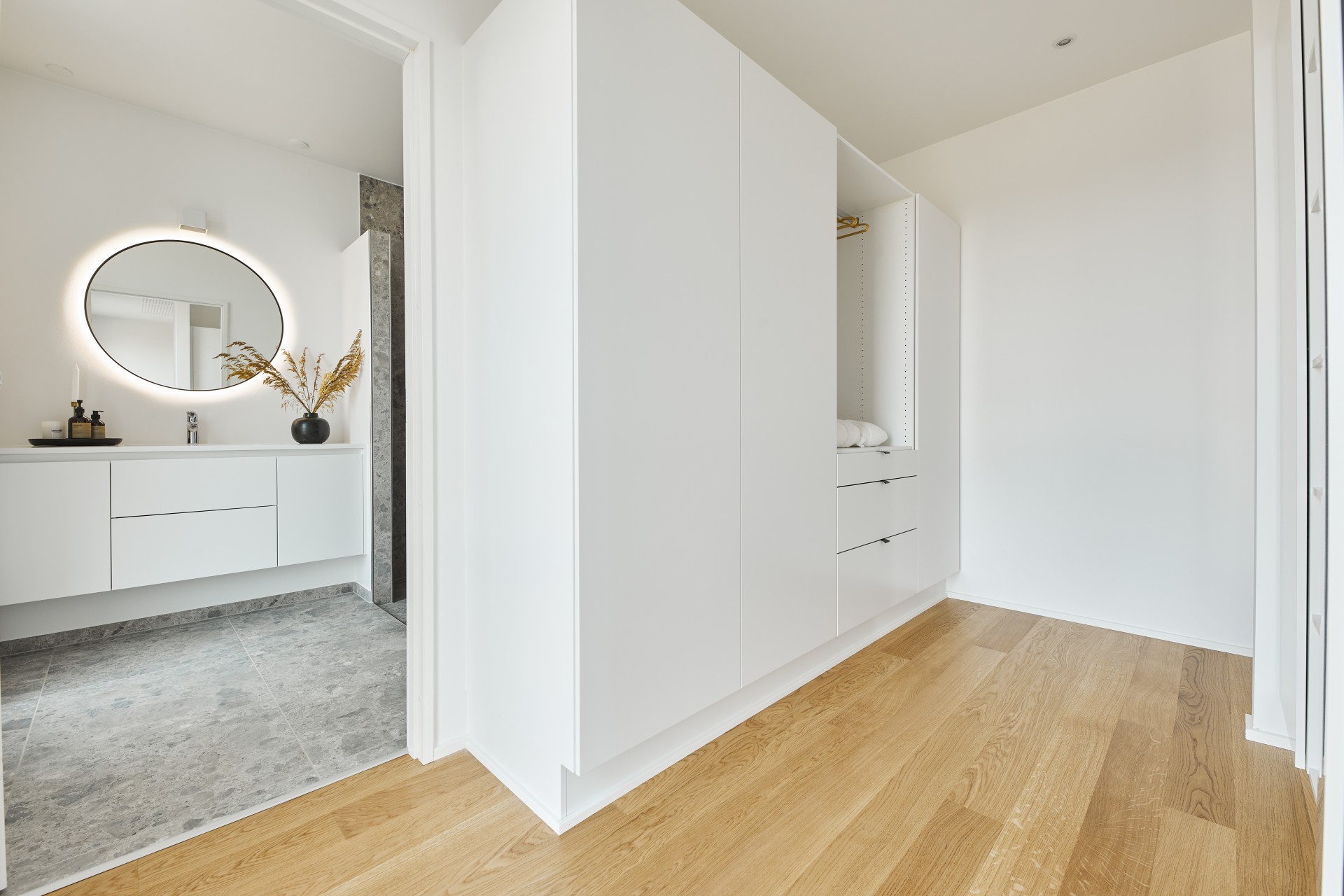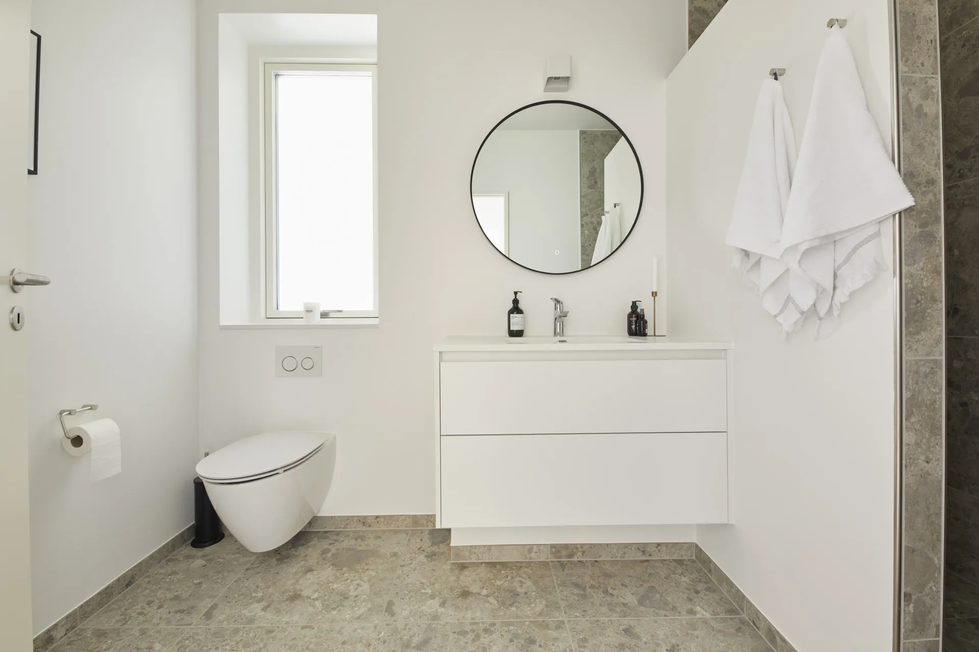 Mursten: Cold Hawaii. Klinker: Ragno Eterna Gråmix. Gulv: Midi-Plank natureg