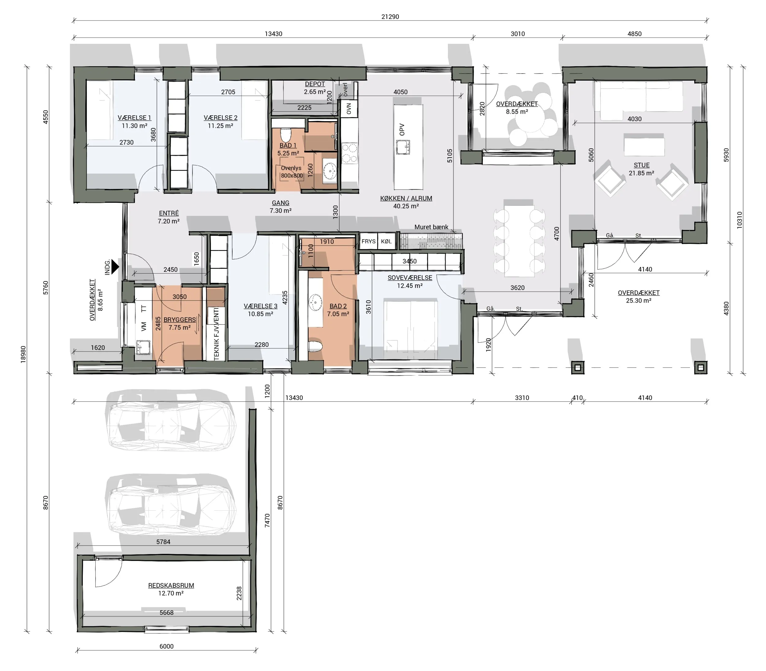 Mursten: Forest. Klinker: Gulv: Hybel 153