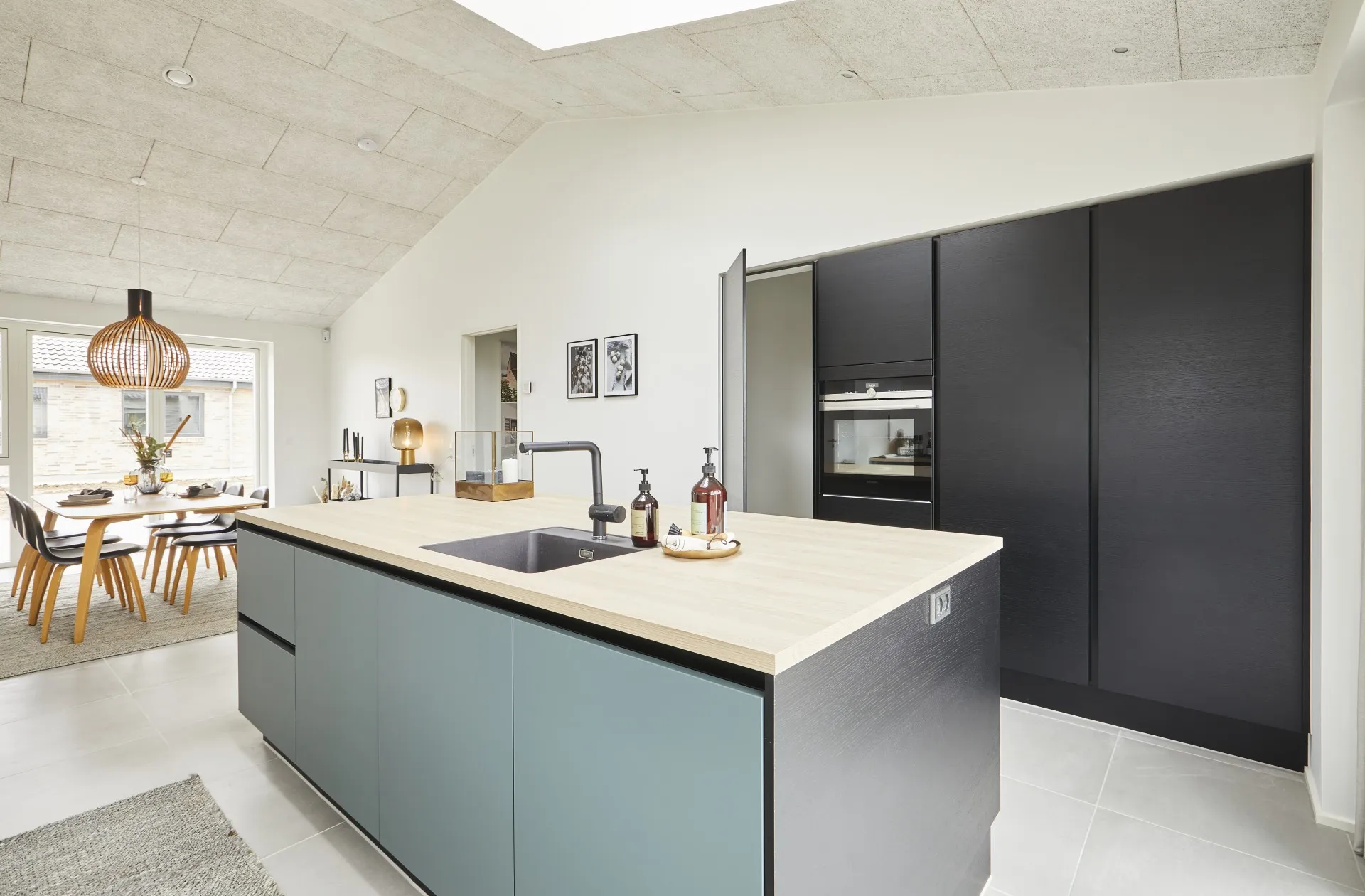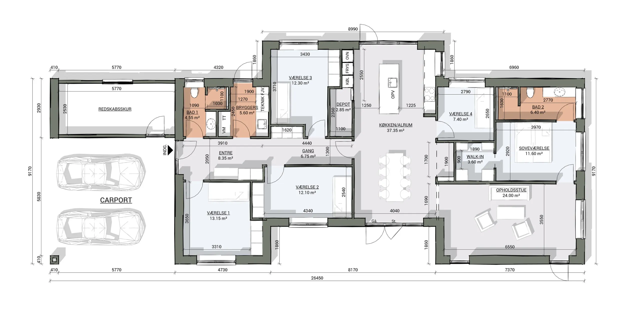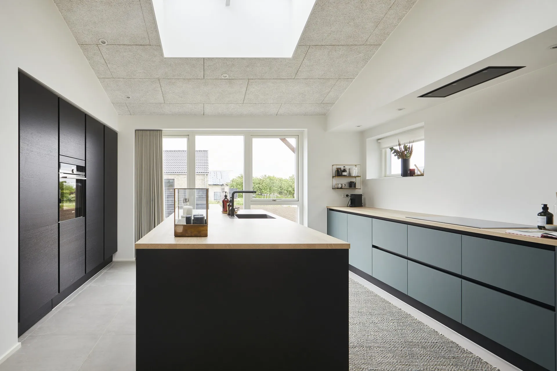 Alkove, walk-in-closet og ovenlys i køkken/alrummet