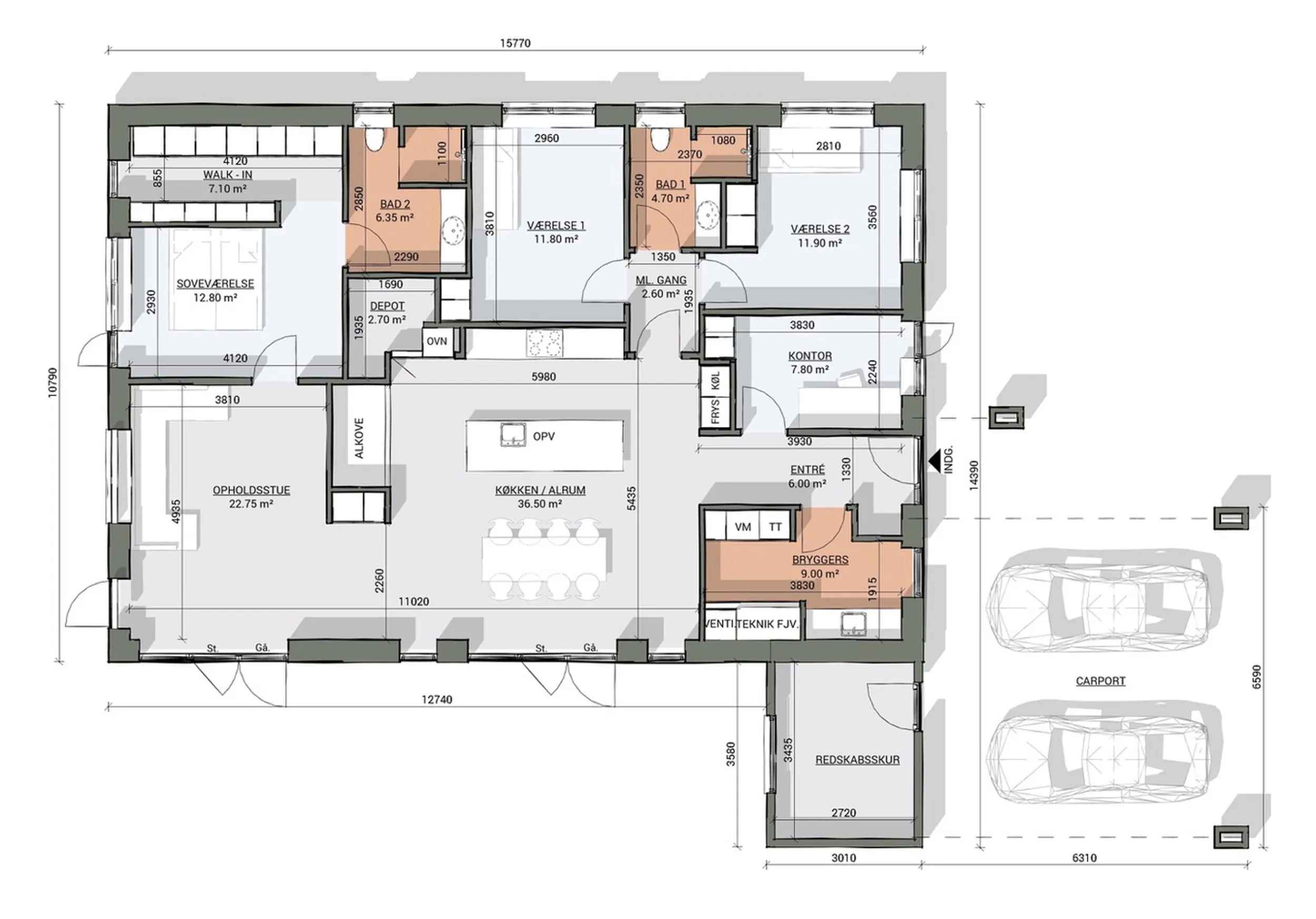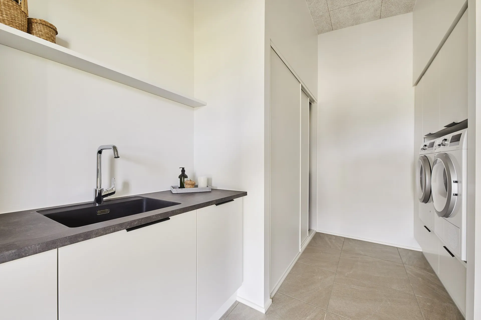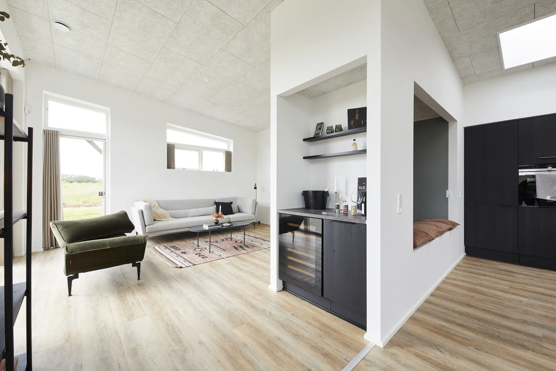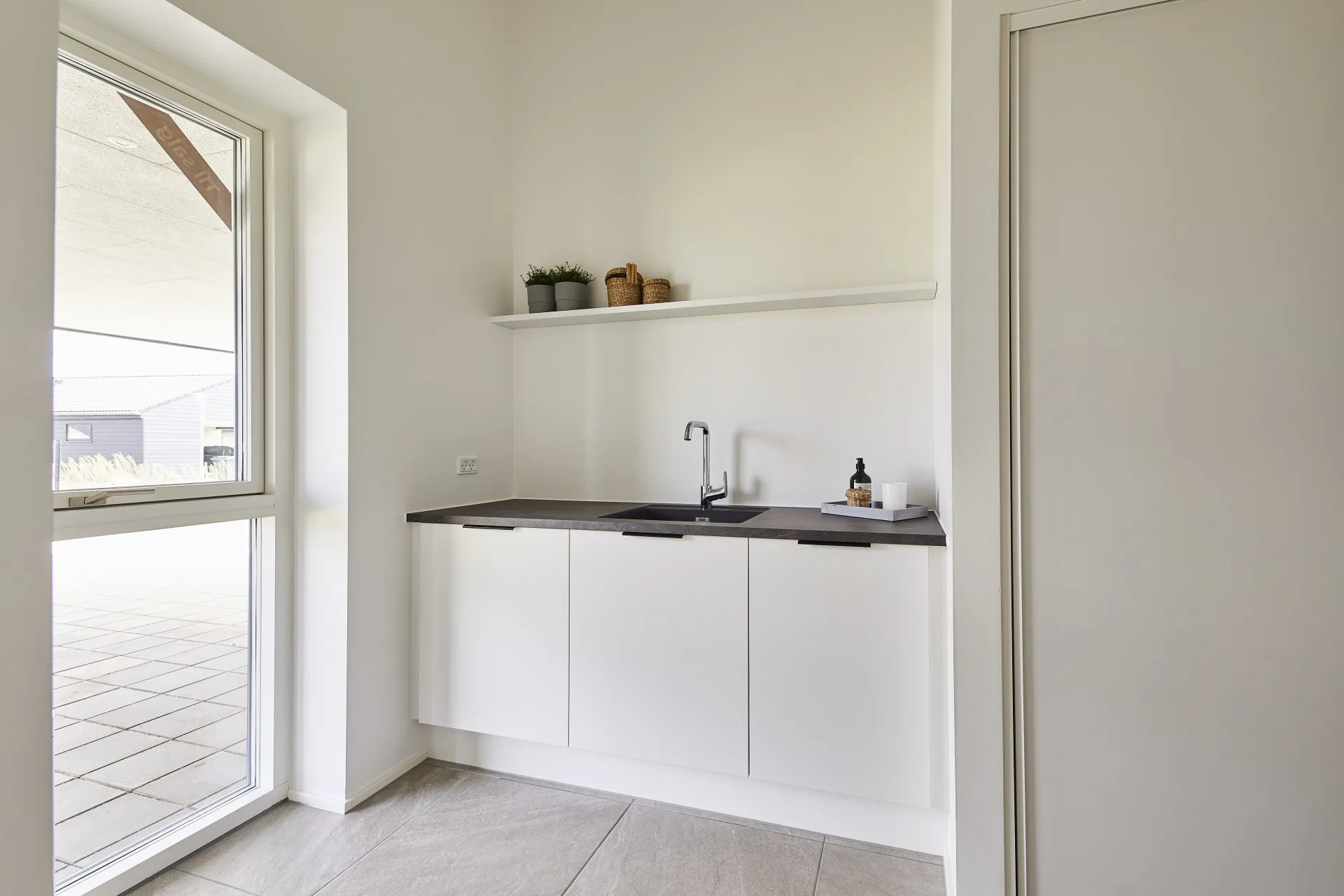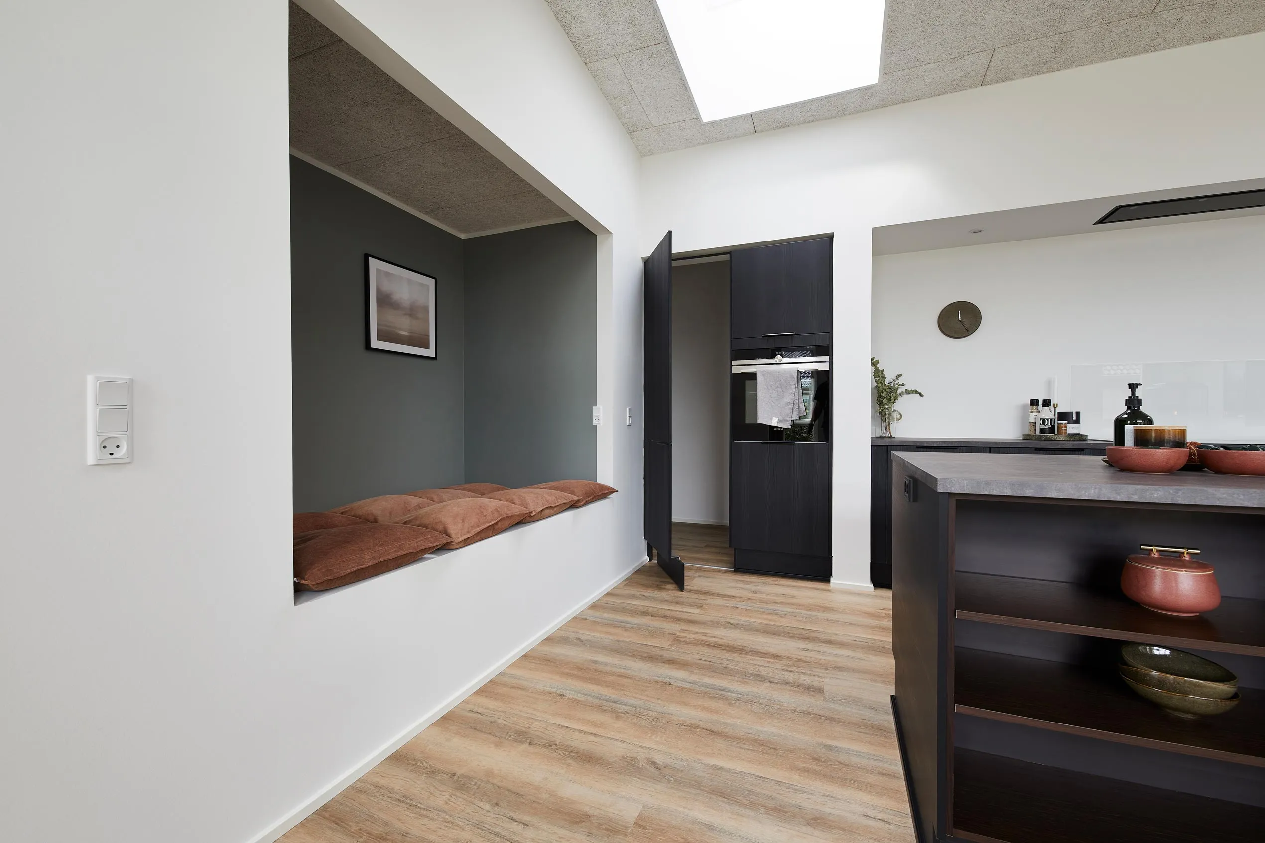 Mursten: Blue Devil. Klinker: Tabor Perla. Gulv: Hybel 66
