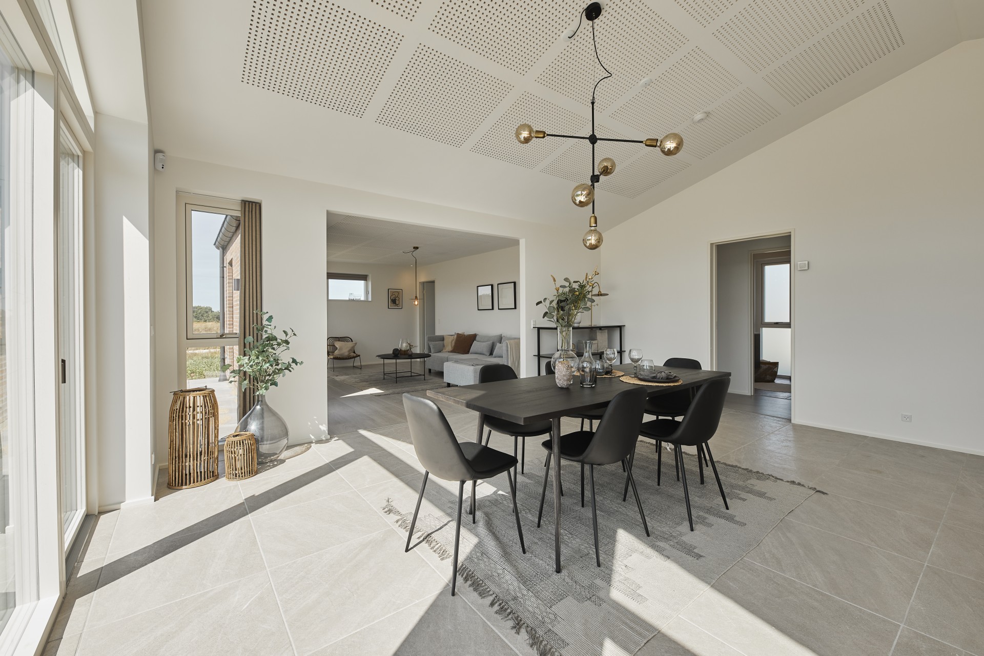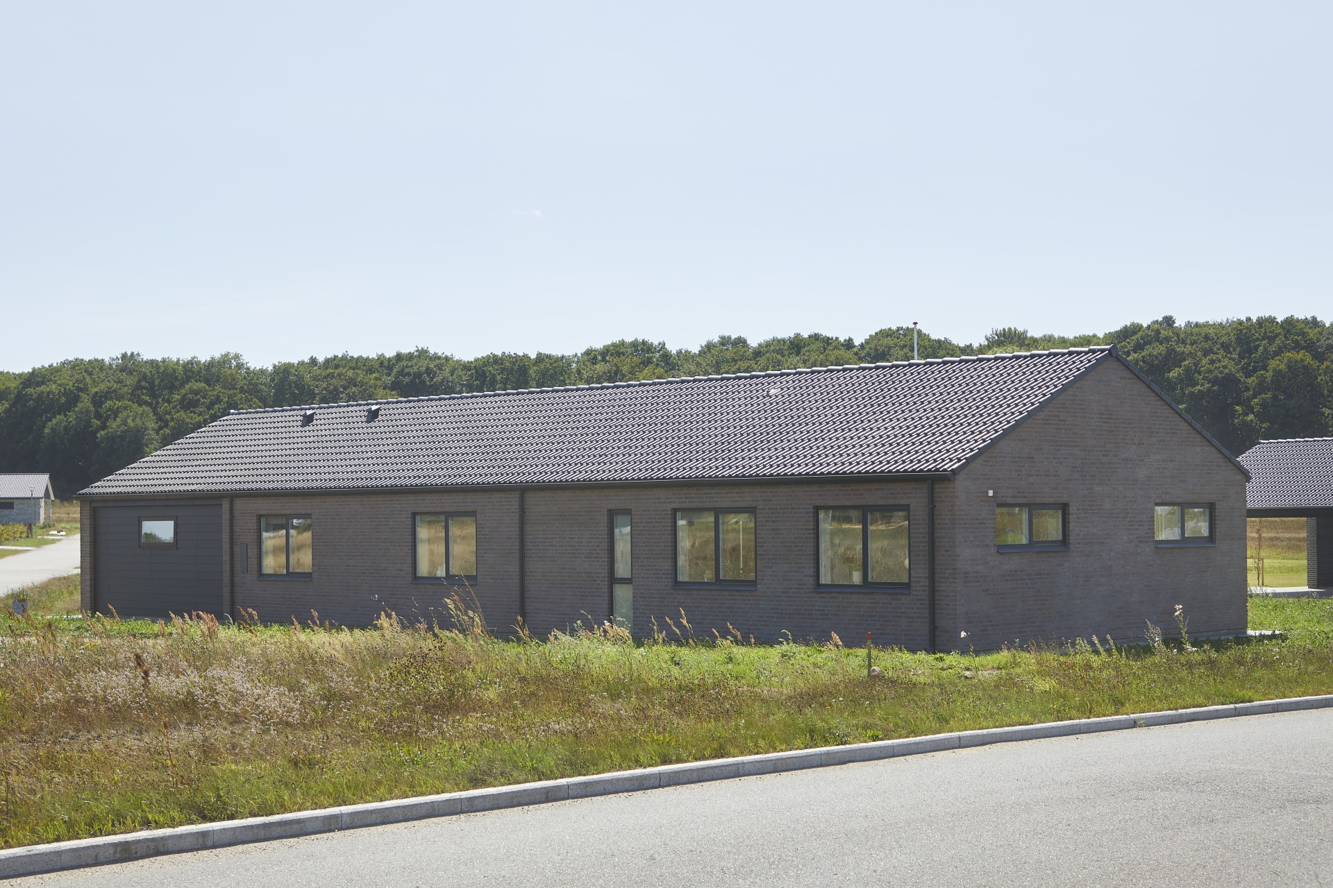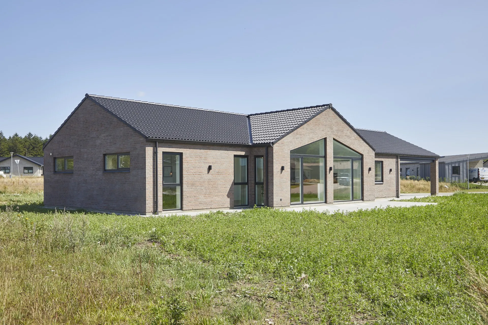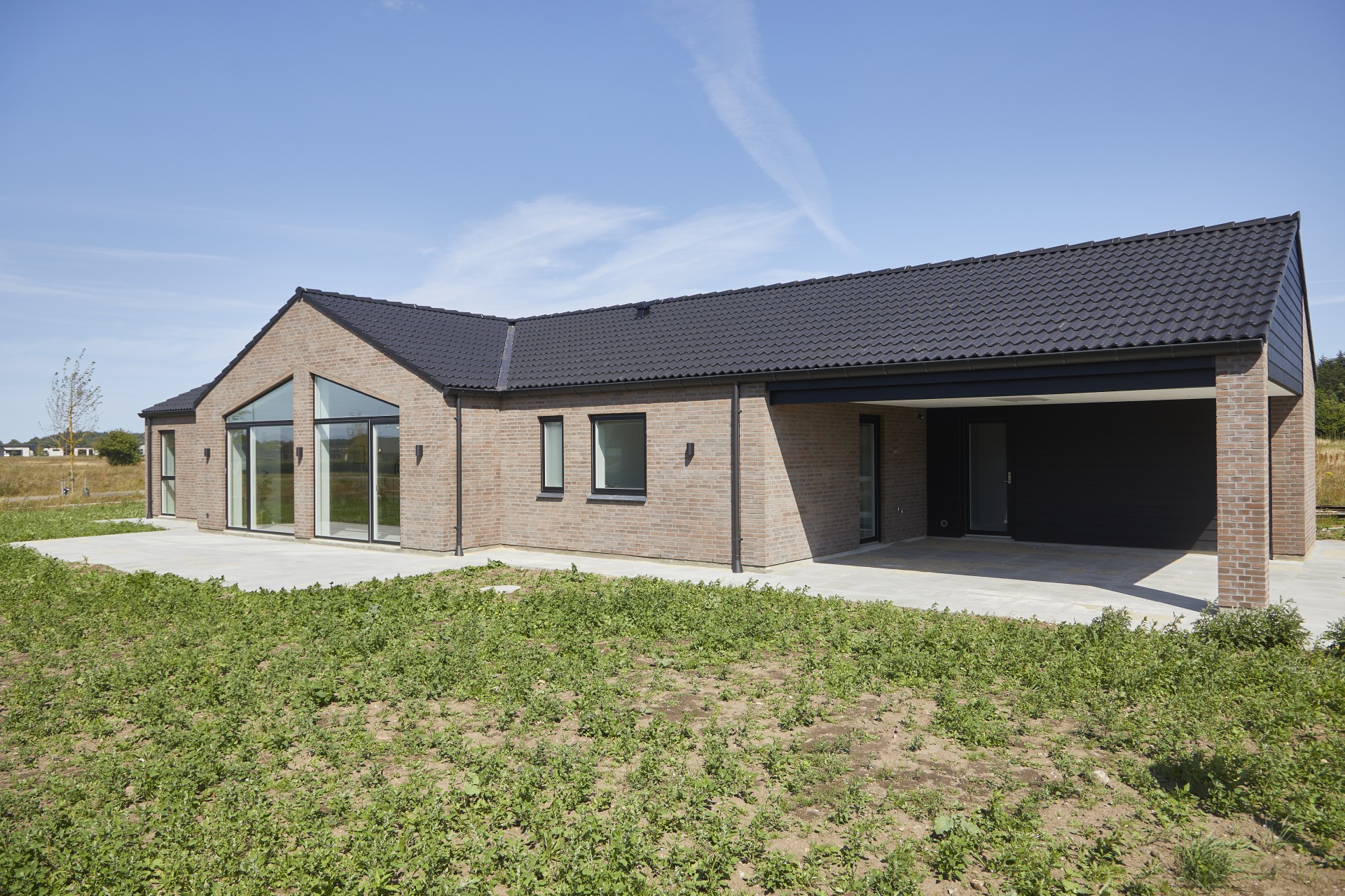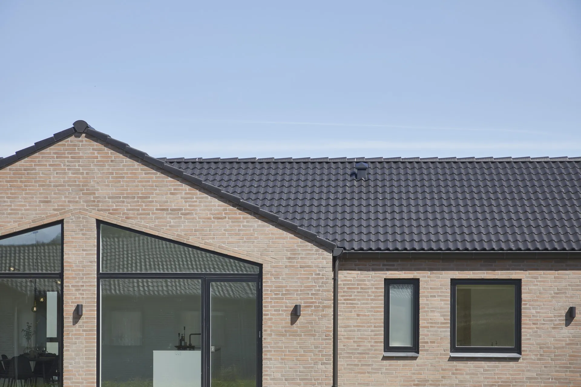 Mursten: Mocca Richs med anthrazit fuge. Klinker: Atrium Tabor Perla. Gulv: Hybel 86