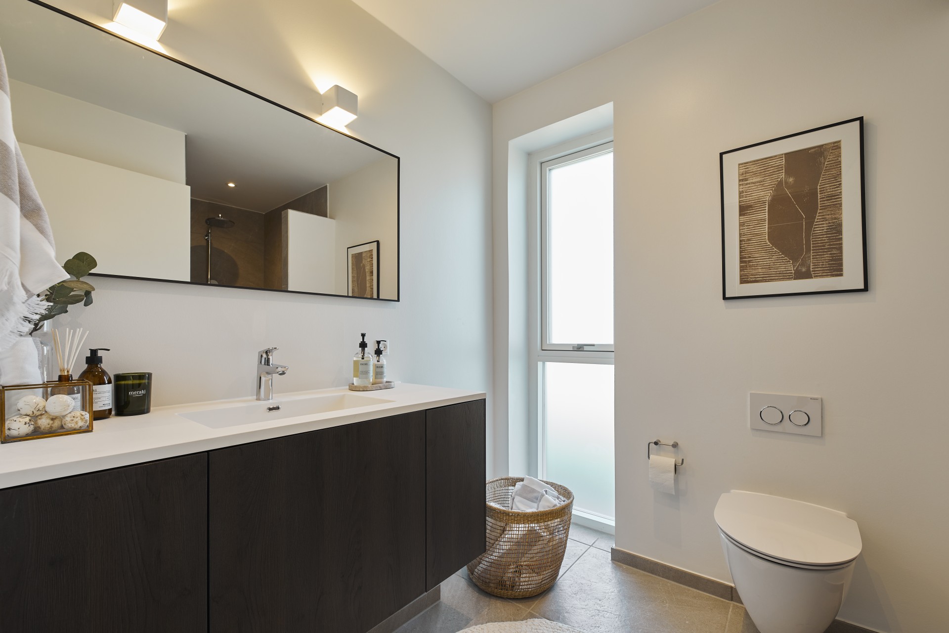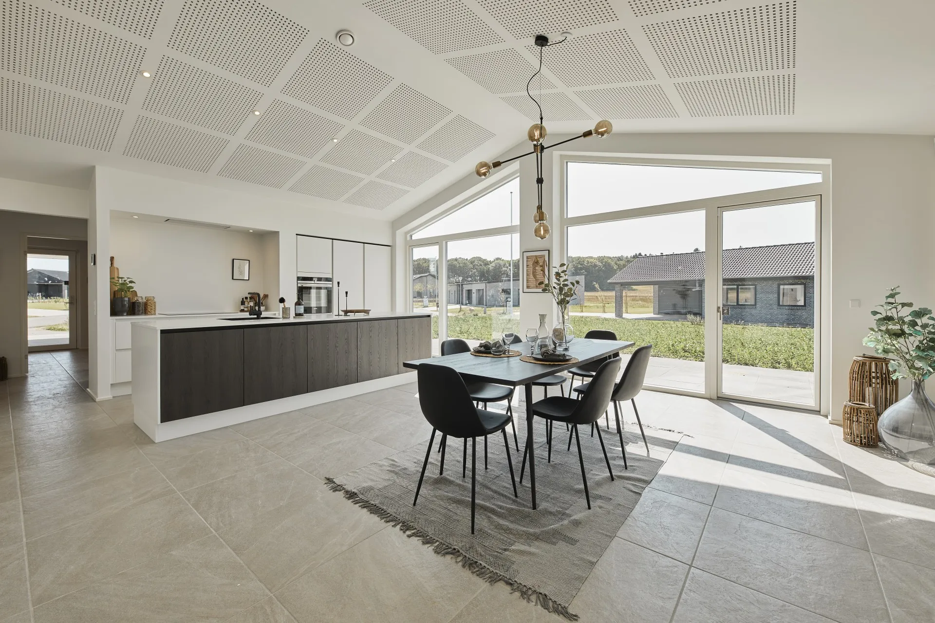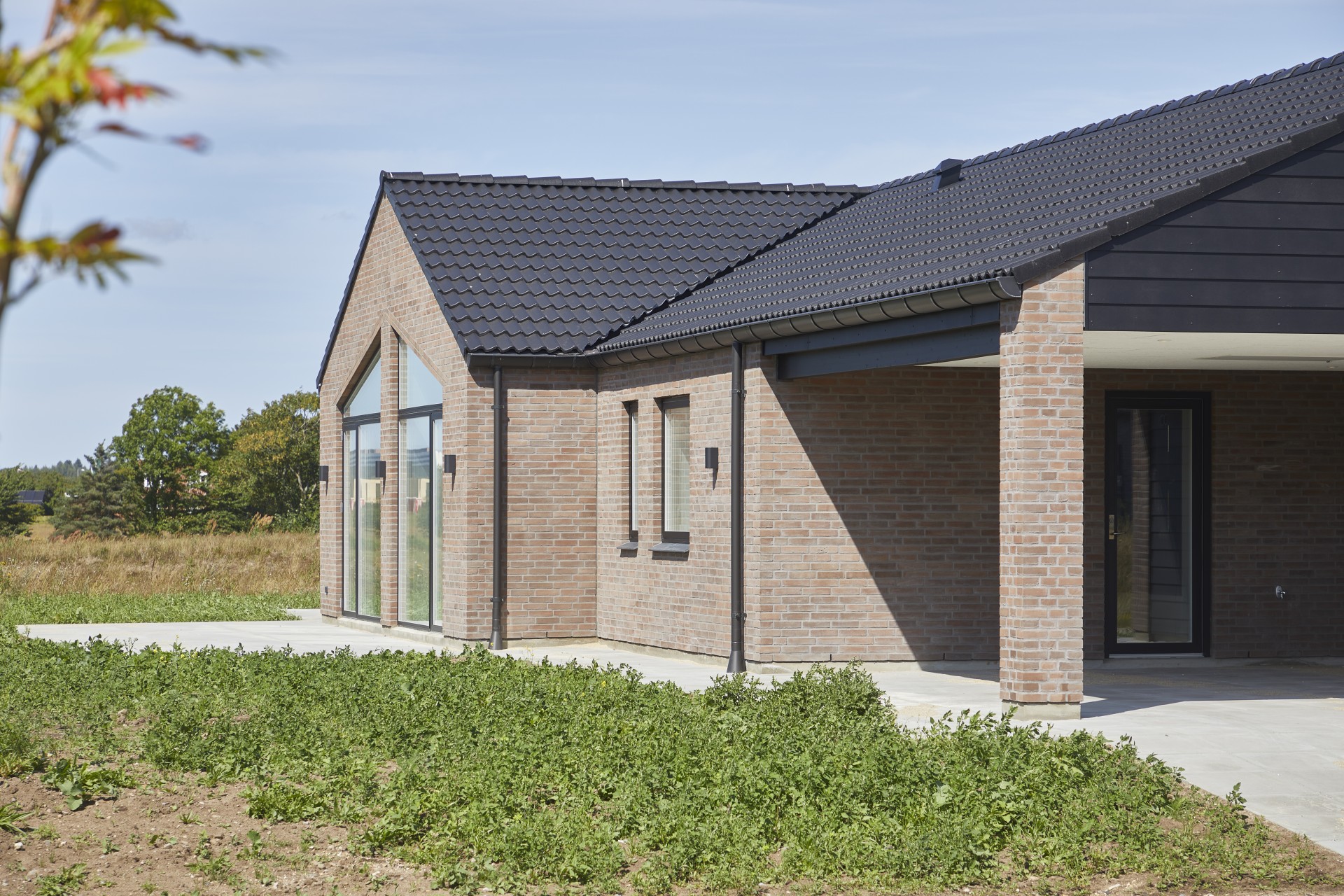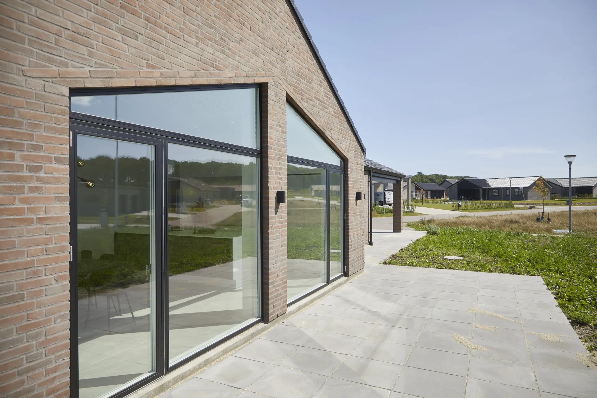 Mursten: Mocca Richs med anthrazit fuge. Klinker: Atrium Tabor Perla. Gulv: Hybel 86
