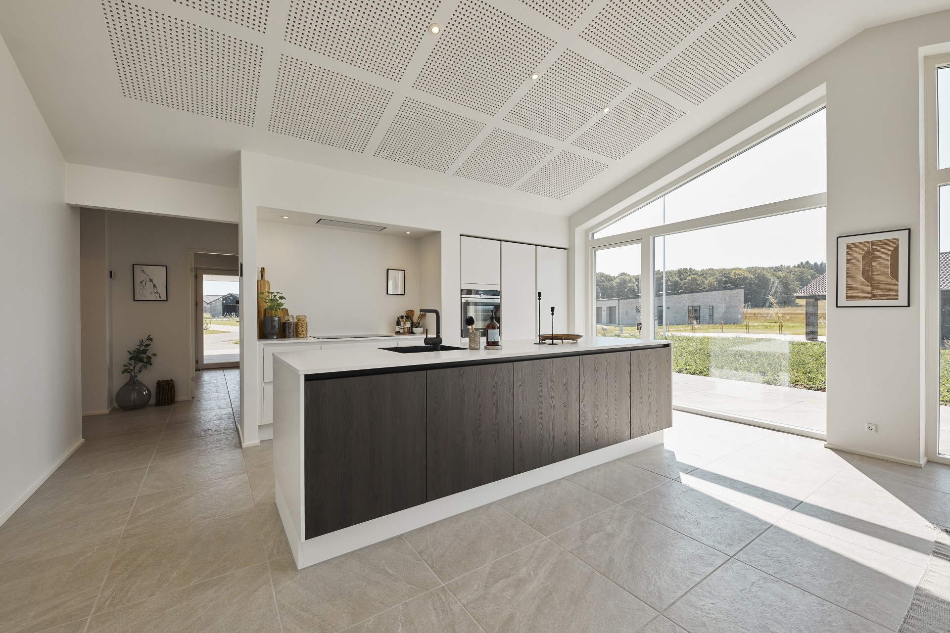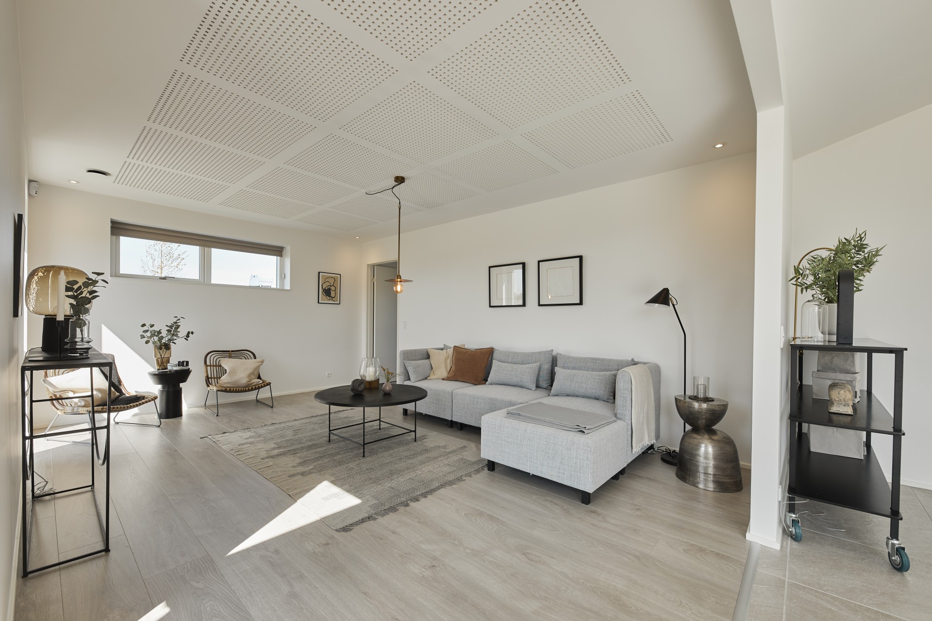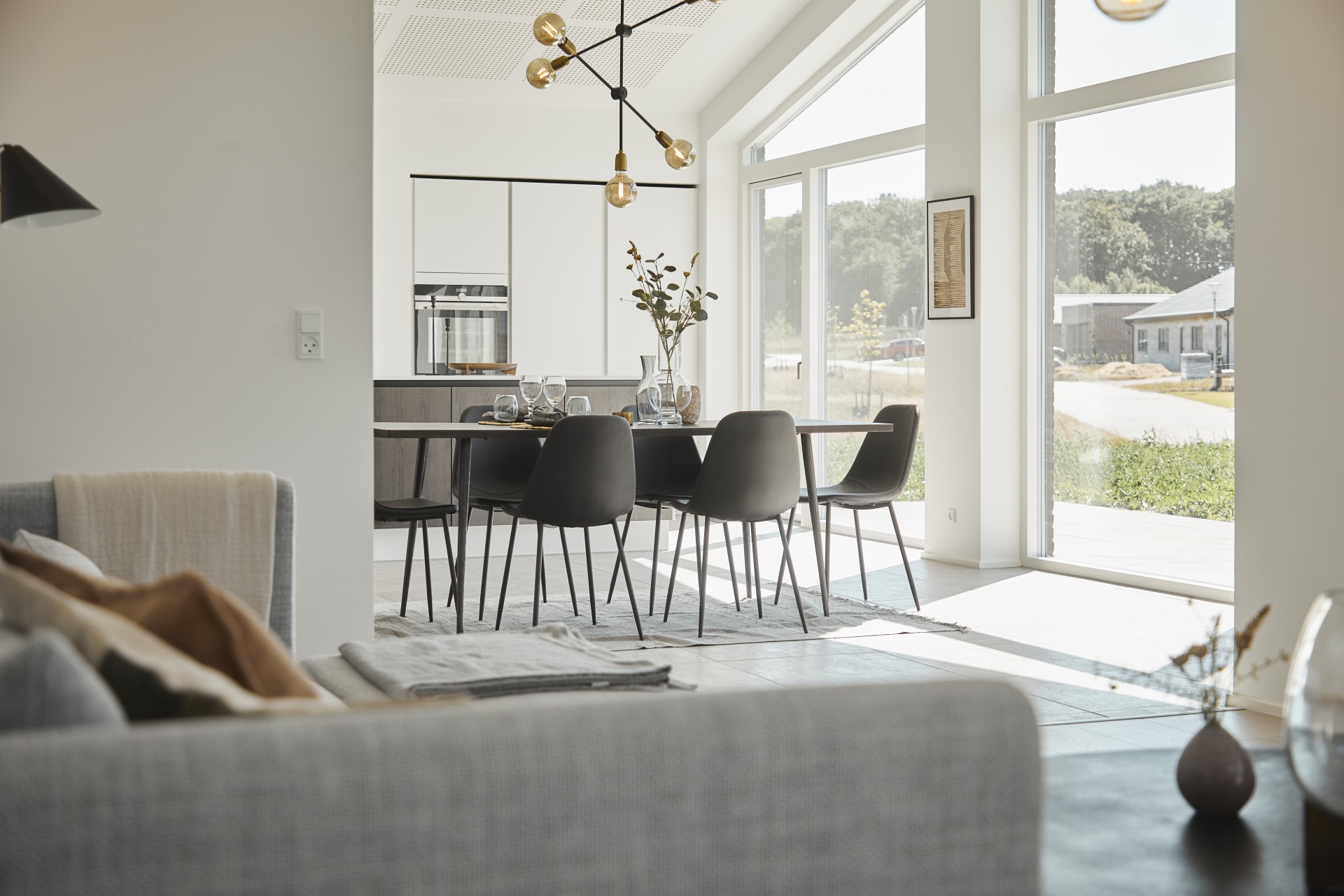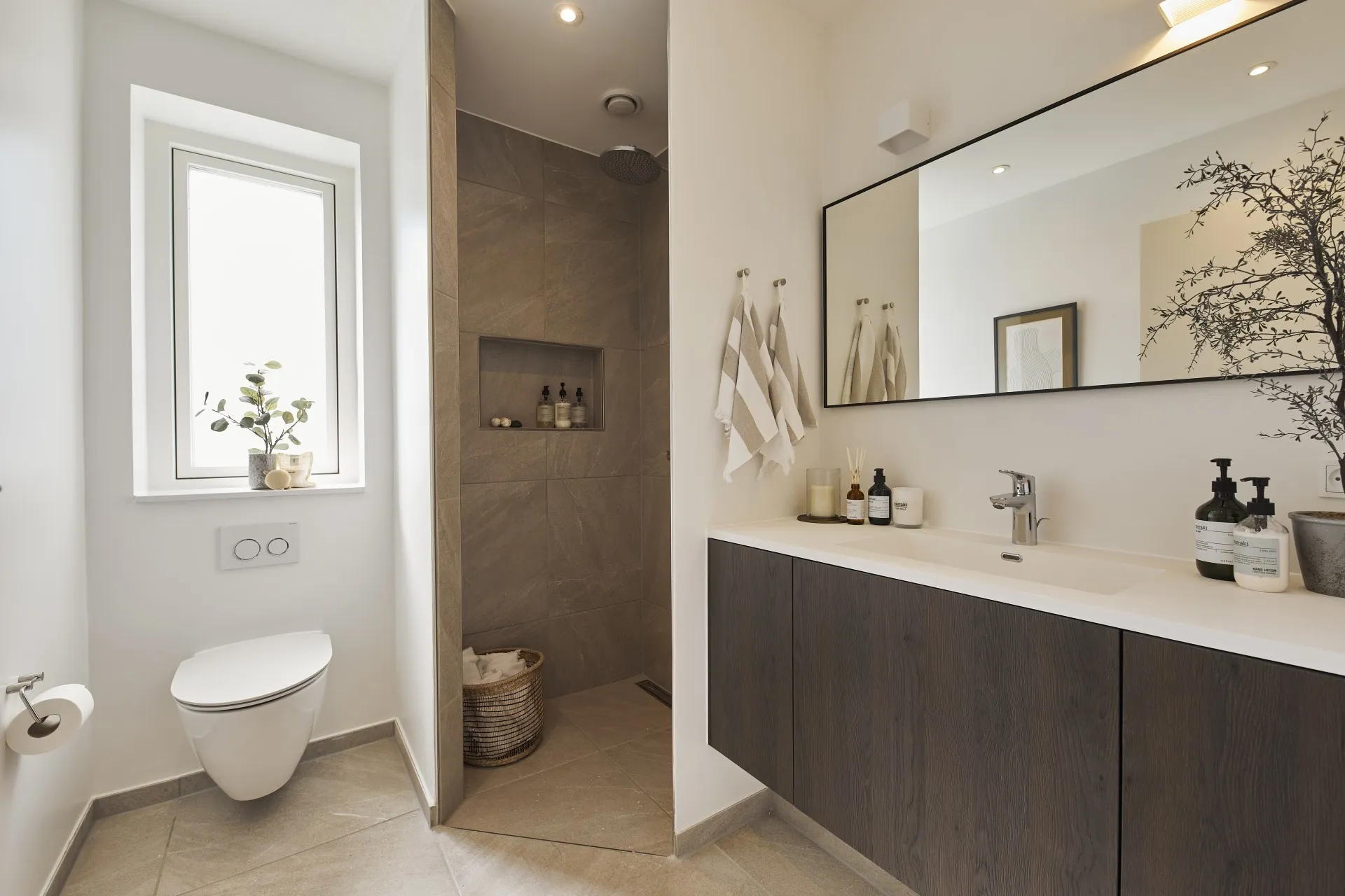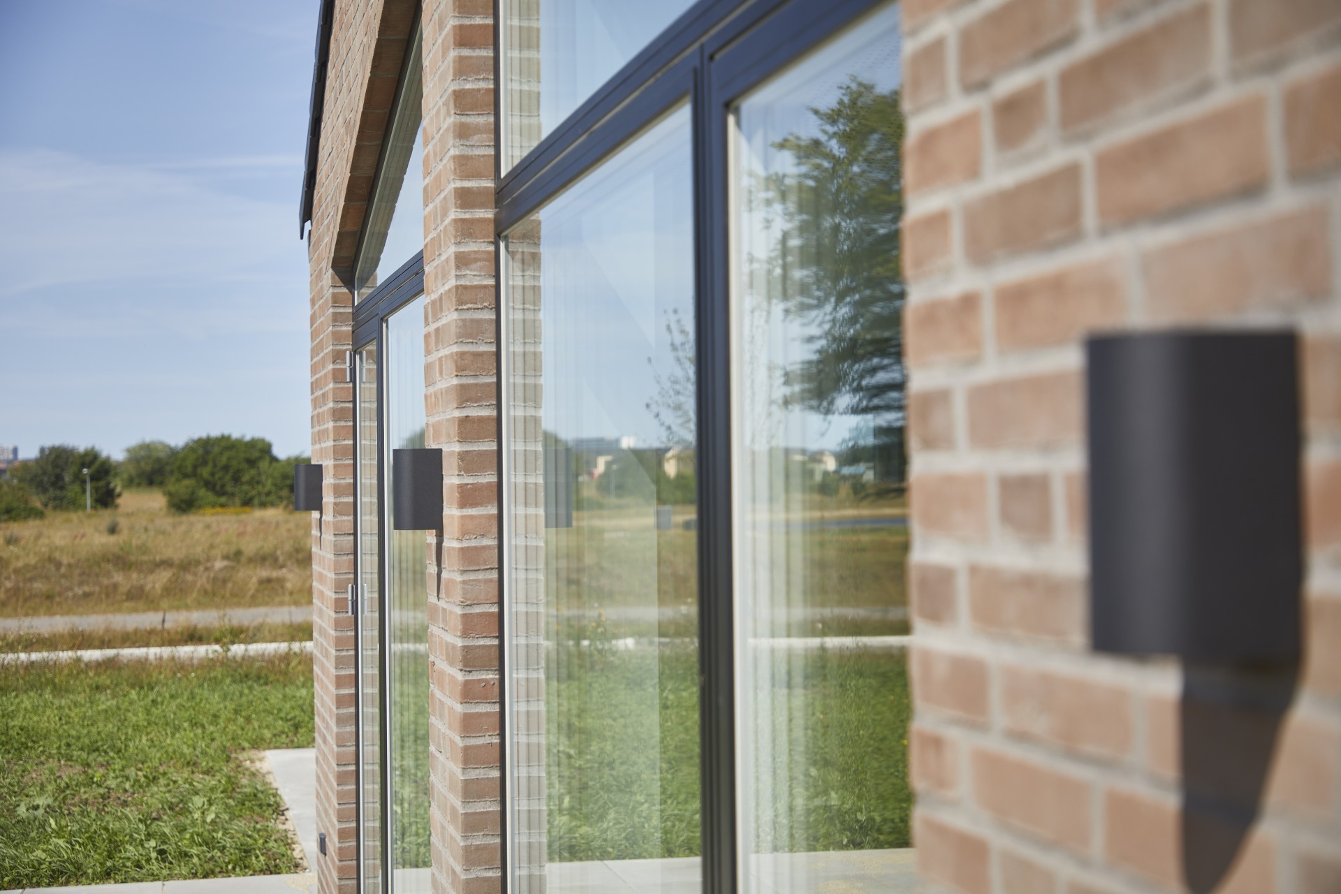 Mursten: Mocca Richs med anthrazit fuge. Klinker: Atrium Tabor Perla. Gulv: Hybel 86