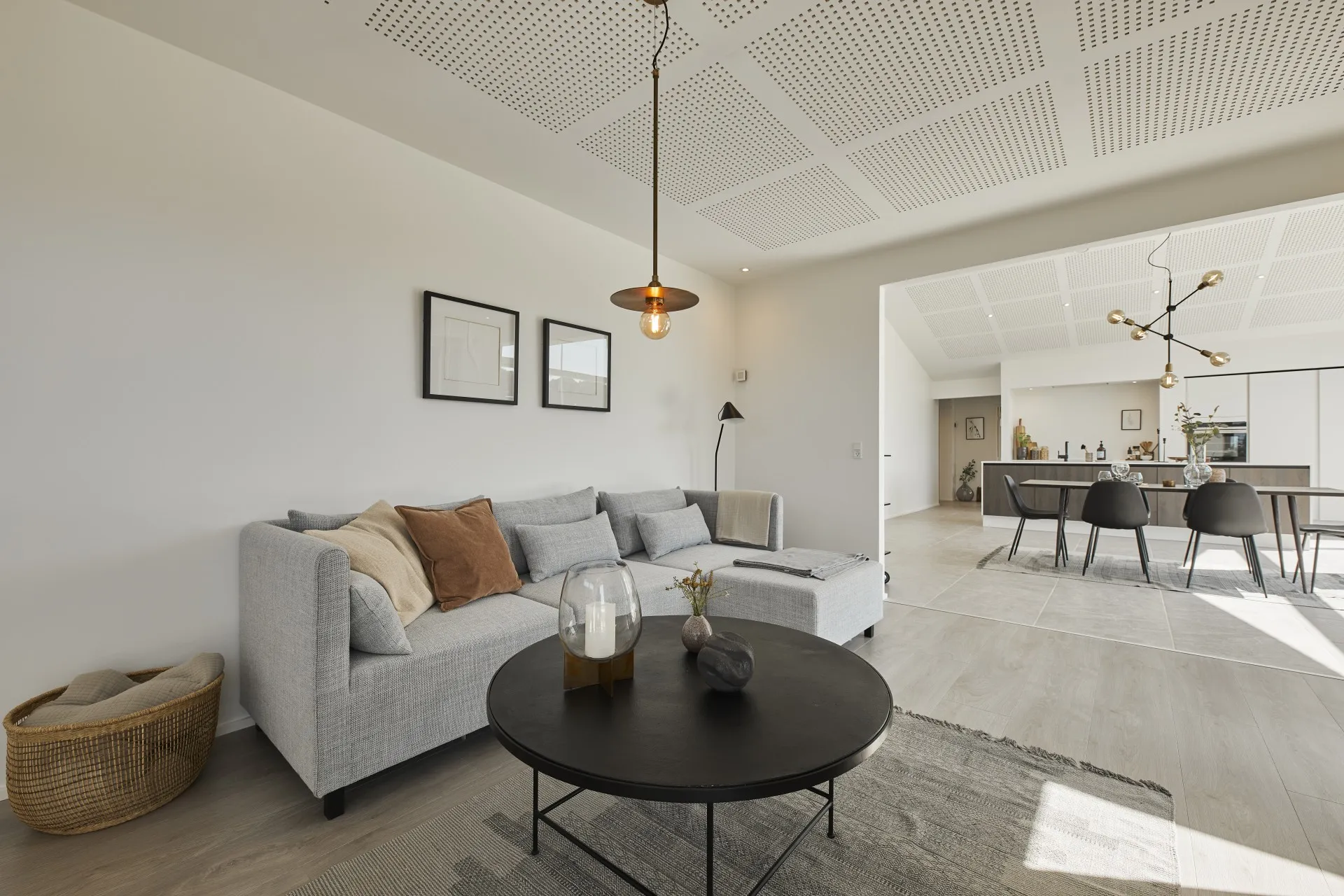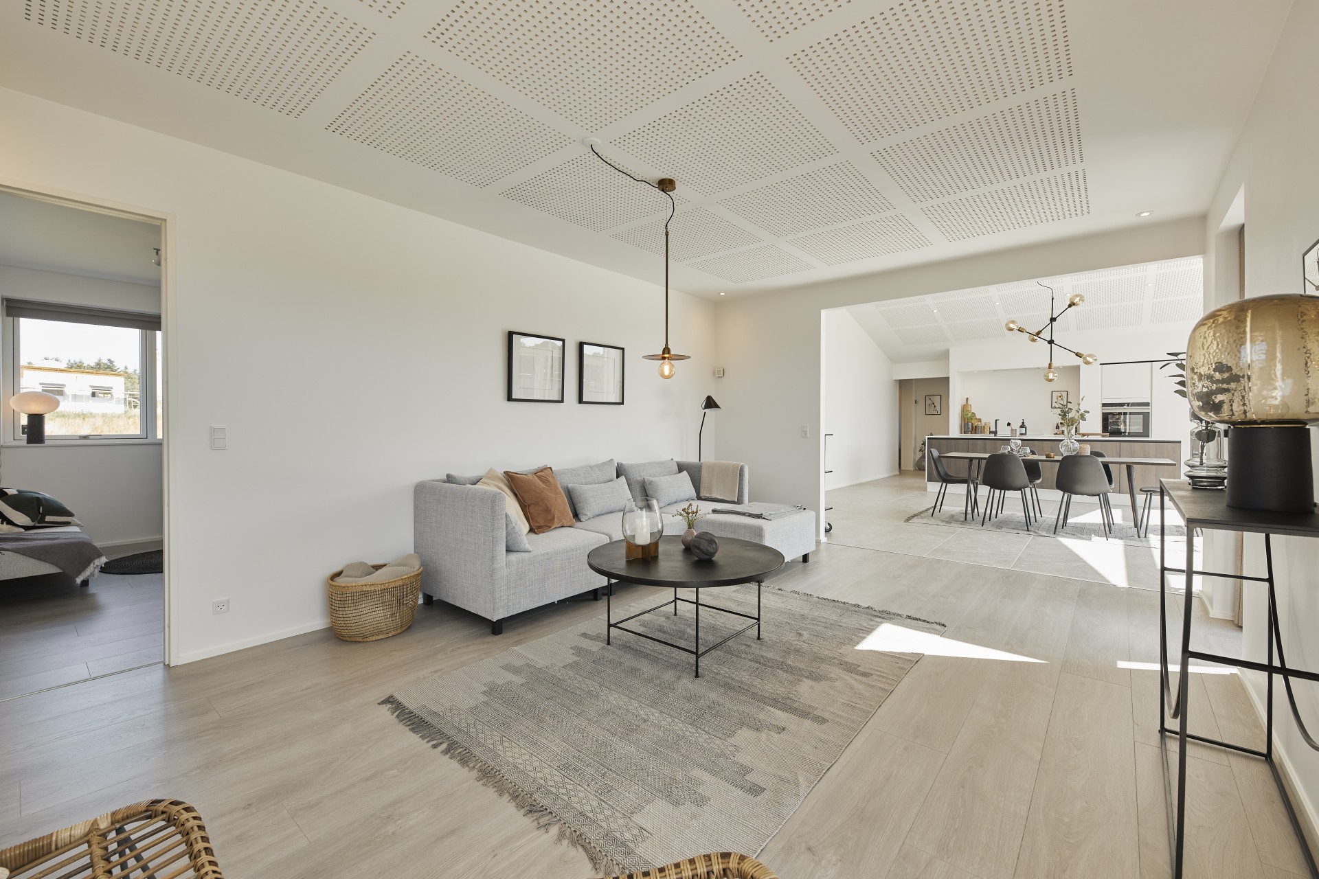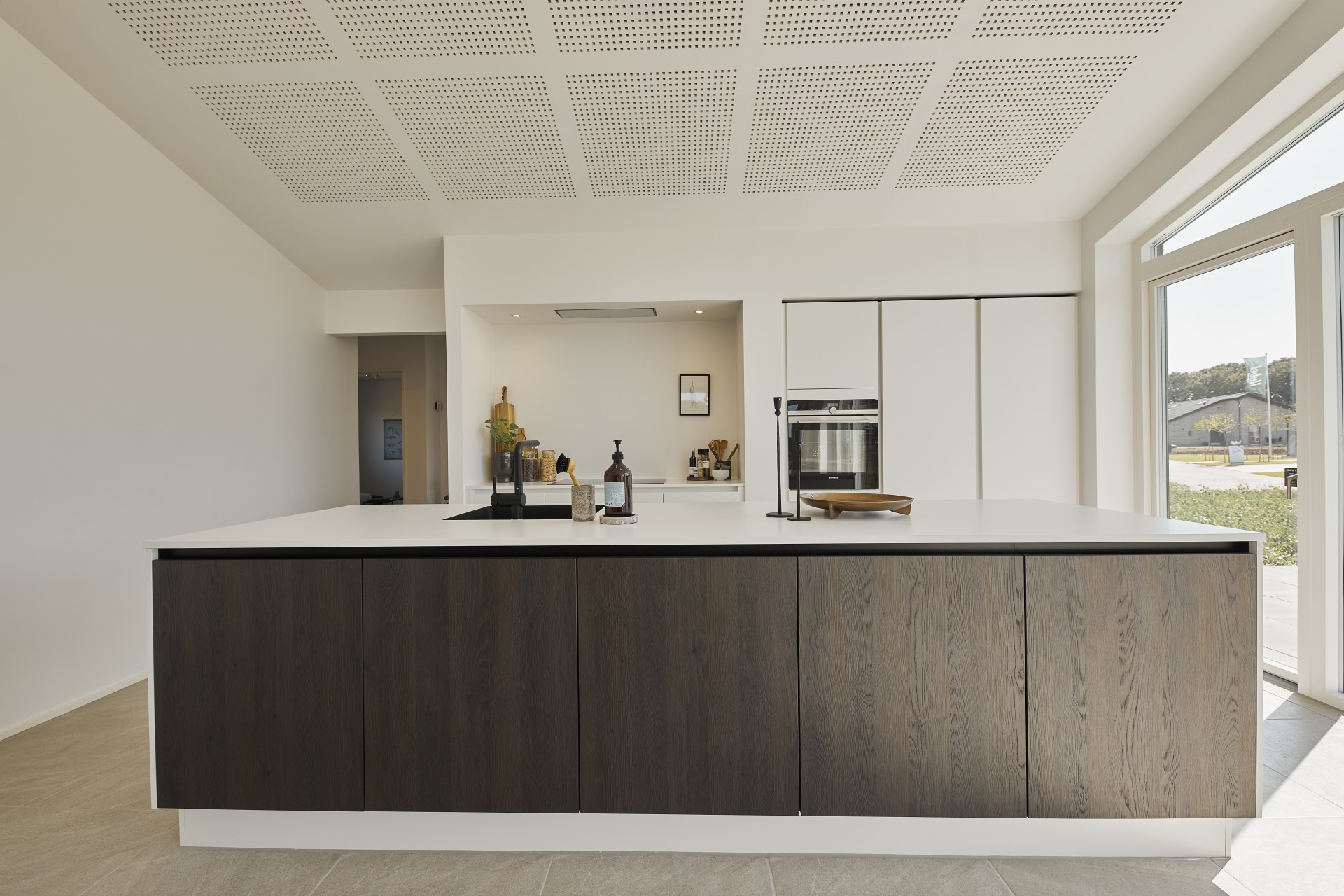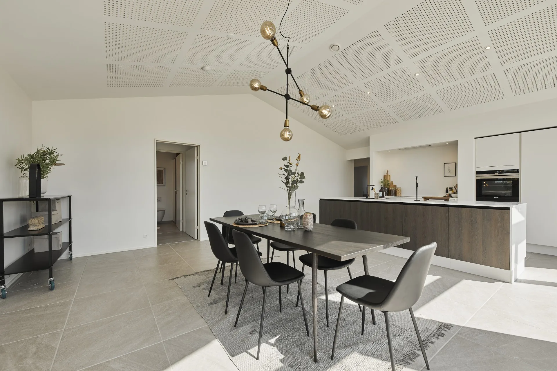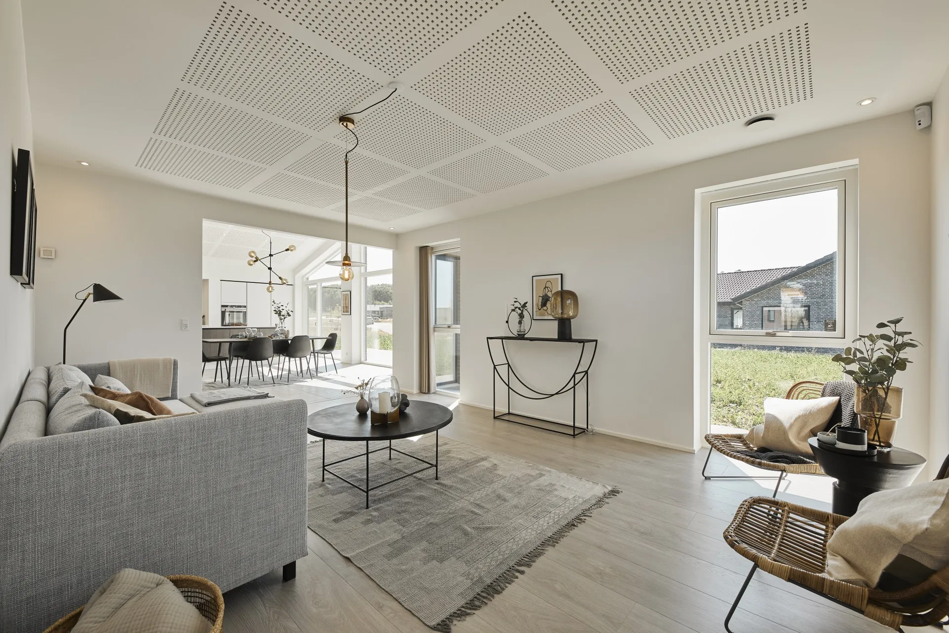 Mursten: Mocca Richs med anthrazit fuge. Klinker: Atrium Tabor Perla. Gulv: Hybel 86