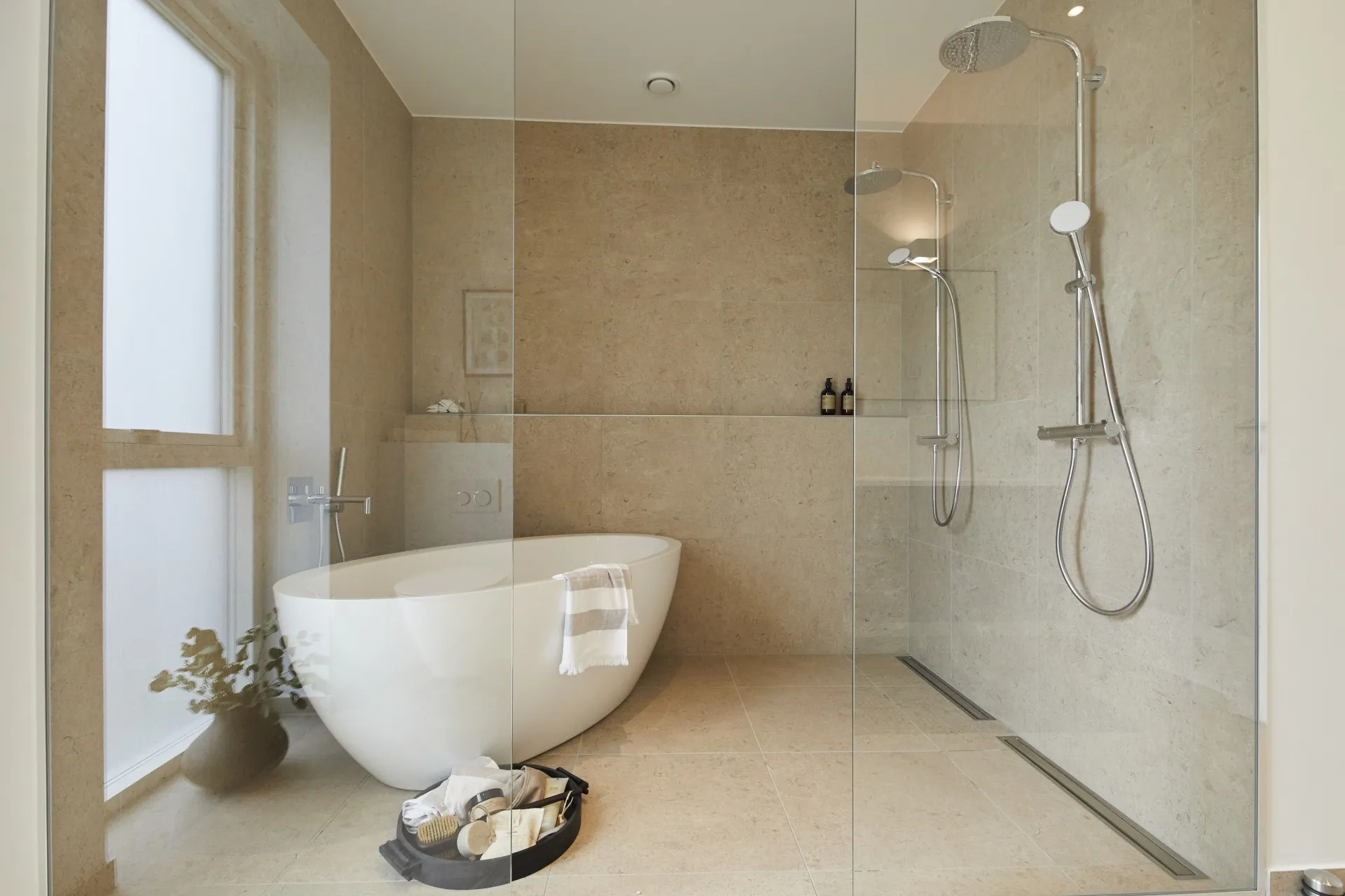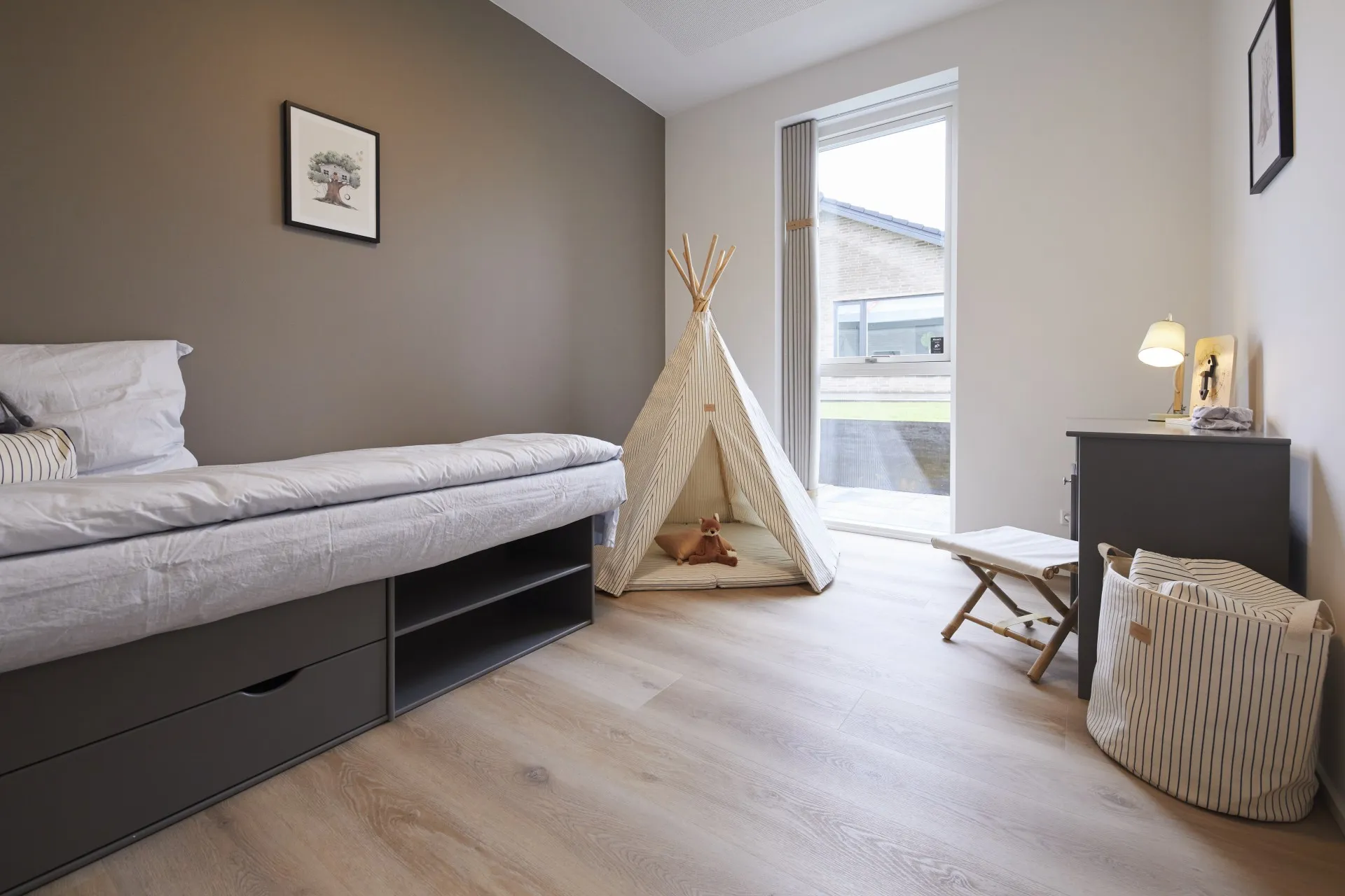 Mursten: Libra. Klinker: Ragno Eterna Greige. Gulv: Hybel 68