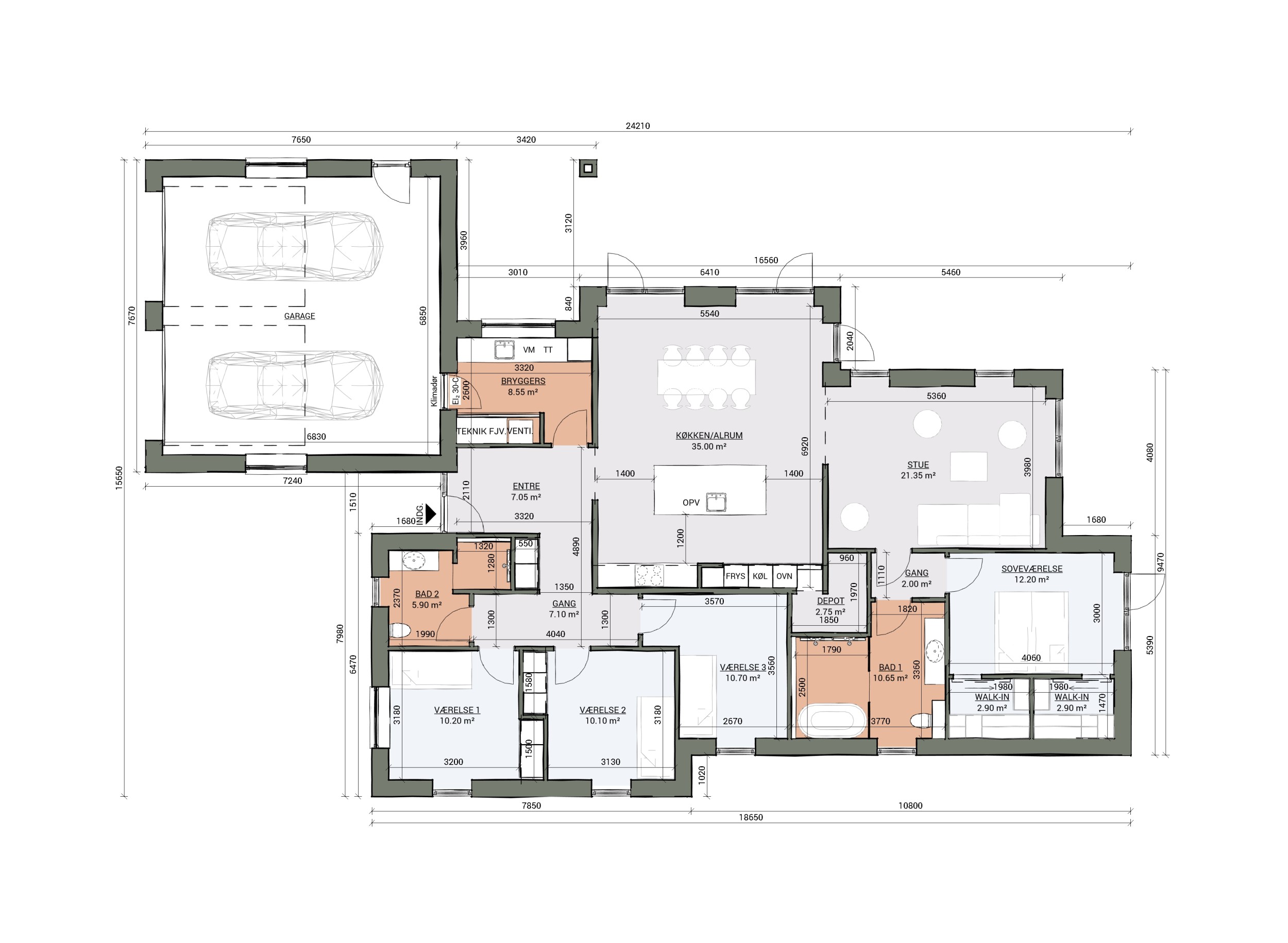 Spamiljø, dobbelt-walk-in og ovenlysvinduer.