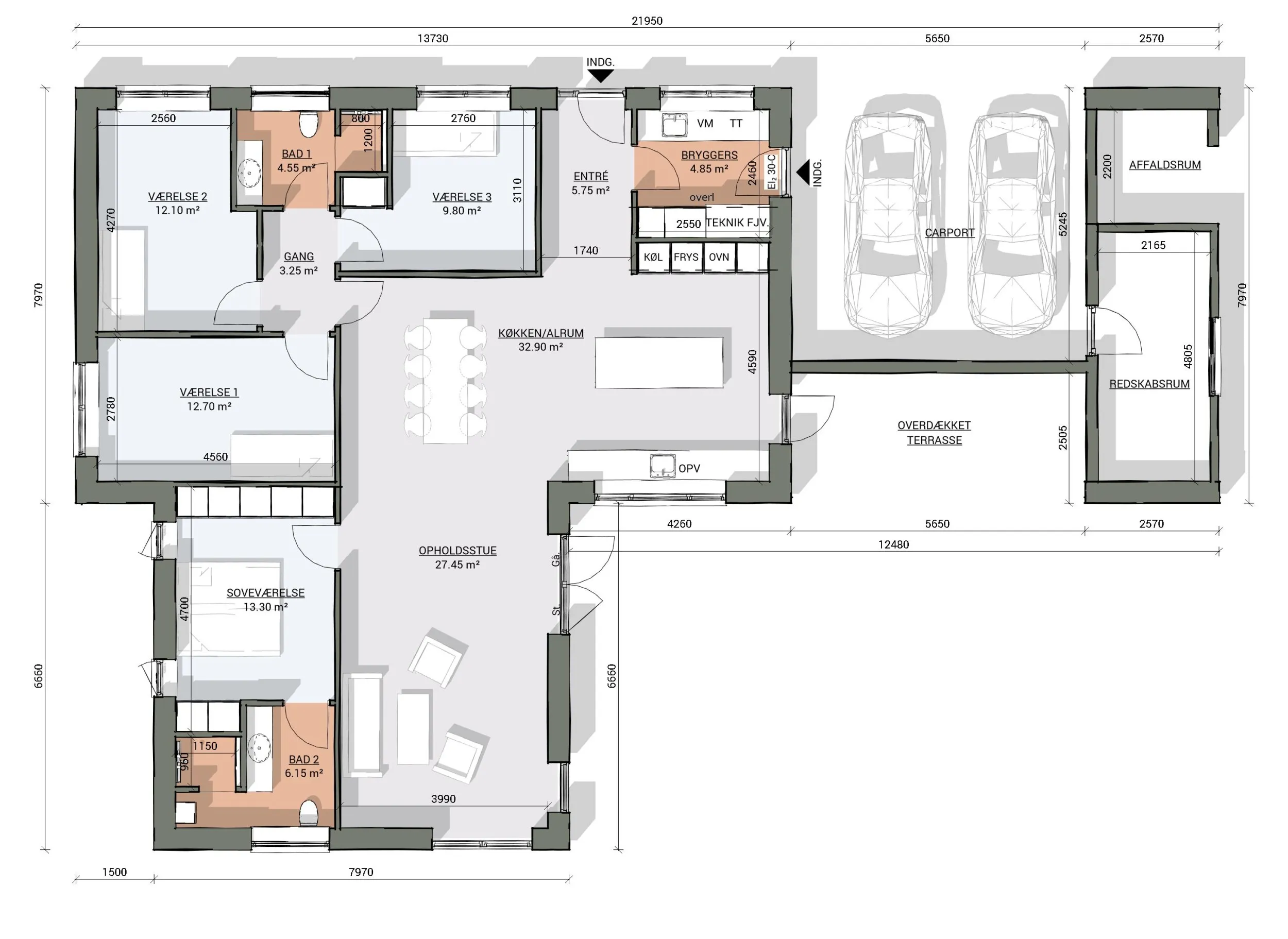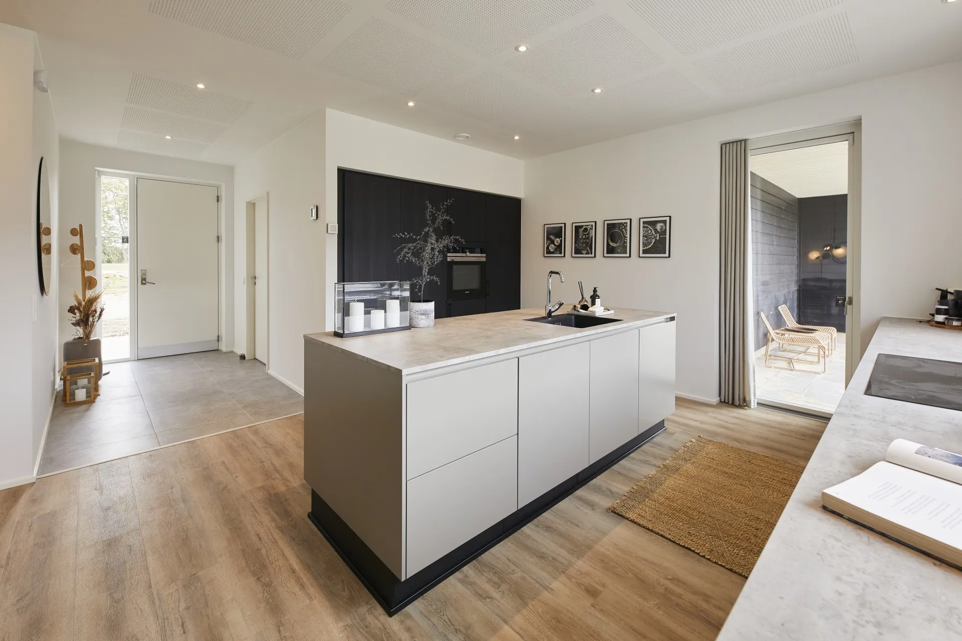 Mursten: Cold Hawaii. Klinker: Atrium Edge GR. Gulv: Hybel 66