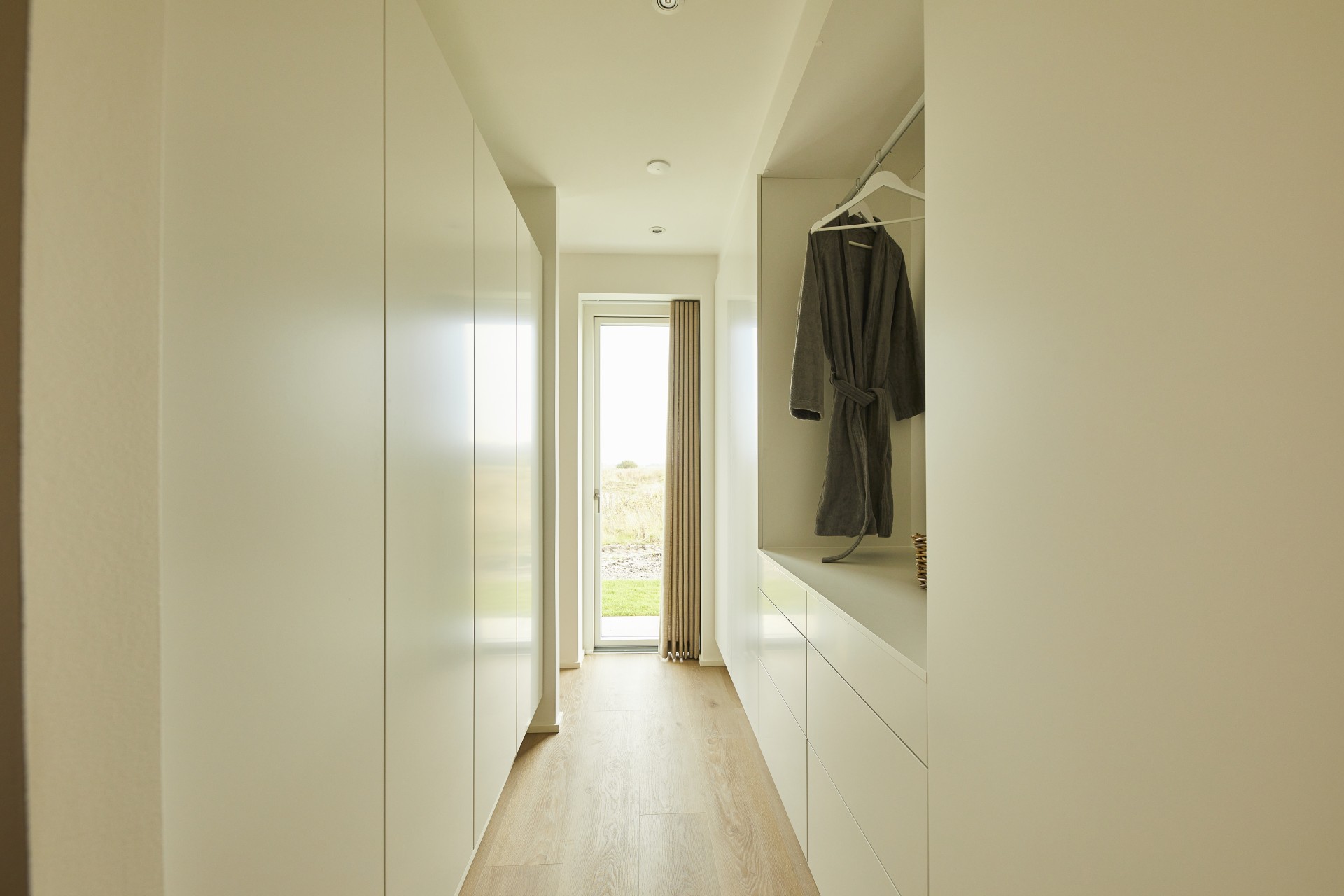 Walk-in-closet, skjult depotrum og overdækket terrasse.