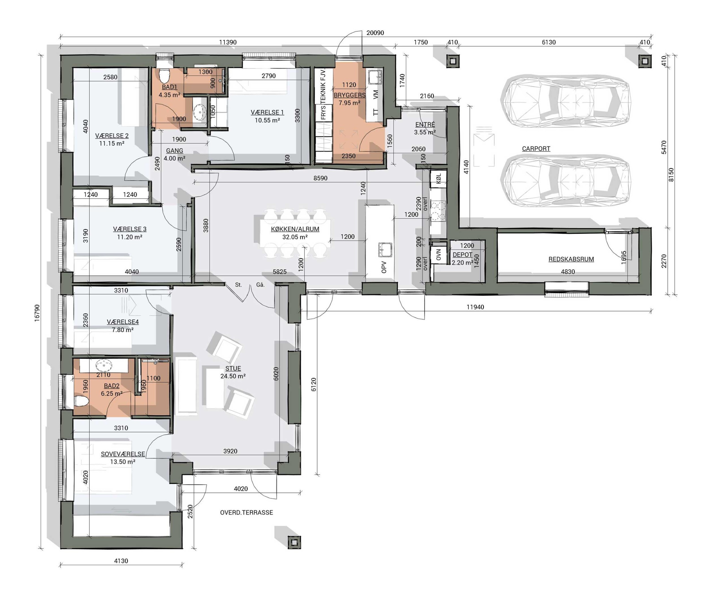 5 værelser, dobbelt ovenlys og garderobeplads i bryggerset.