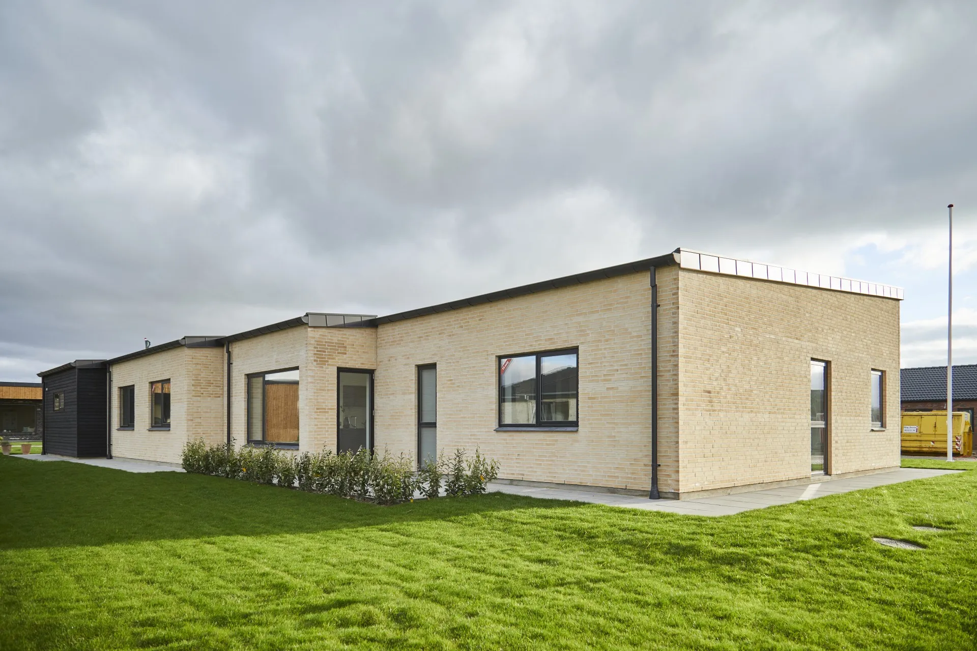 Arkitekttegnet hus med ensidig taghældning.