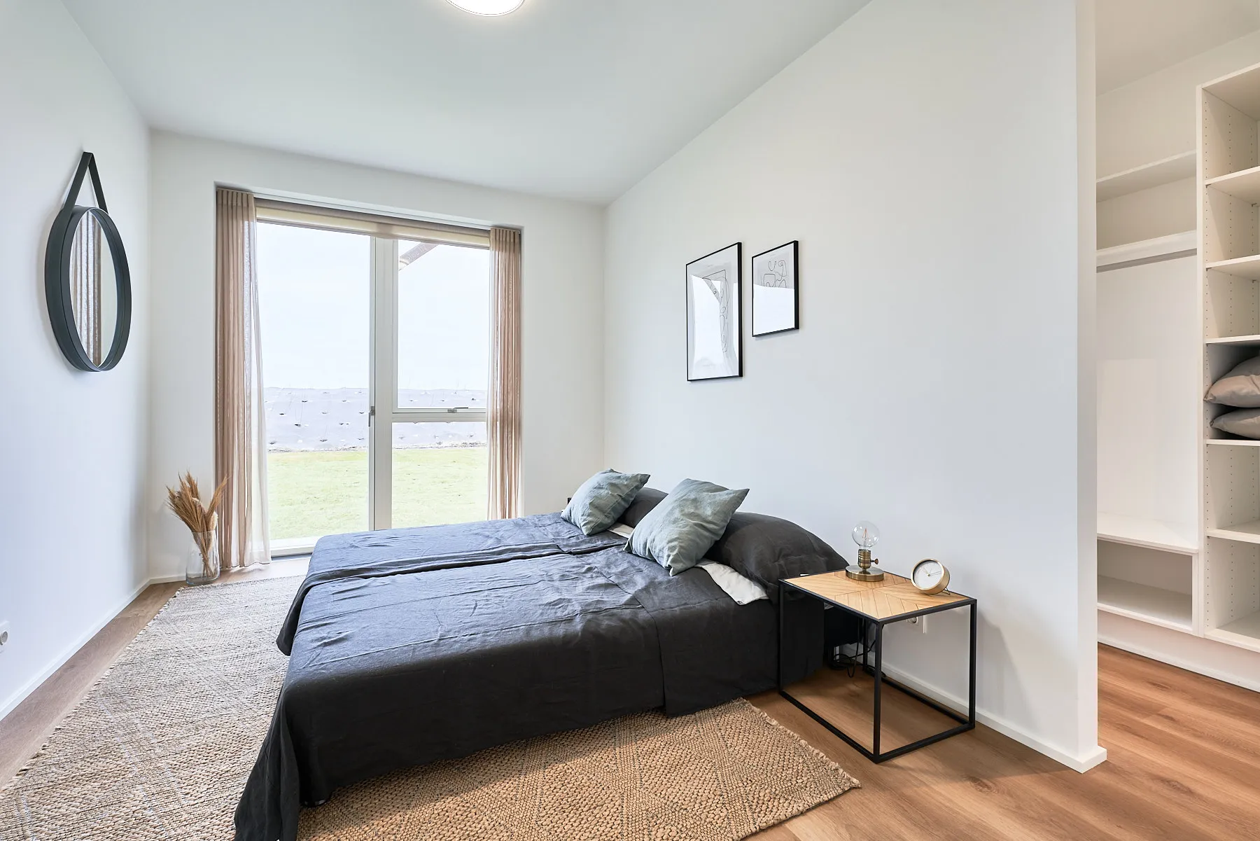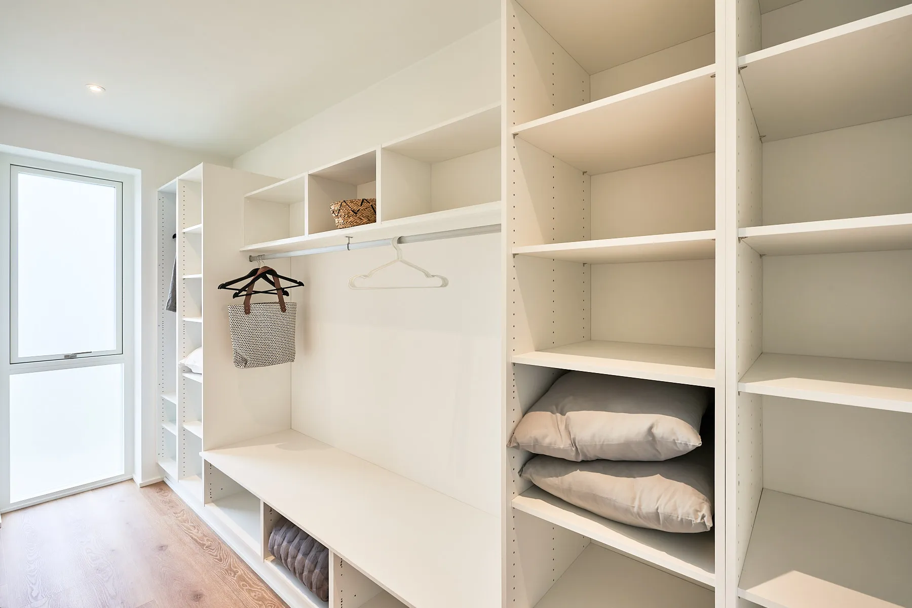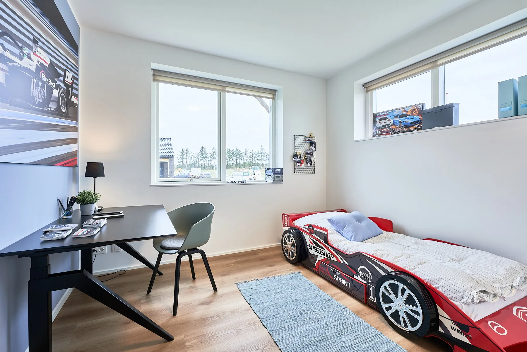 Indbygget makeupplads, walk-in og overdækket indgangsparti.