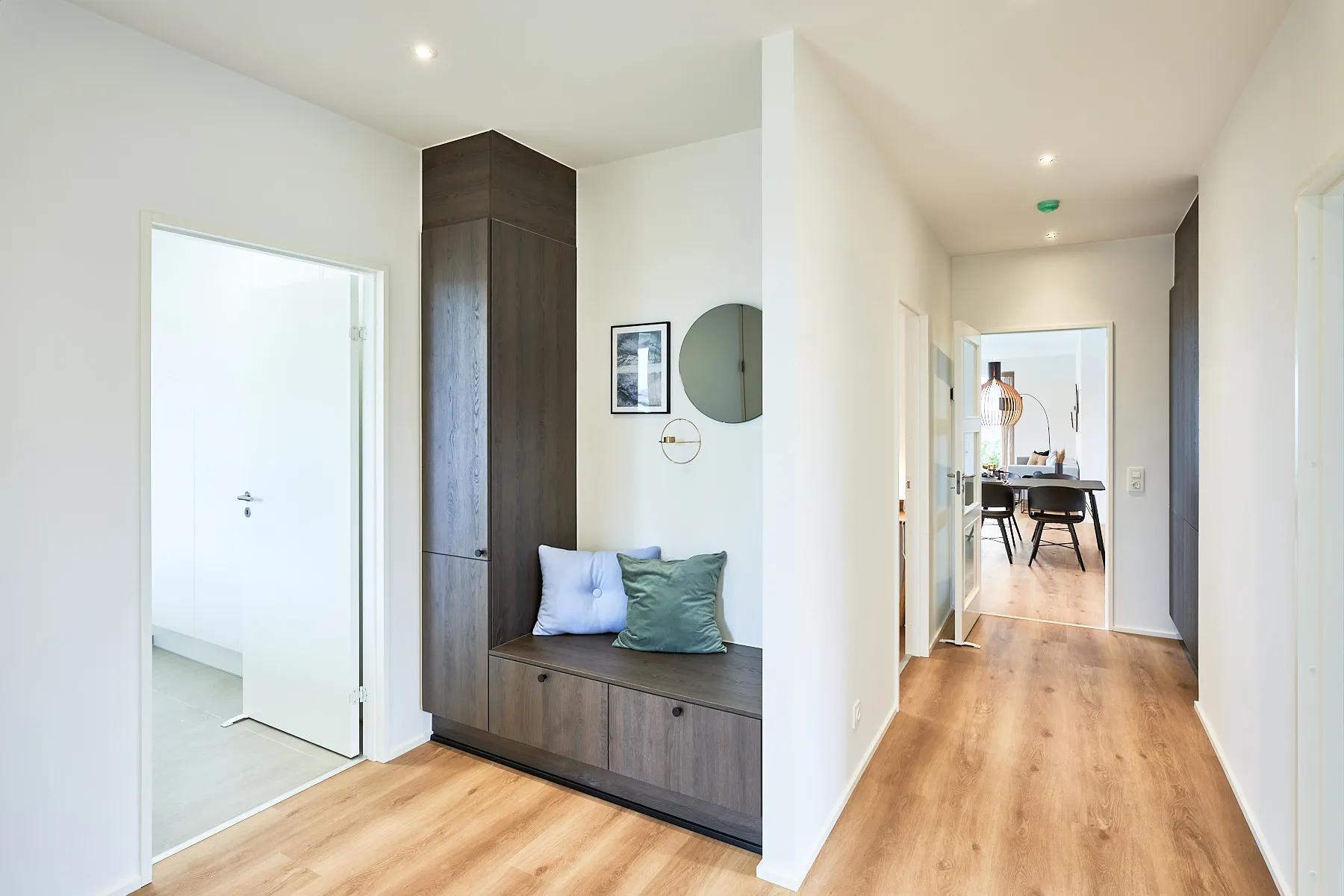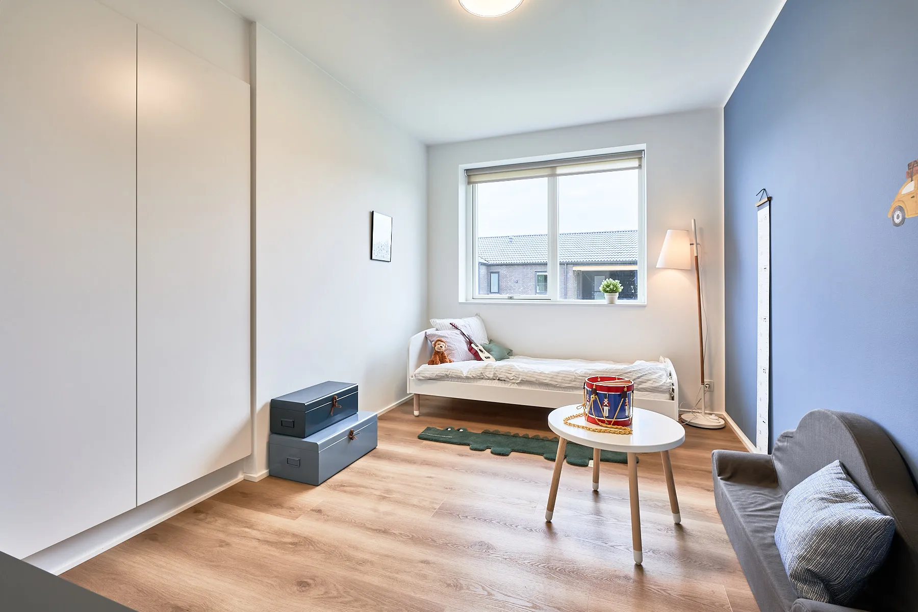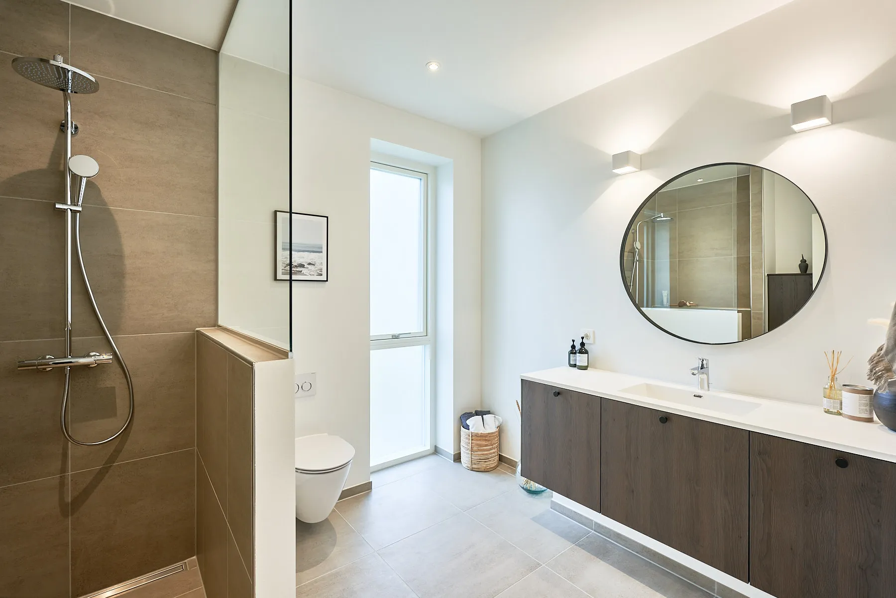 Indbygget makeupplads, walk-in og overdækket indgangsparti.