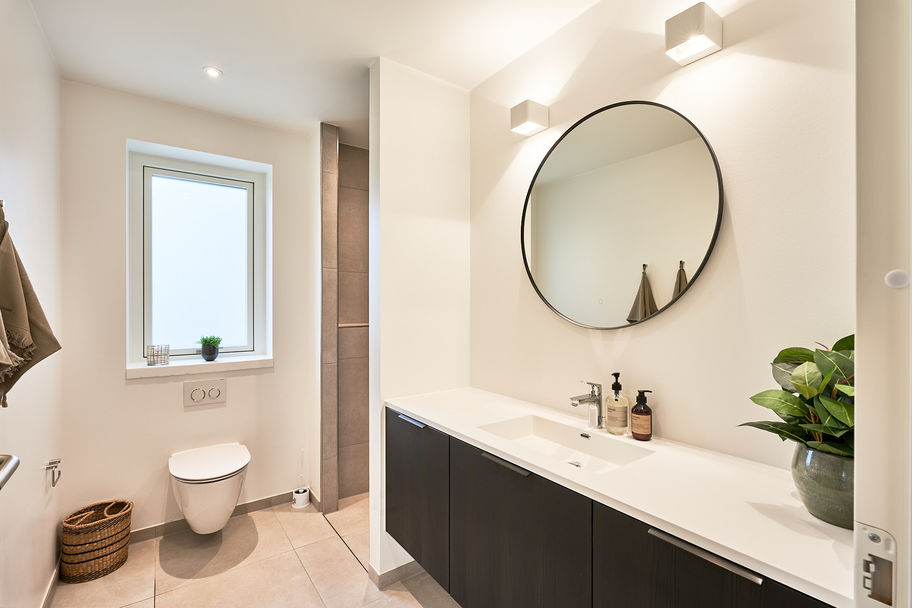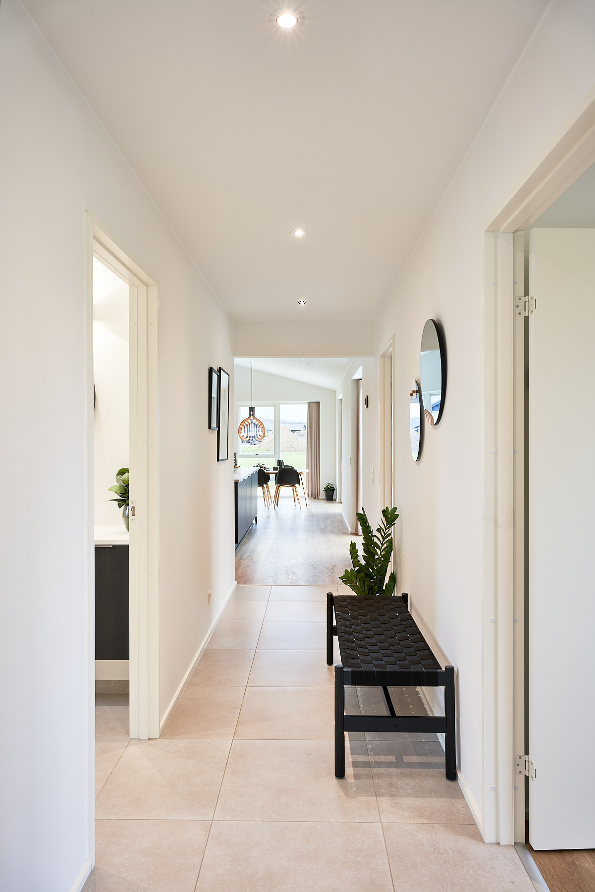 Mursten: White Bonasus. Klinker: Atrim Entis Arena. Gulv: Hybel 96.