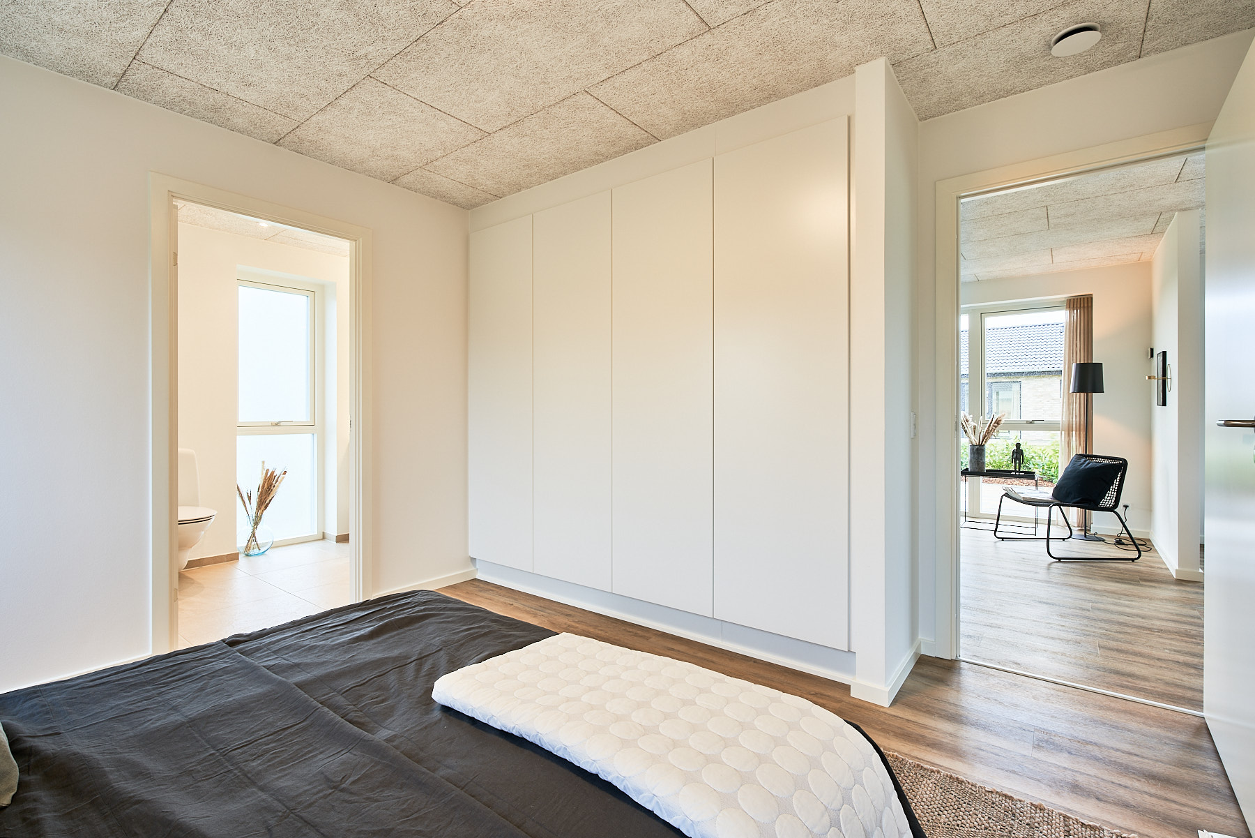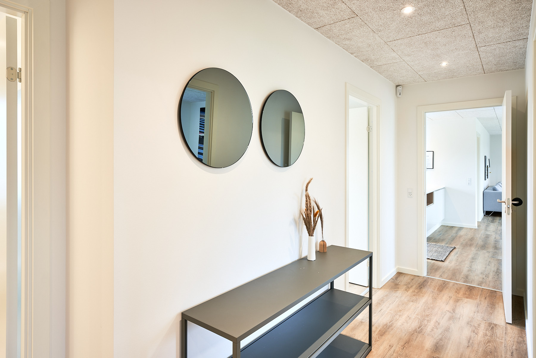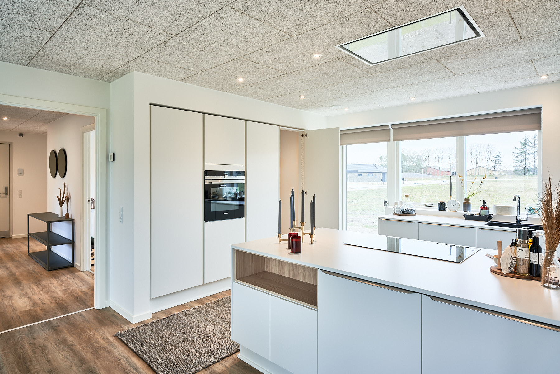 Skabsvæg, skjult depotrum og gennemgående køkken/alrum.