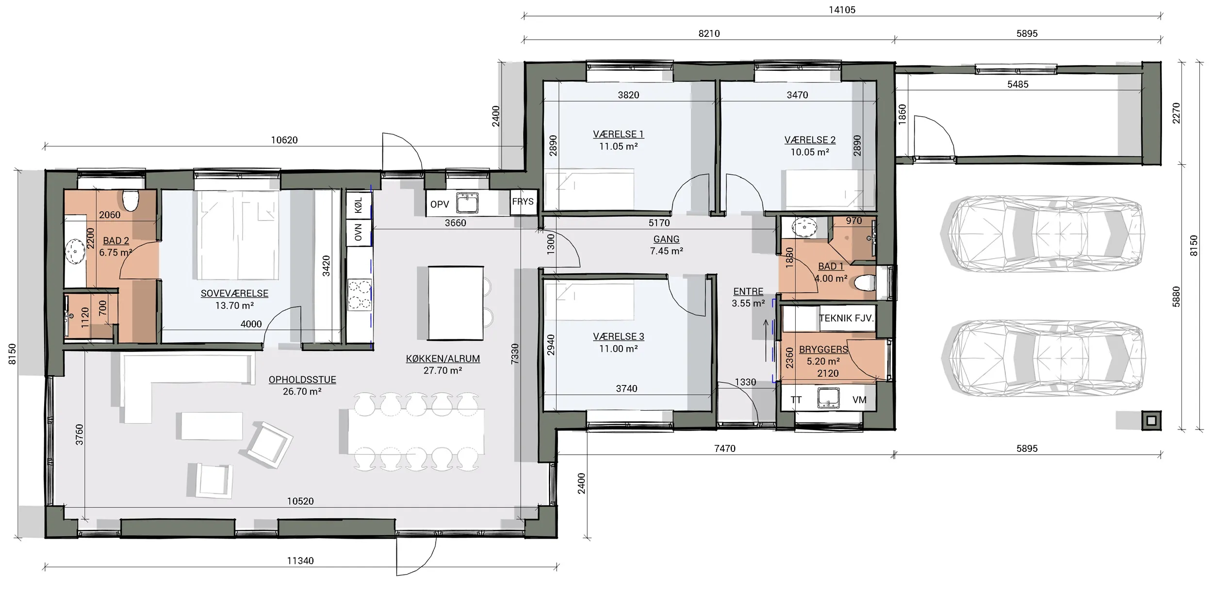 Mursten: Sisteron. Klinker: Sound Smoke 60*30. Gulv: Hybel 65.