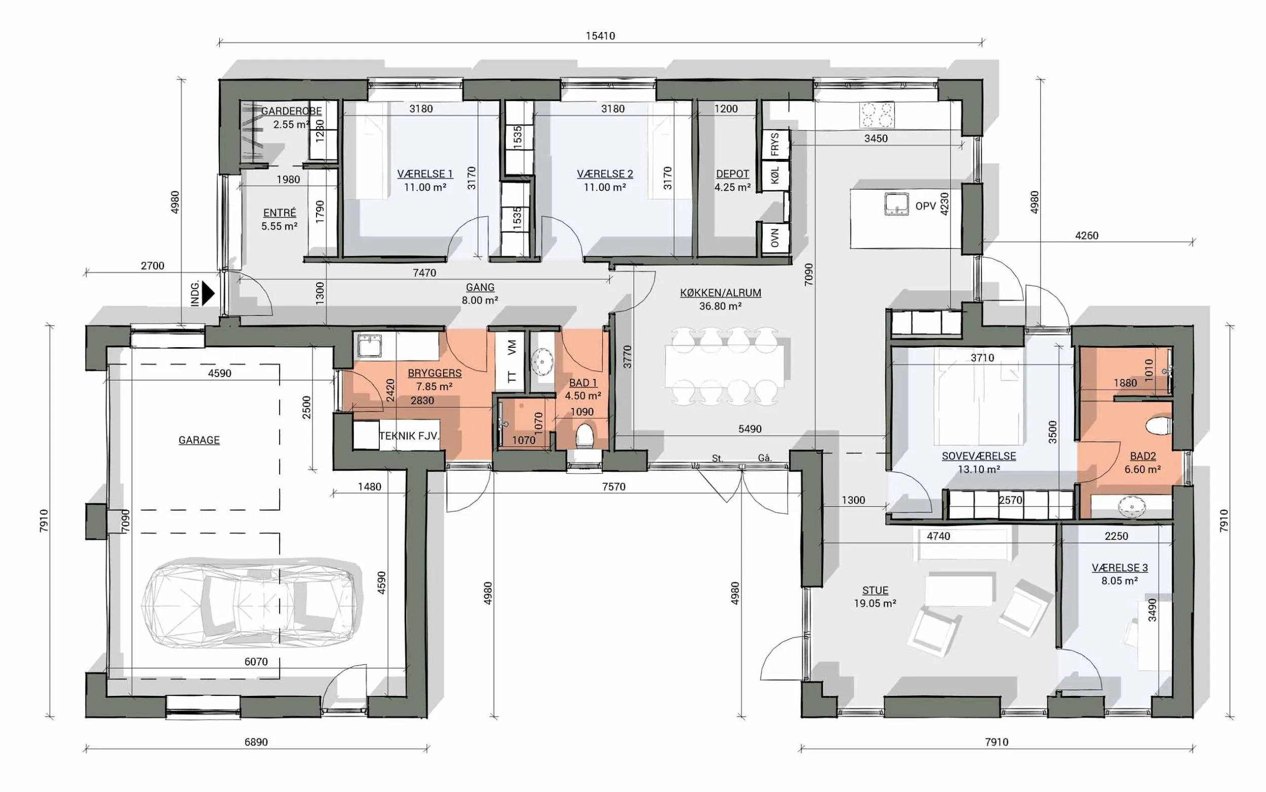 Bolig: 168 m2. Garage: 48 m2.