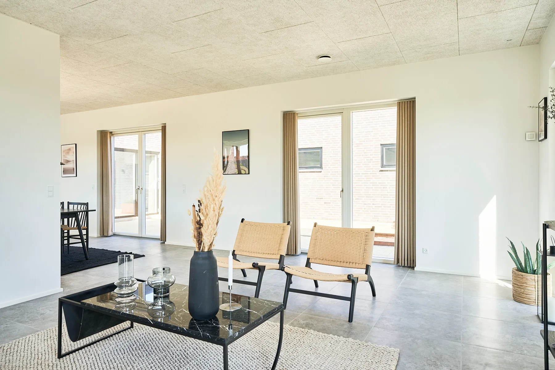 Atriumgård, overdækket terrasse og walk-in-closet.