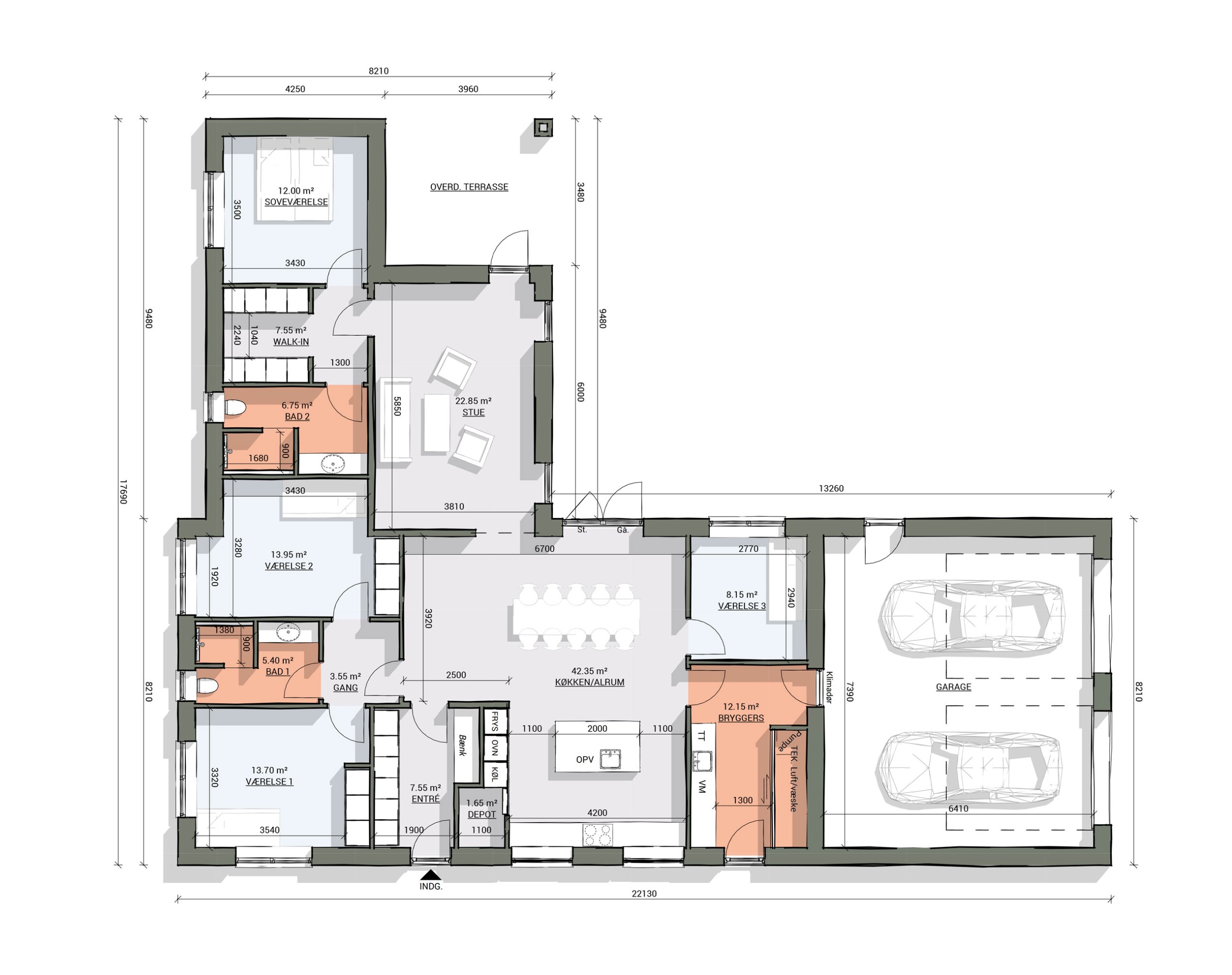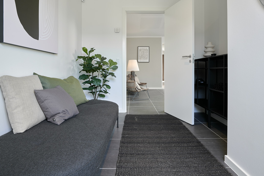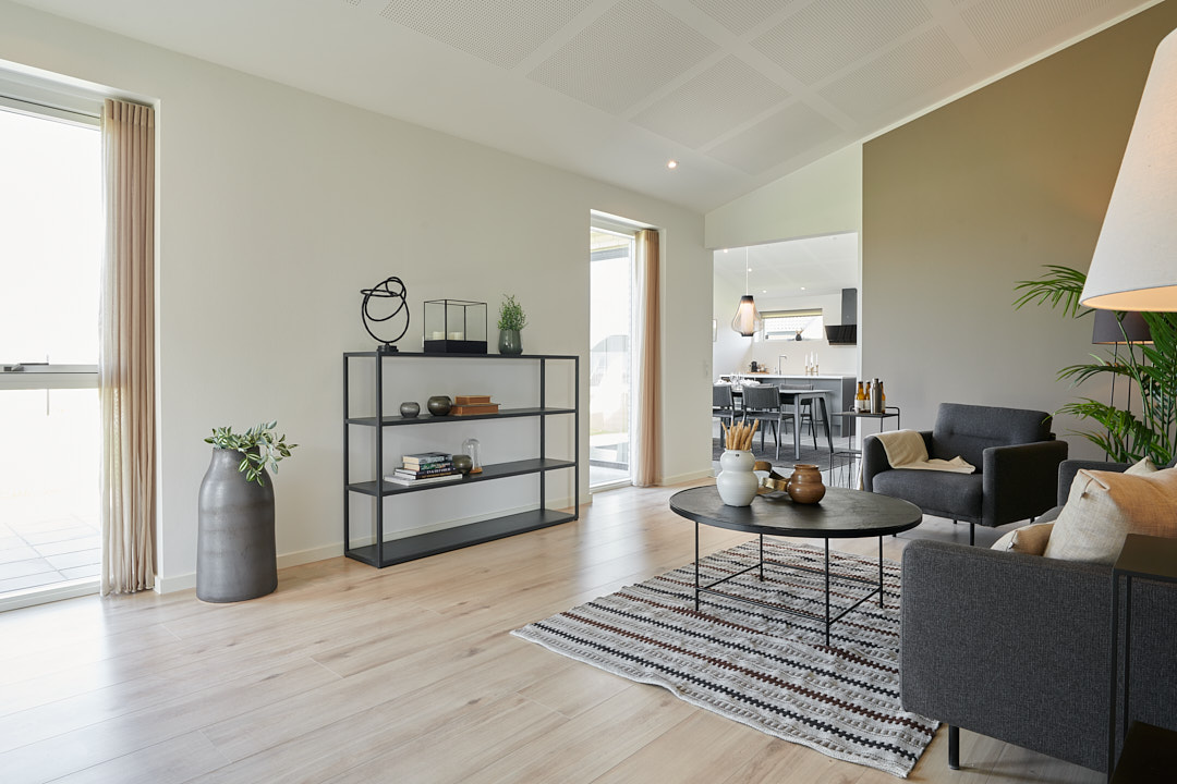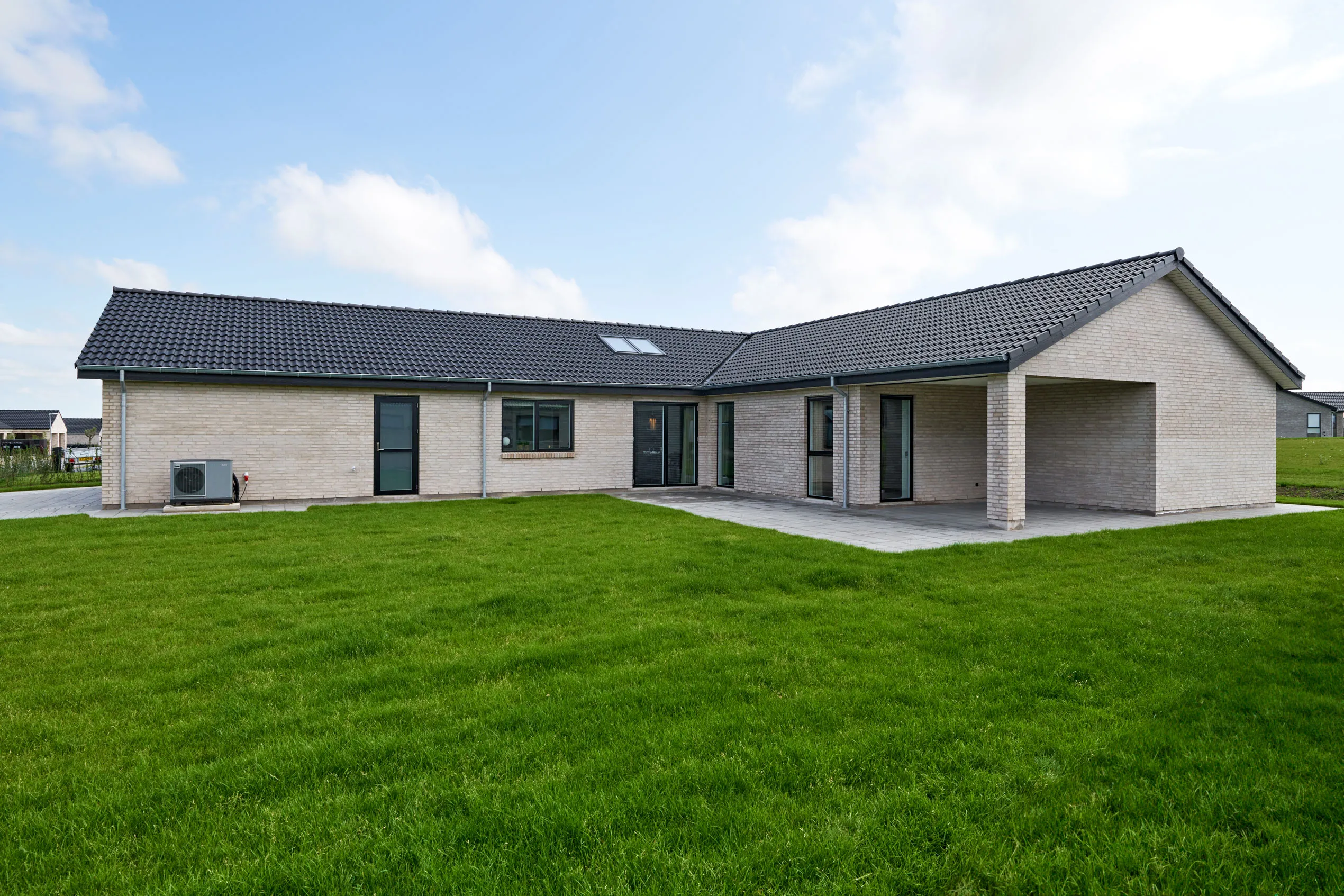 Overdækket terrasse, skjult depotrum og walk-in-closet.