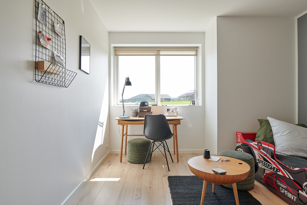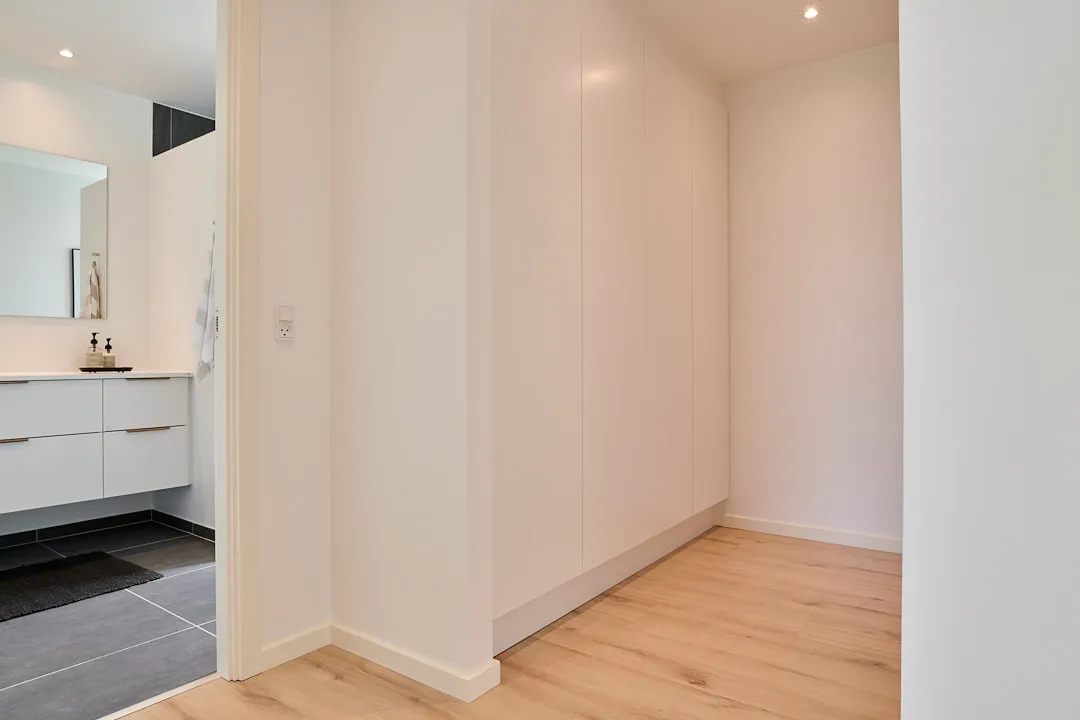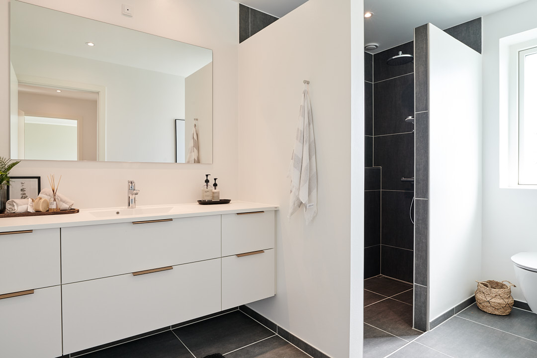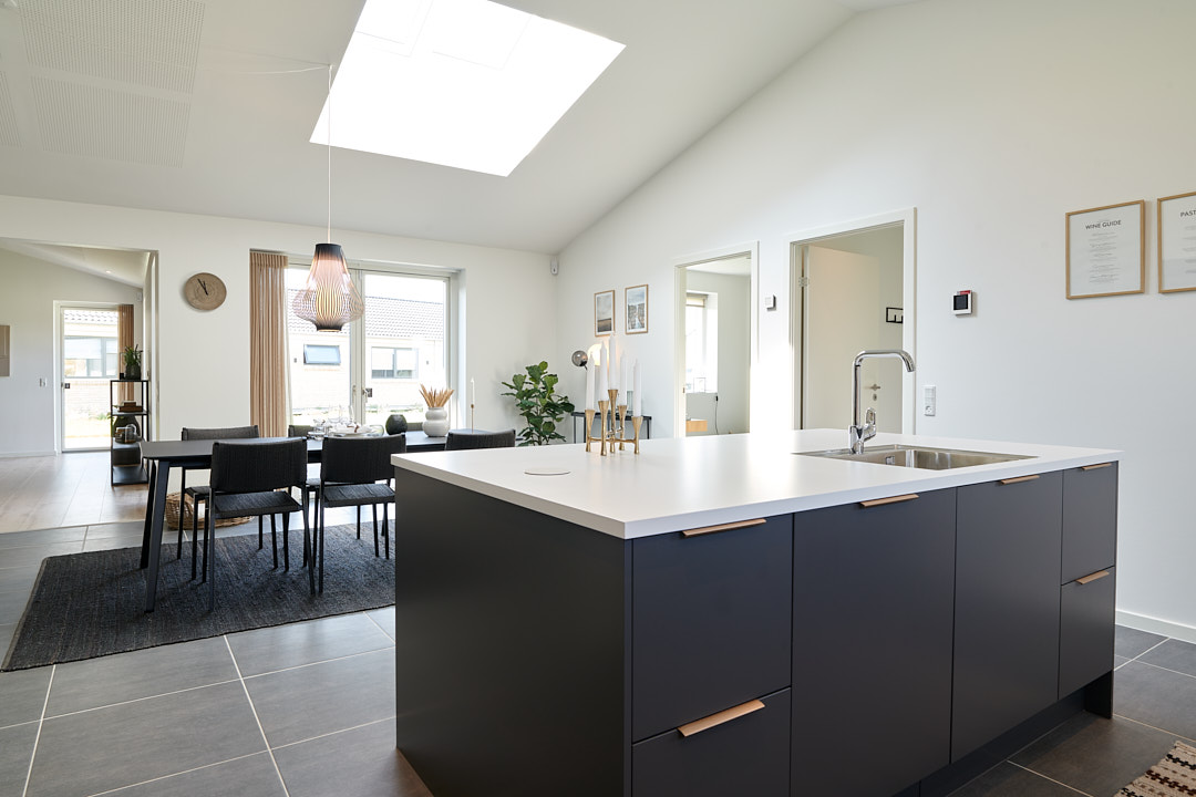 Overdækket terrasse, skjult depotrum og walk-in-closet.