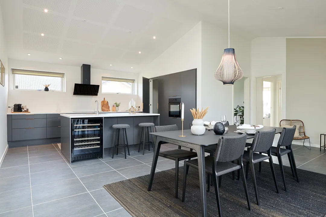 Mursten: Limoux. Klinker: Raw Urban Anthracite. Gulv: Wallmann Longboard Ko63.