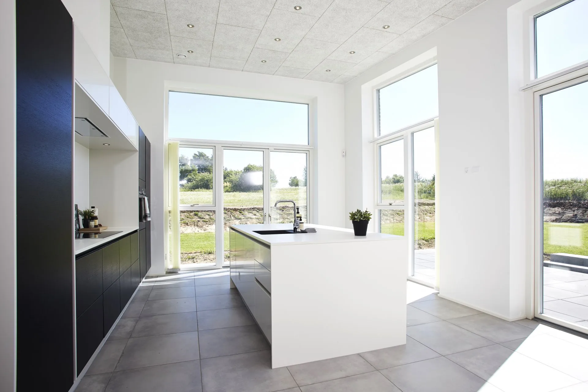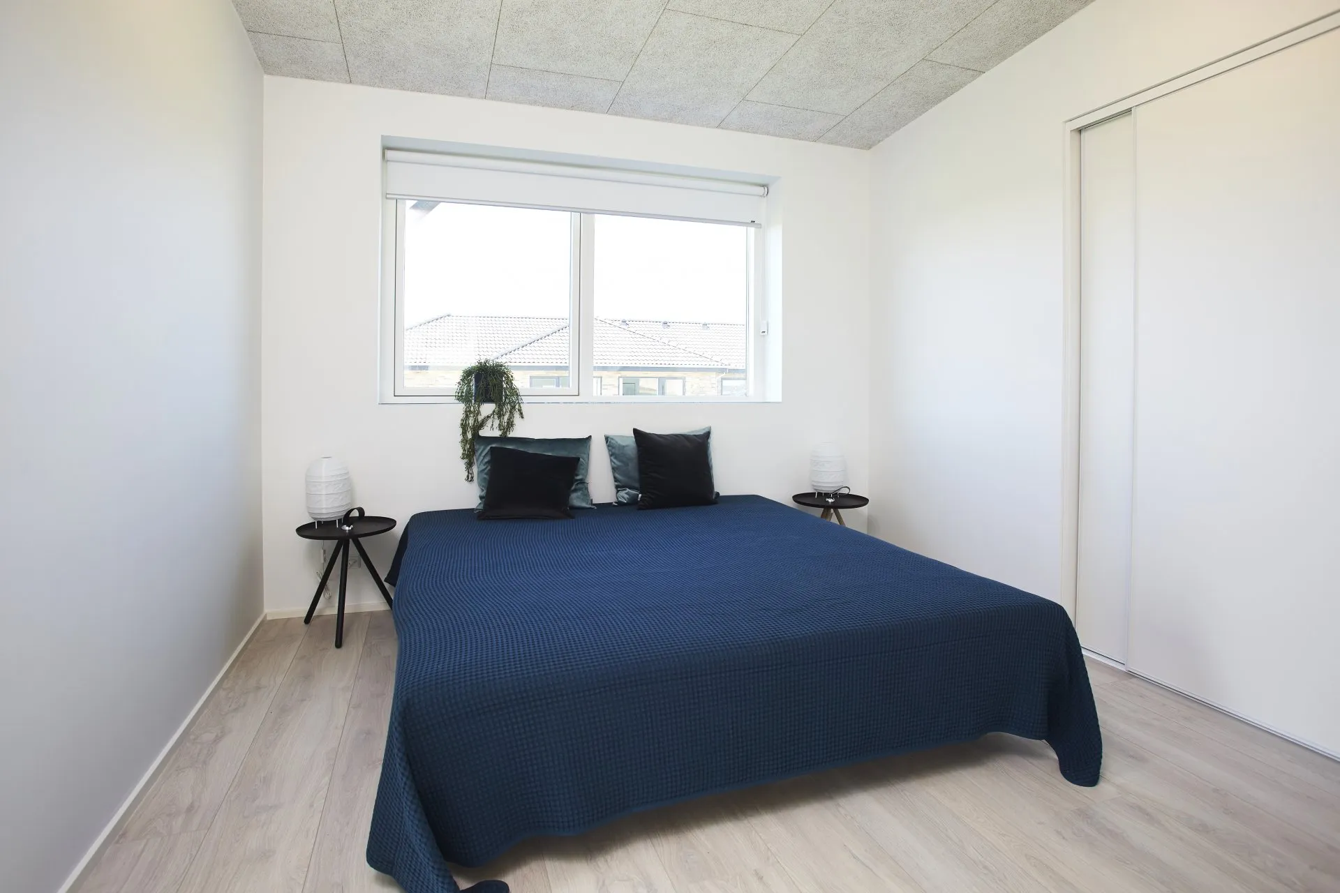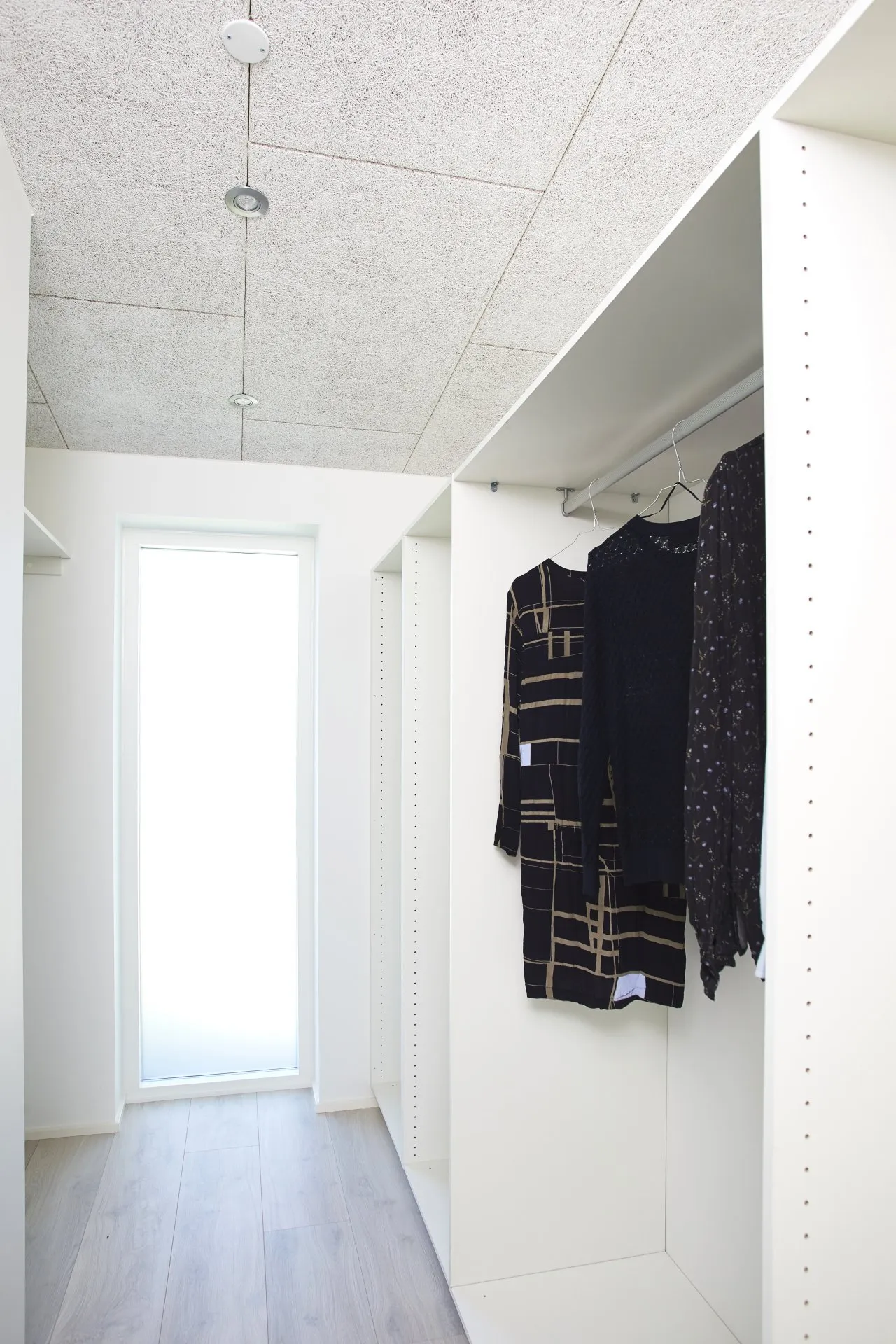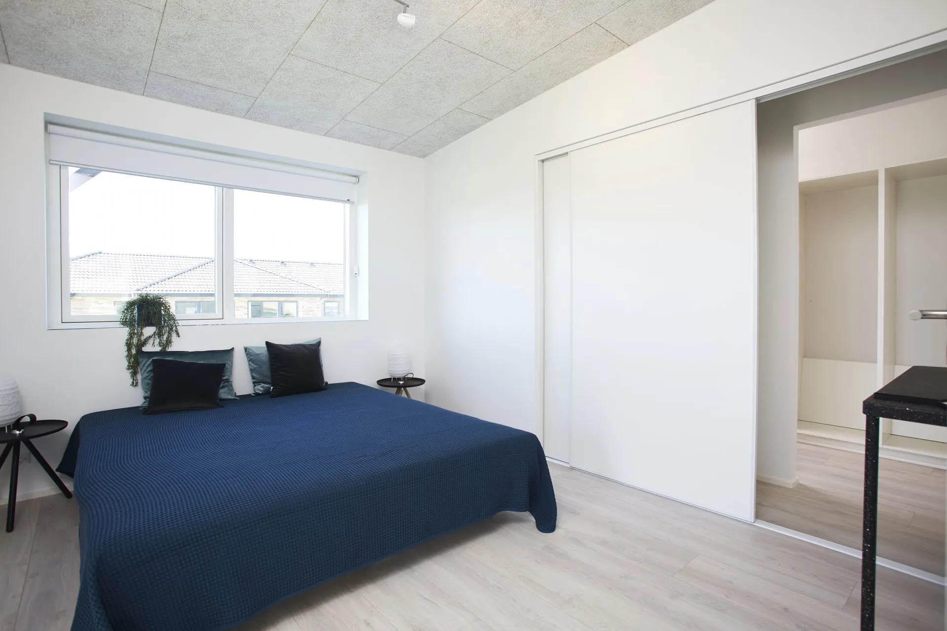 Skrålofter i hele huset, walk-in med skydedør, bænk i entre, indbyggede skabe og dobbelt brus.