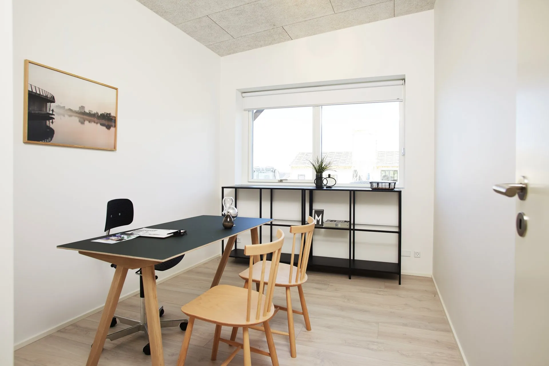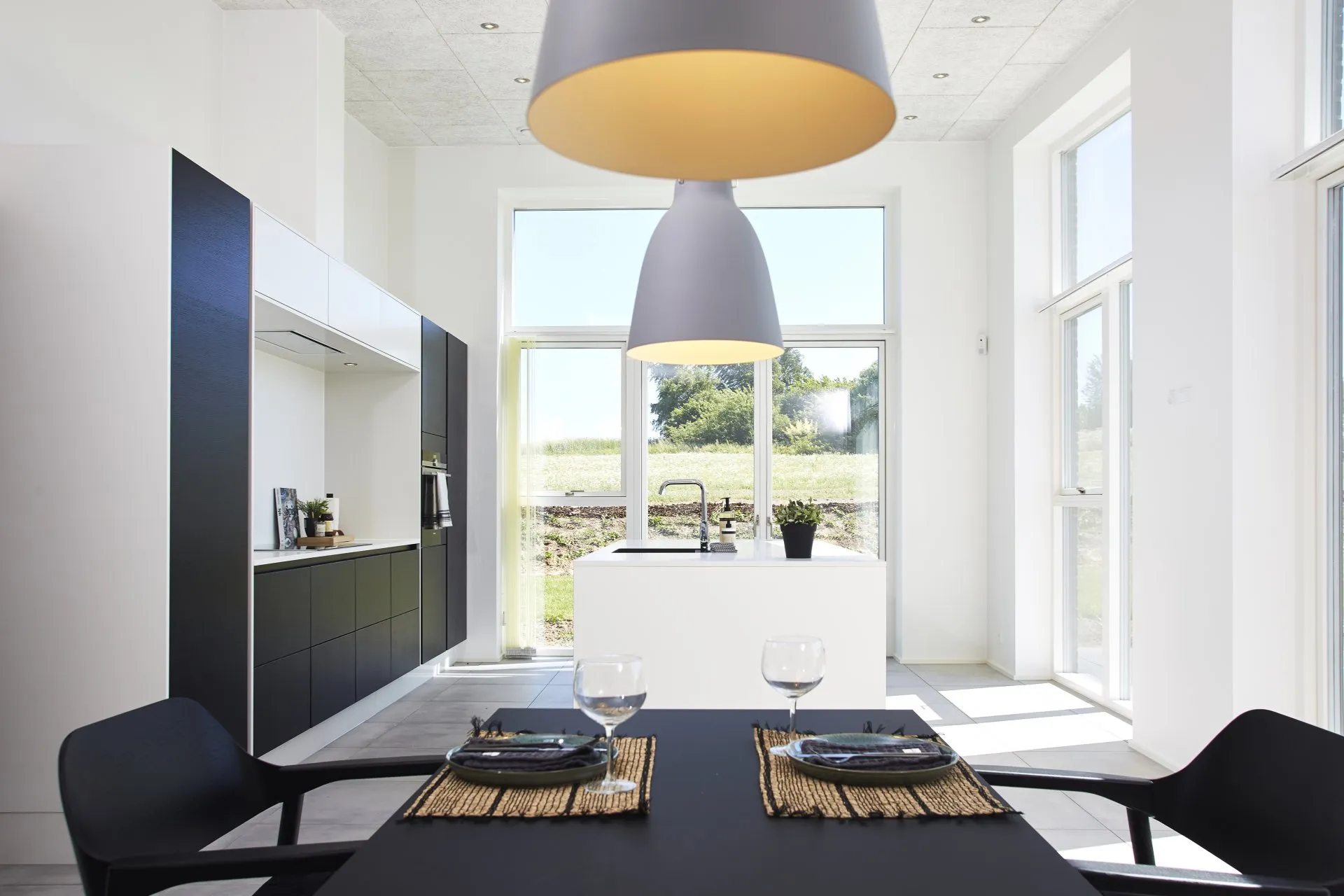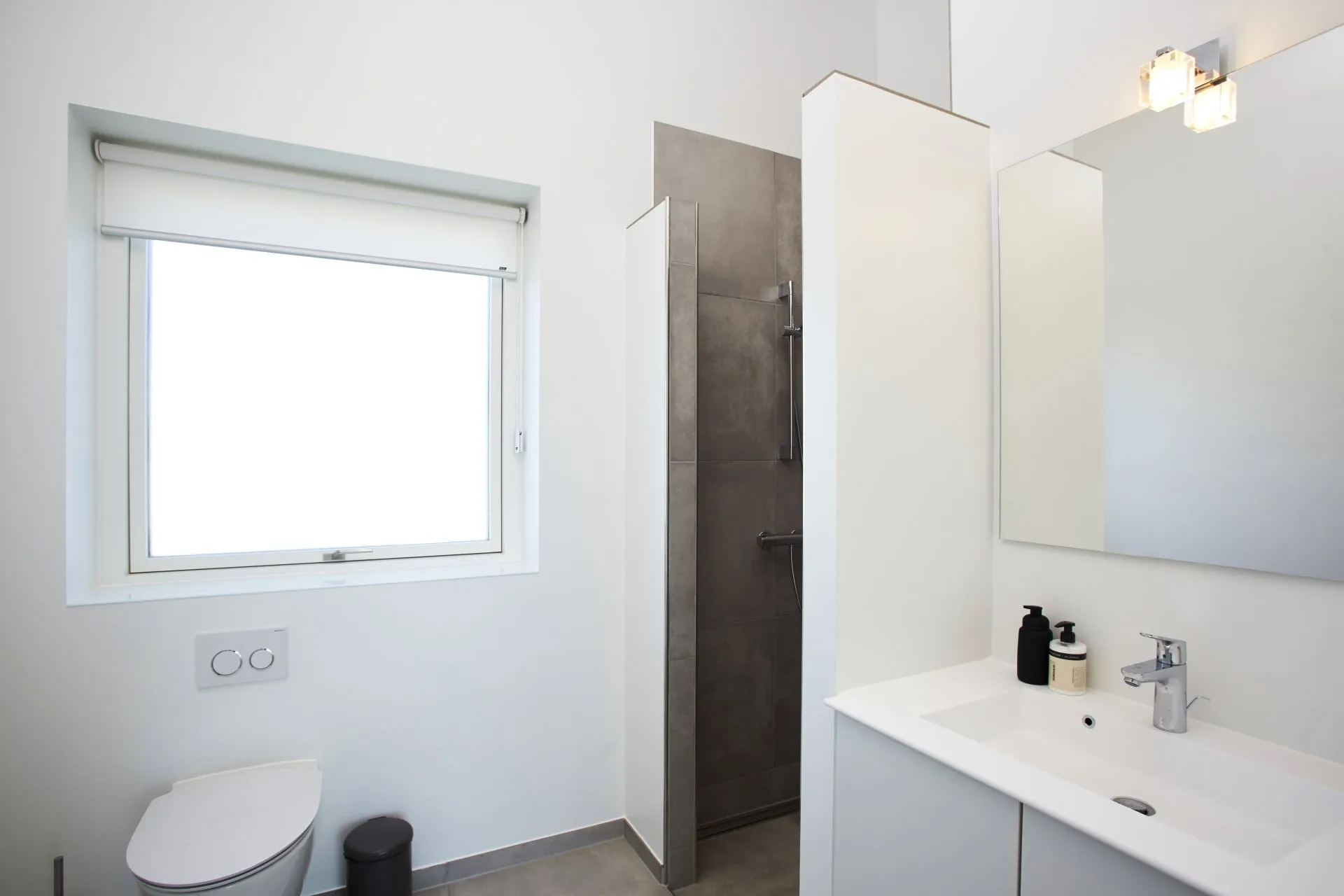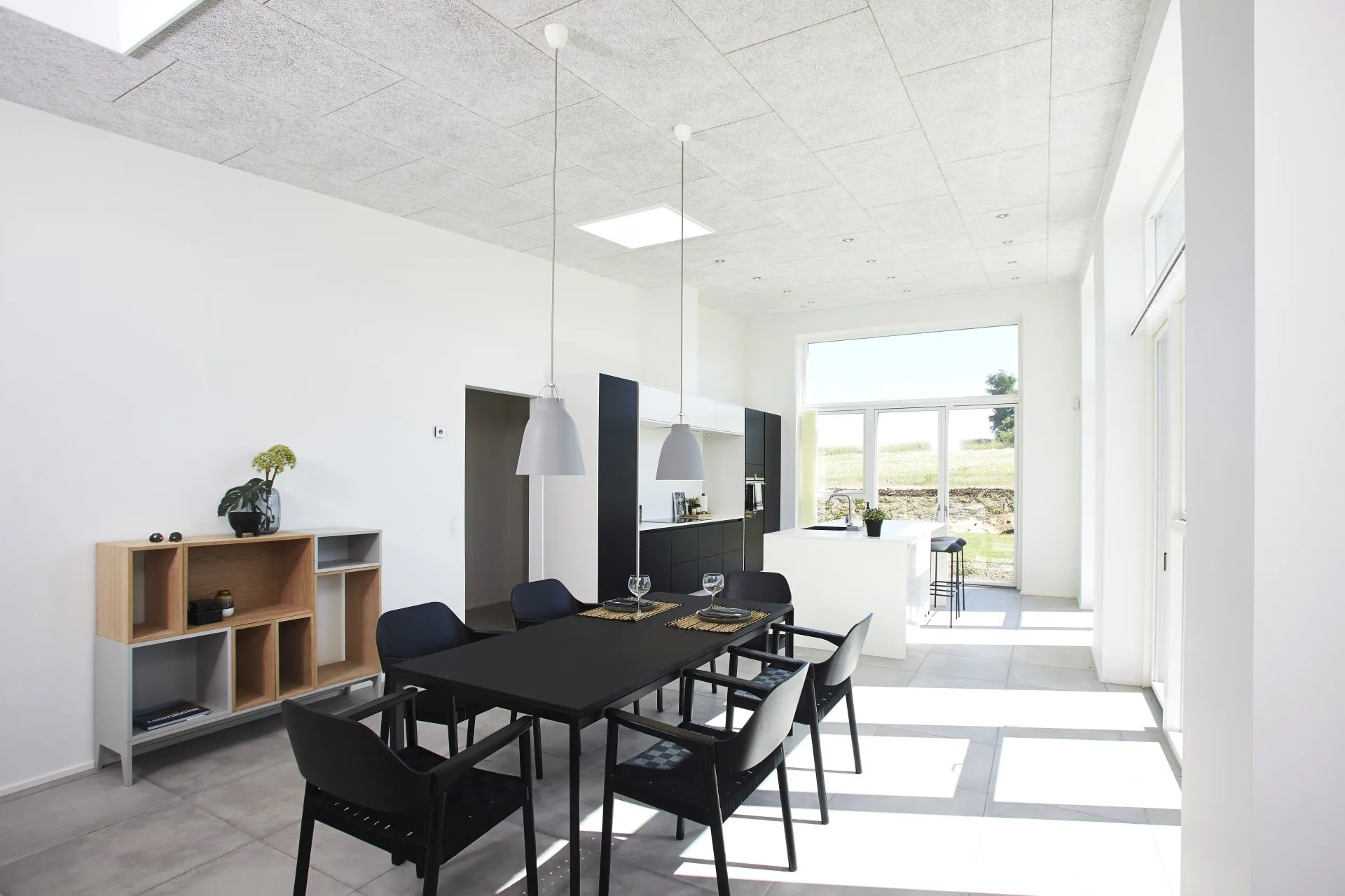 Skrålofter i hele huset, walk-in med skydedør, bænk i entre, indbyggede skabe og dobbelt brus.