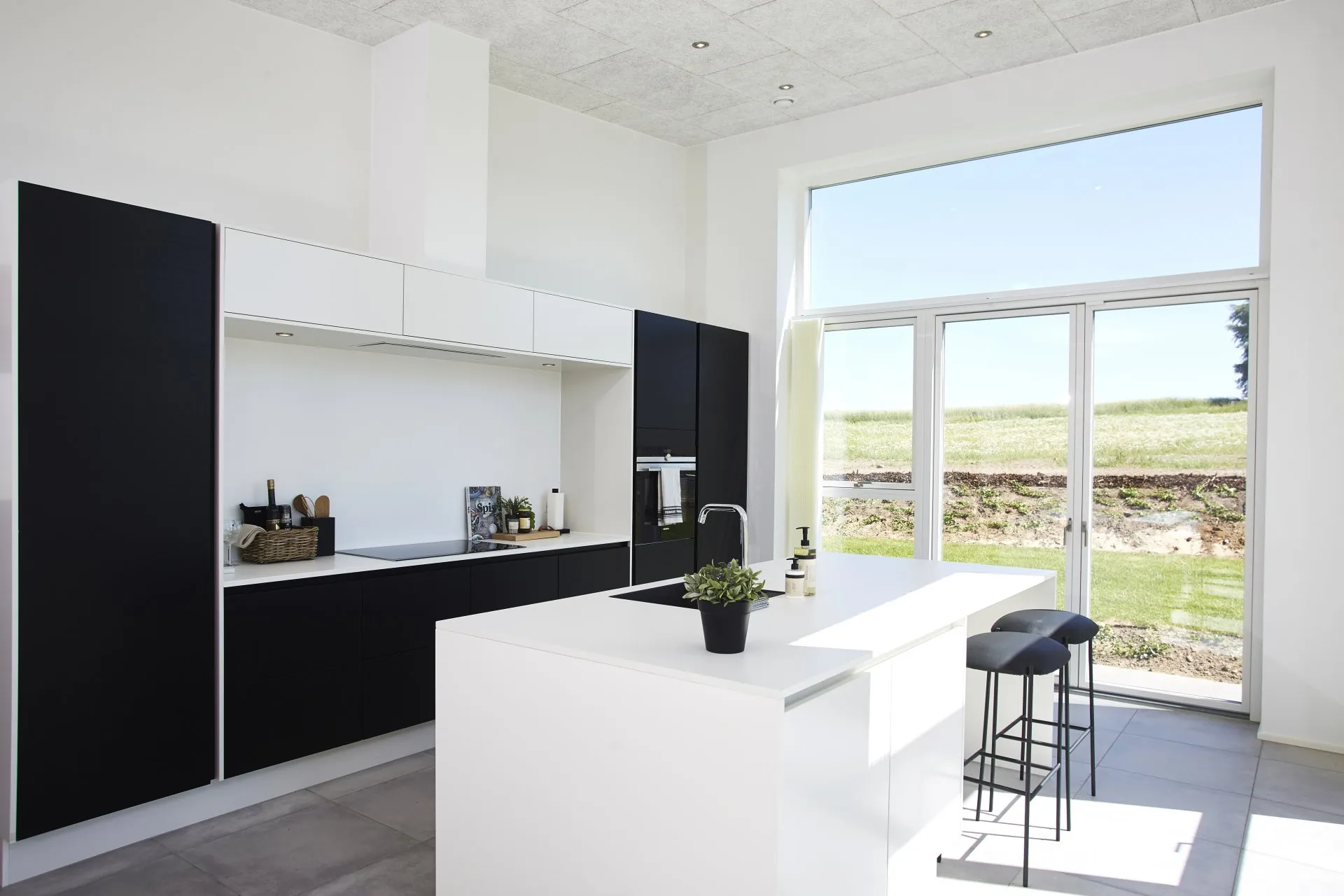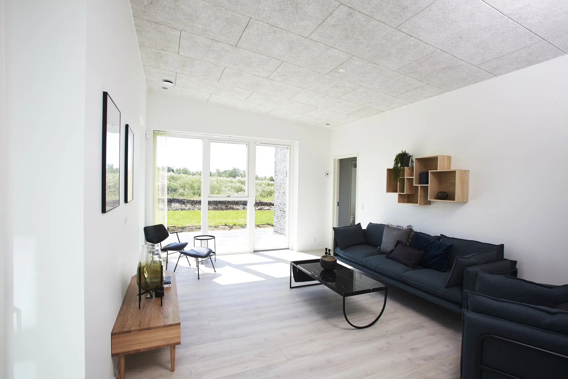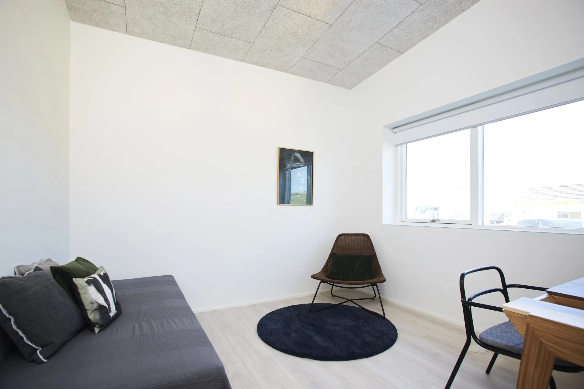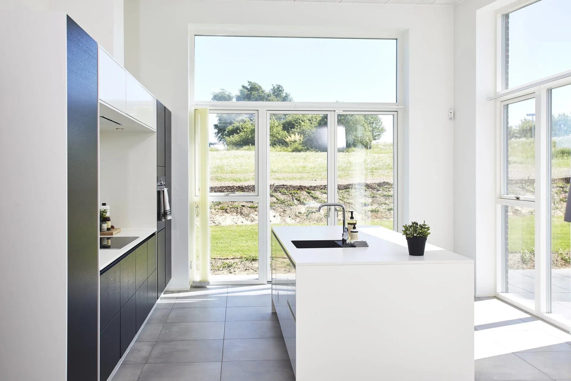 Skrålofter i hele huset, walk-in med skydedør, bænk i entre, indbyggede skabe og dobbelt brus.
