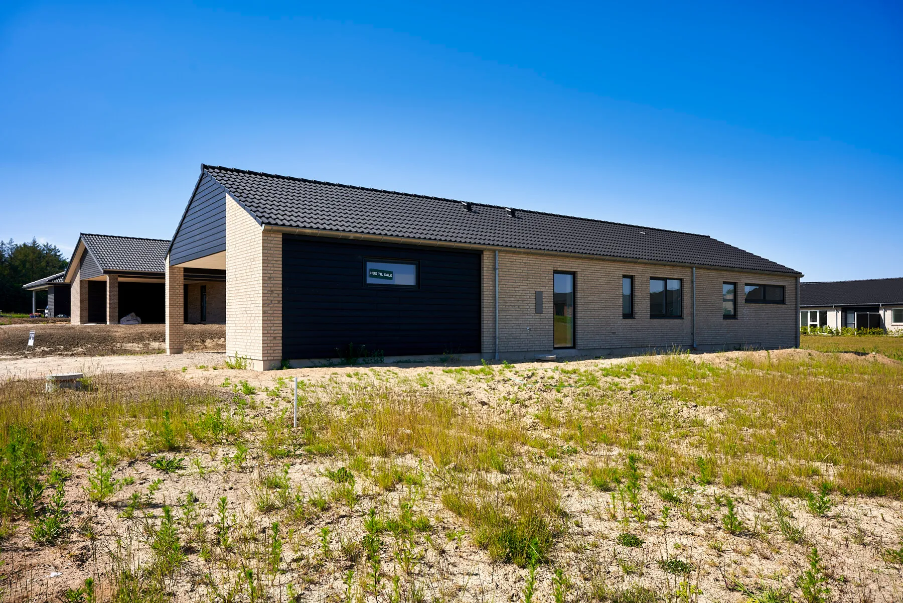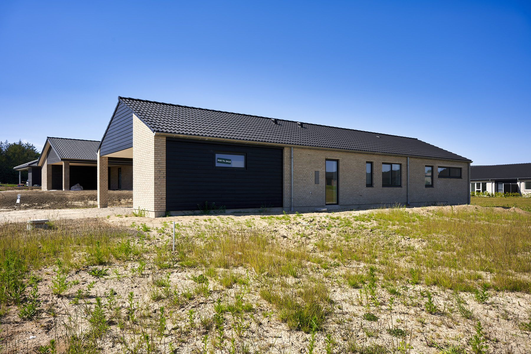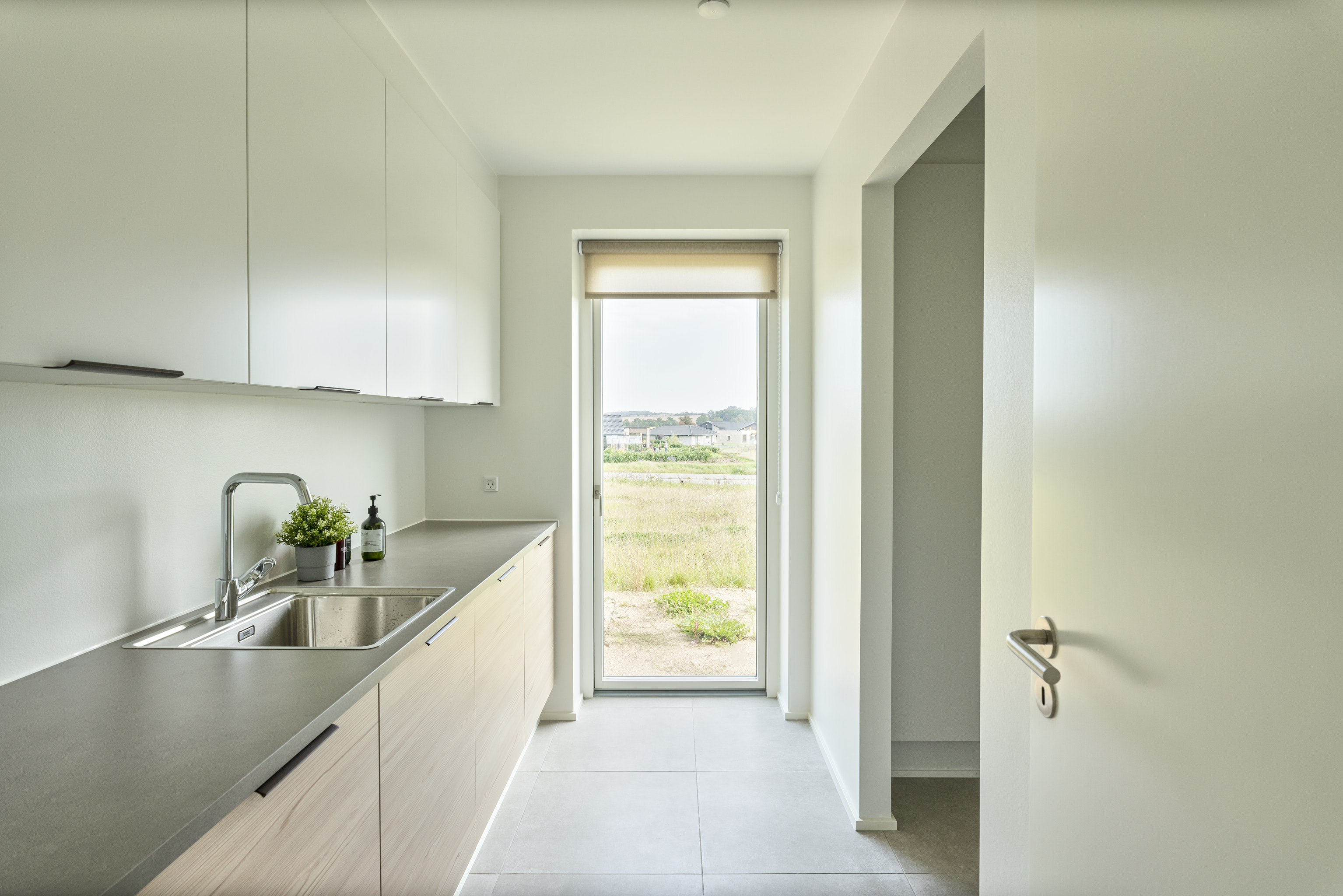 Overdækket terrasse, skjult depotrum og velindrettet bryggers.