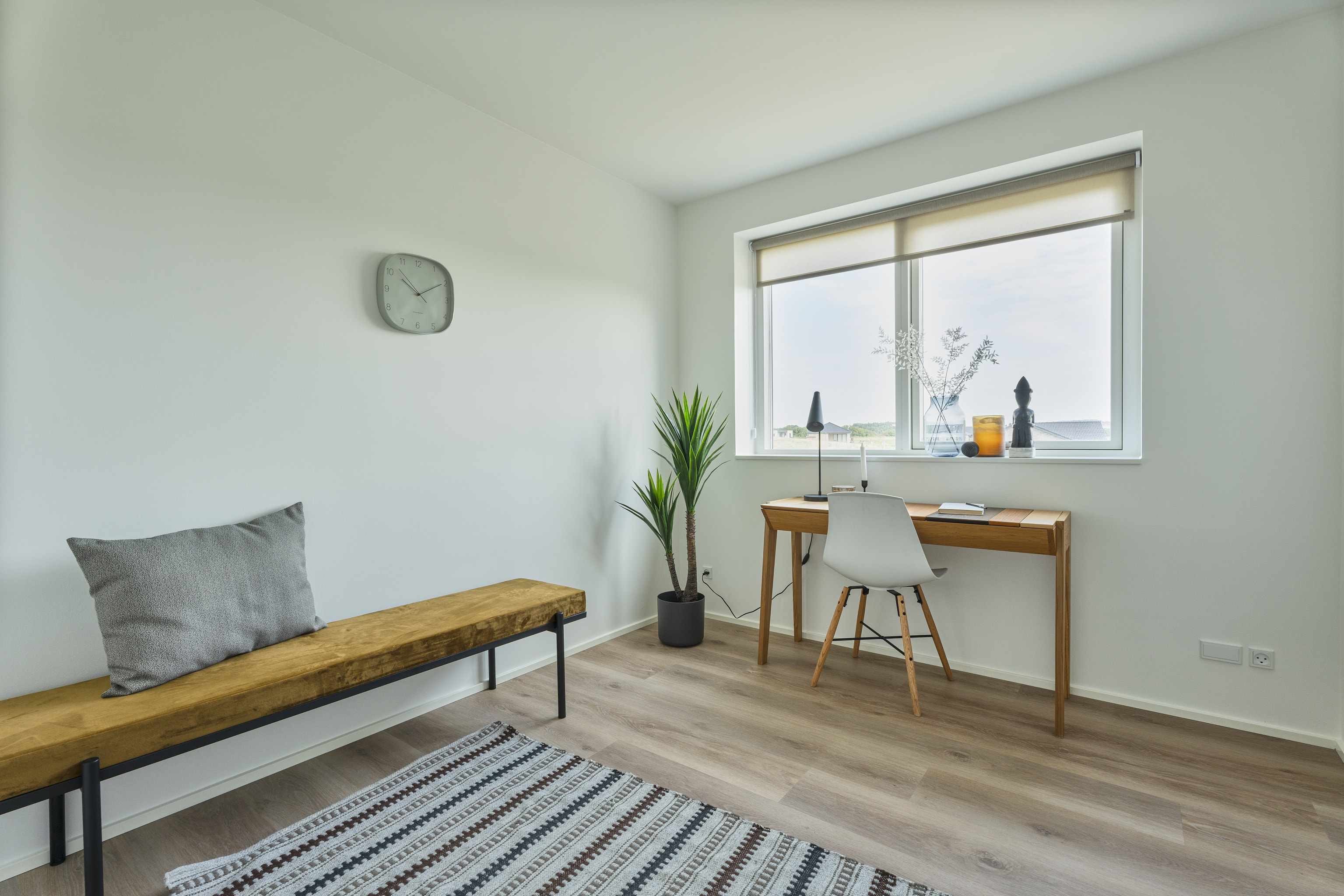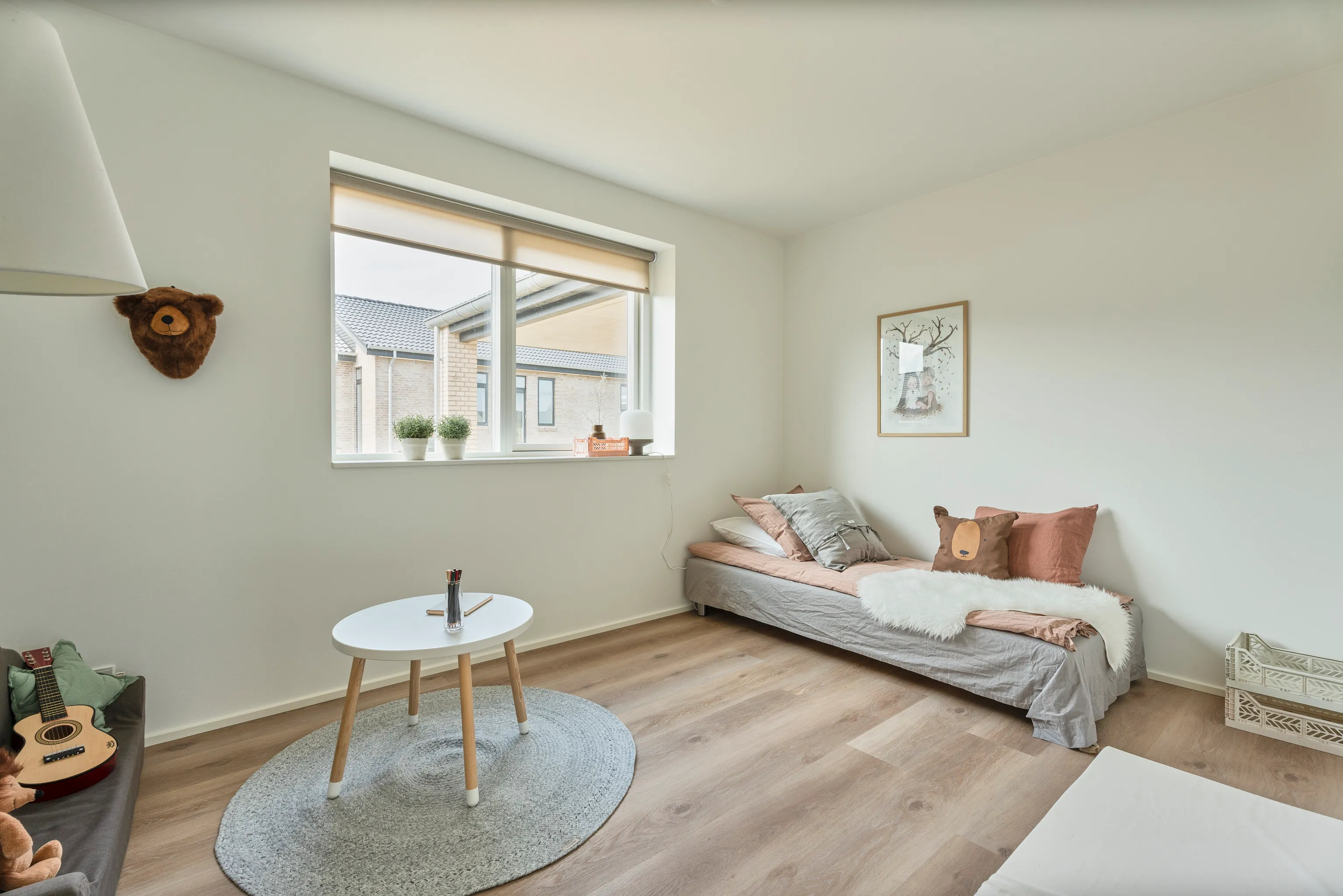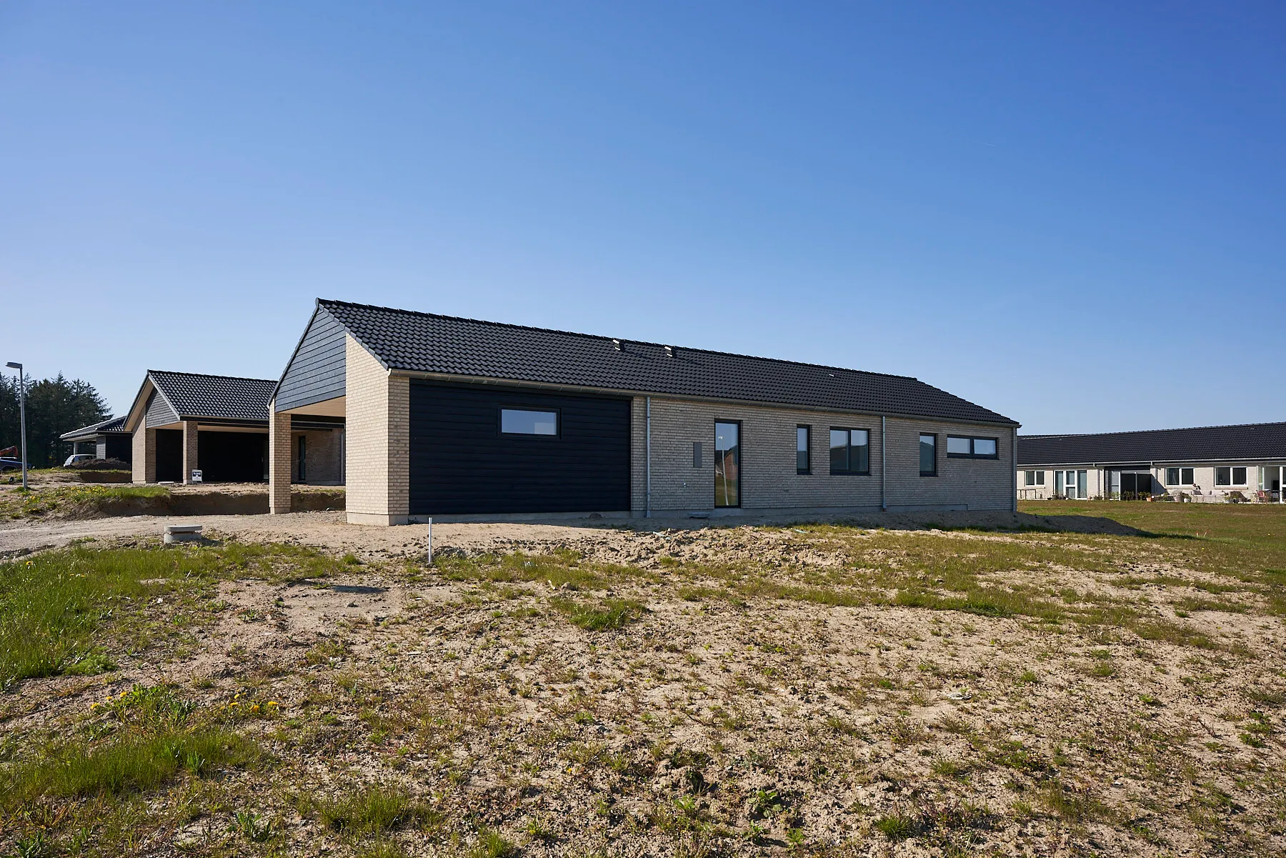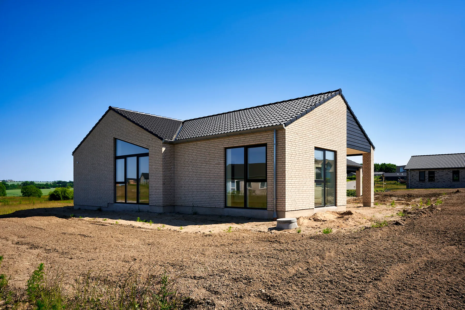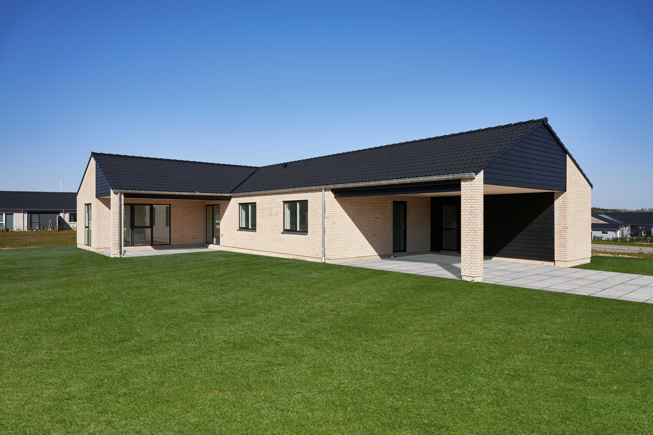 Velindrettet forskudt vinkelhus med saddeltag uden udhæng.