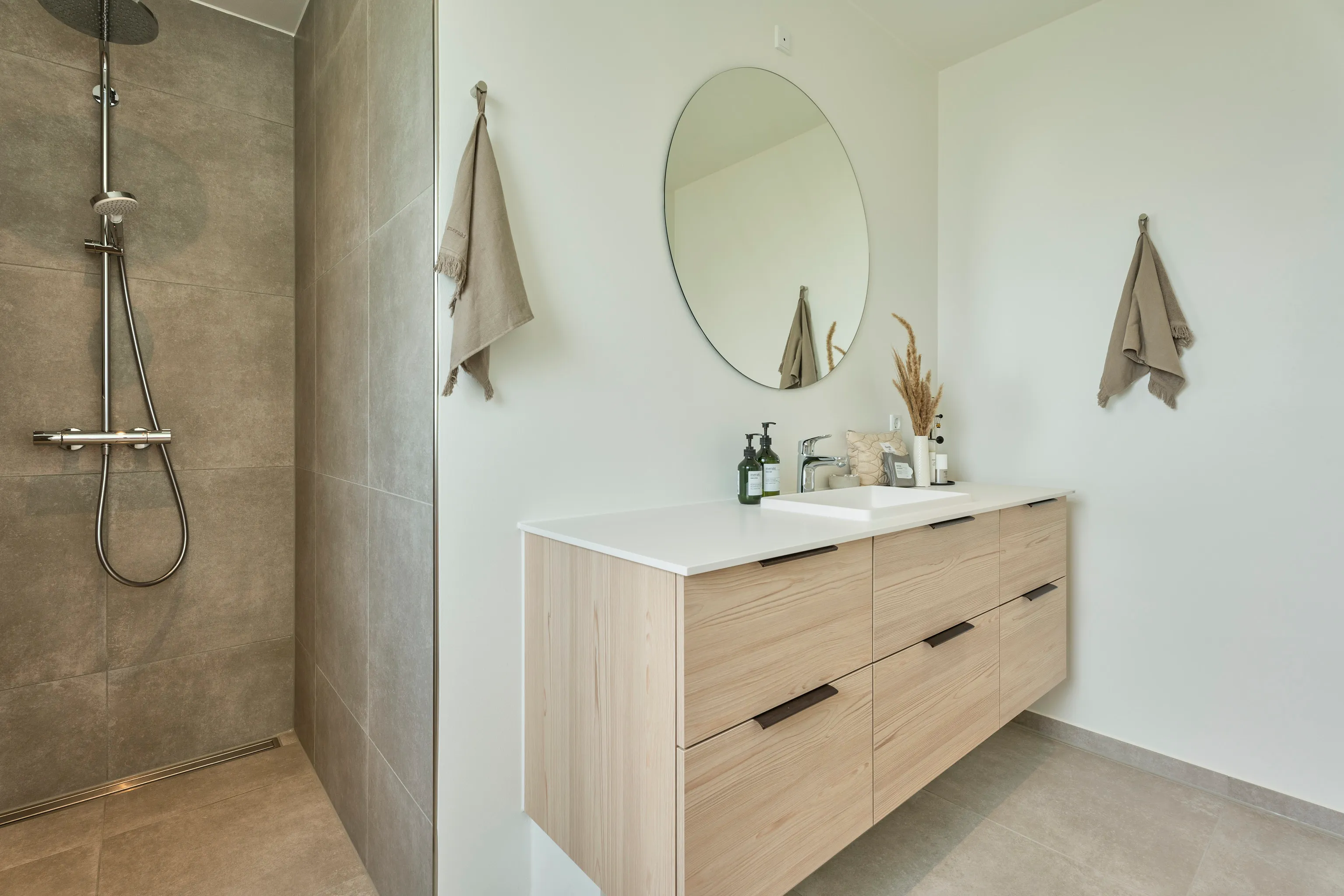 Mursten: Avignon Coal. Klinker: Atrium Entis Arena. Gulv: Timberman Nevada Oak.