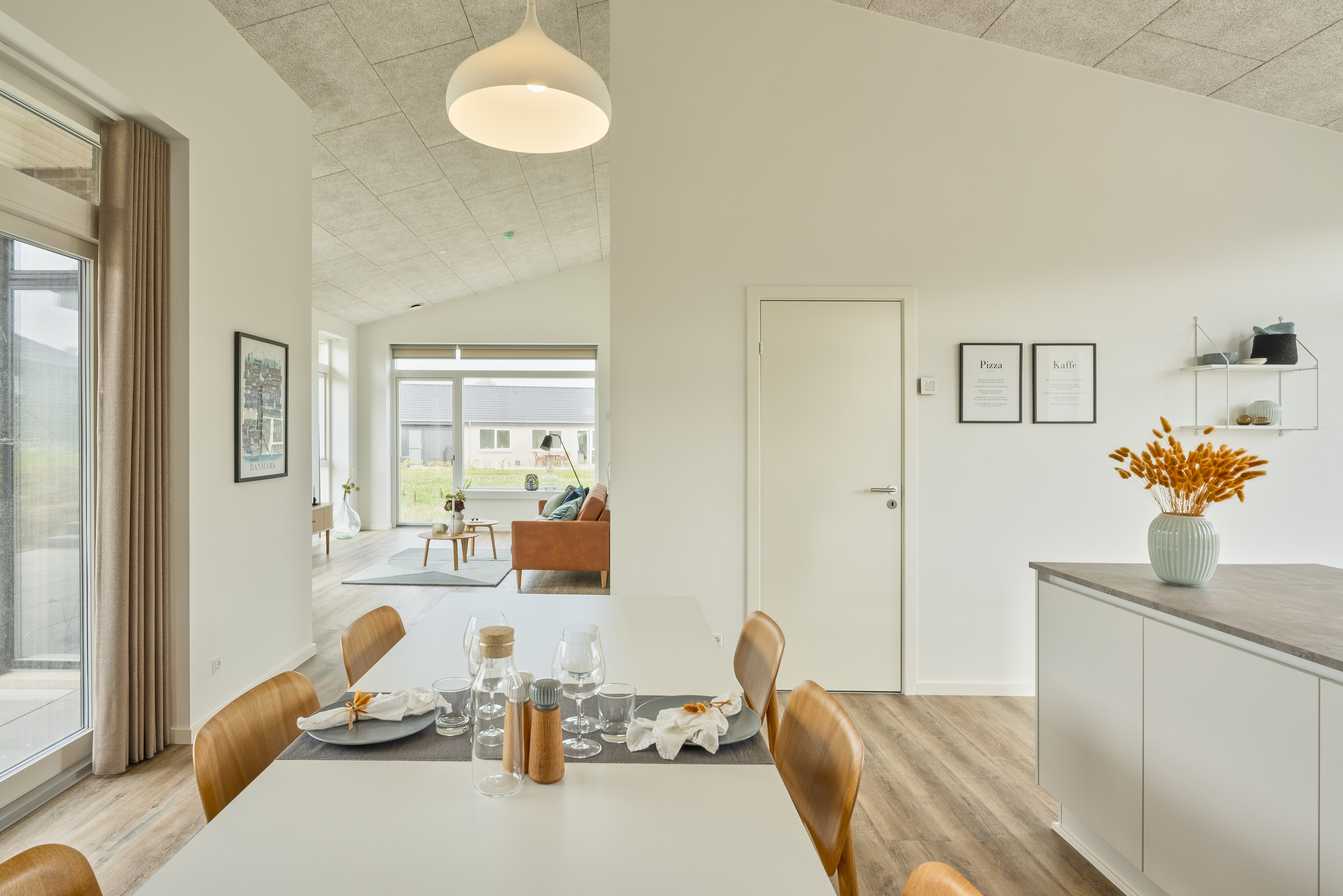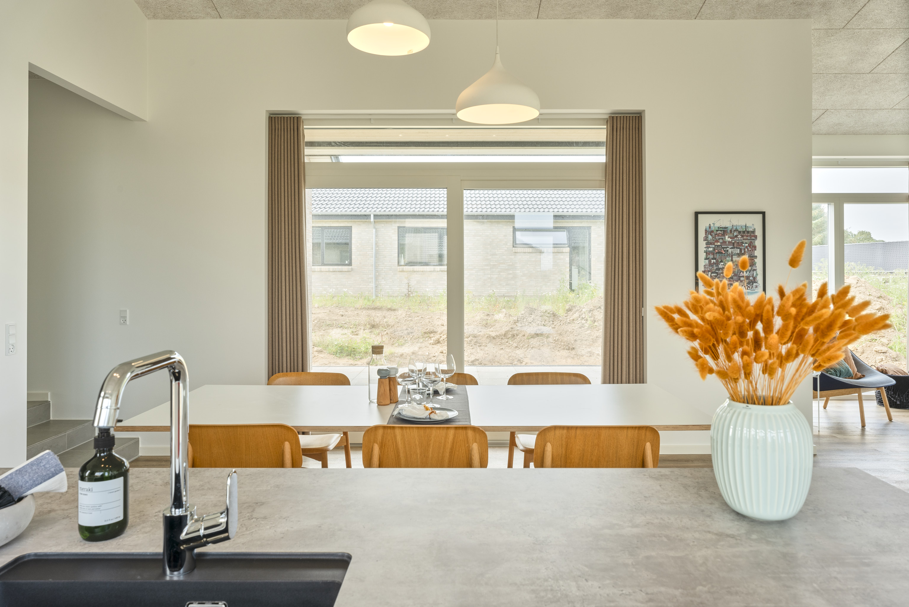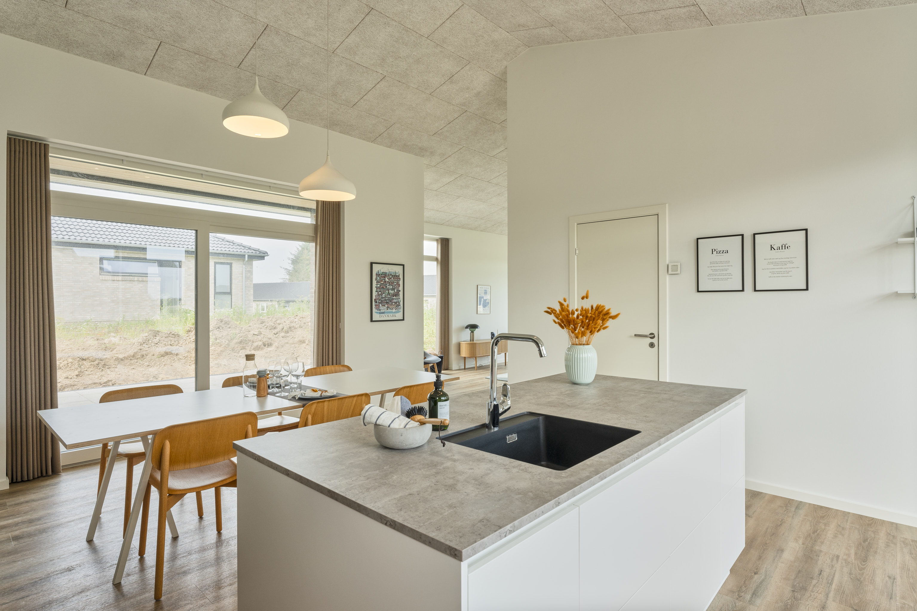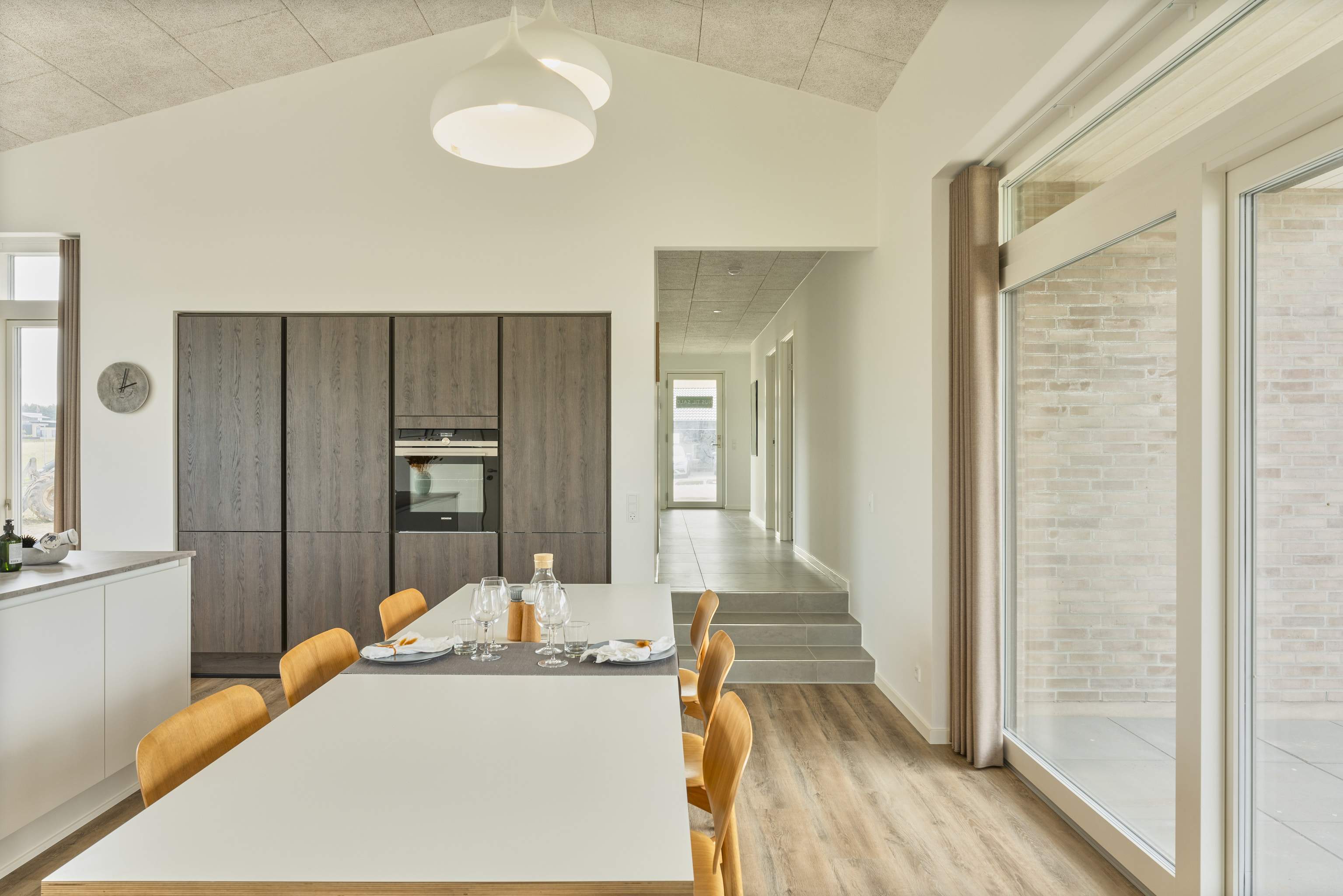 Stort og lyst køkken/alrum, depotrum og walk-in-closet.