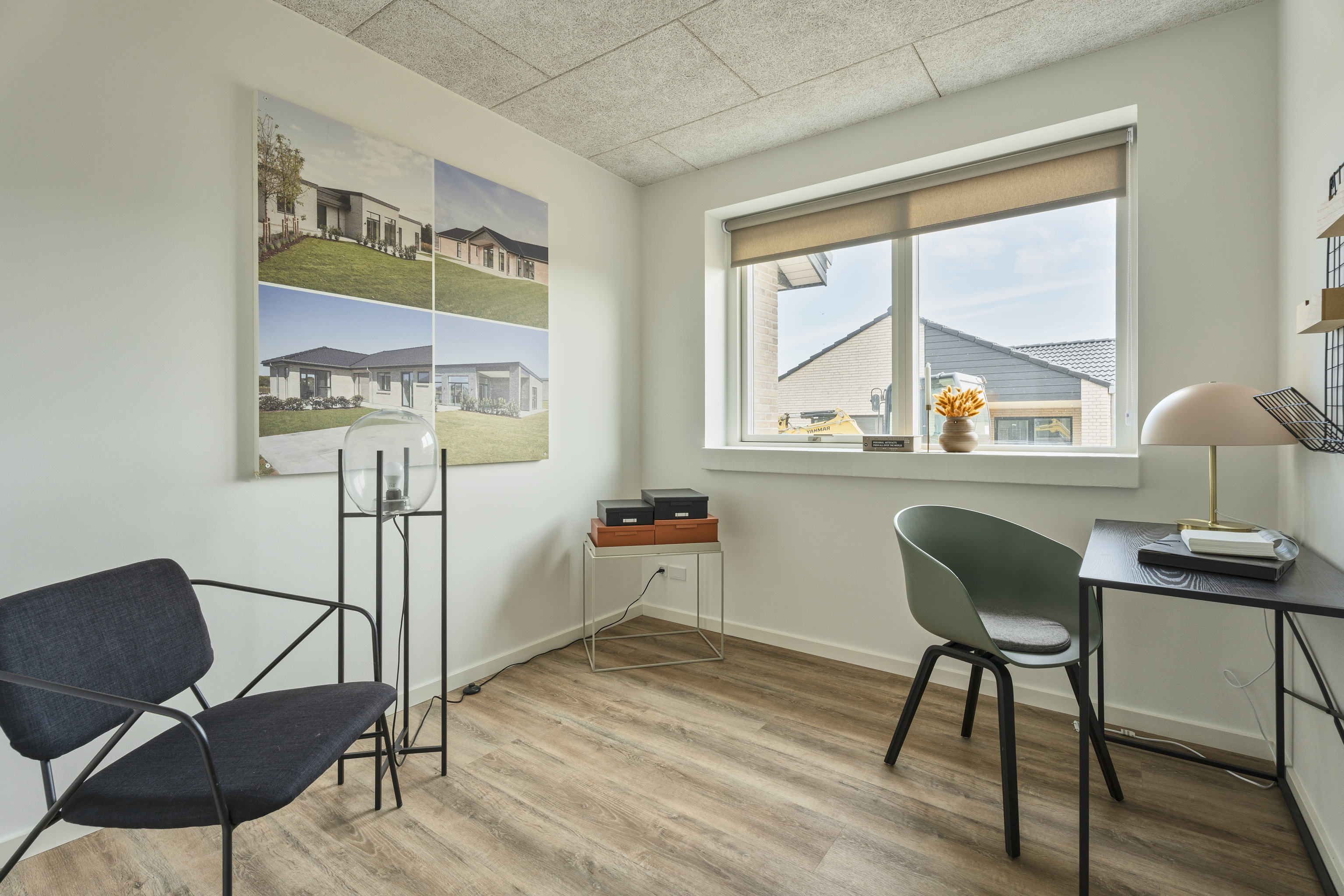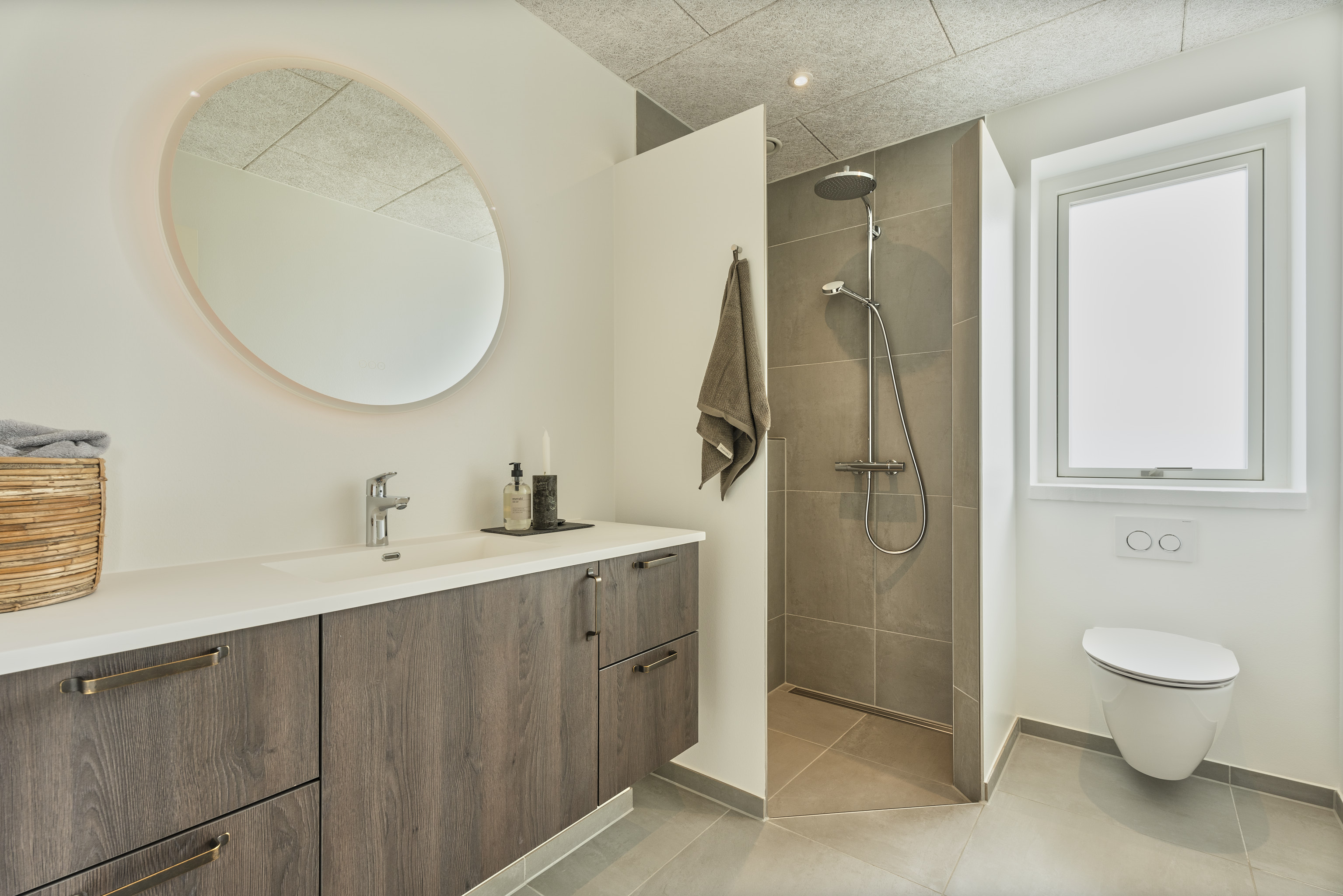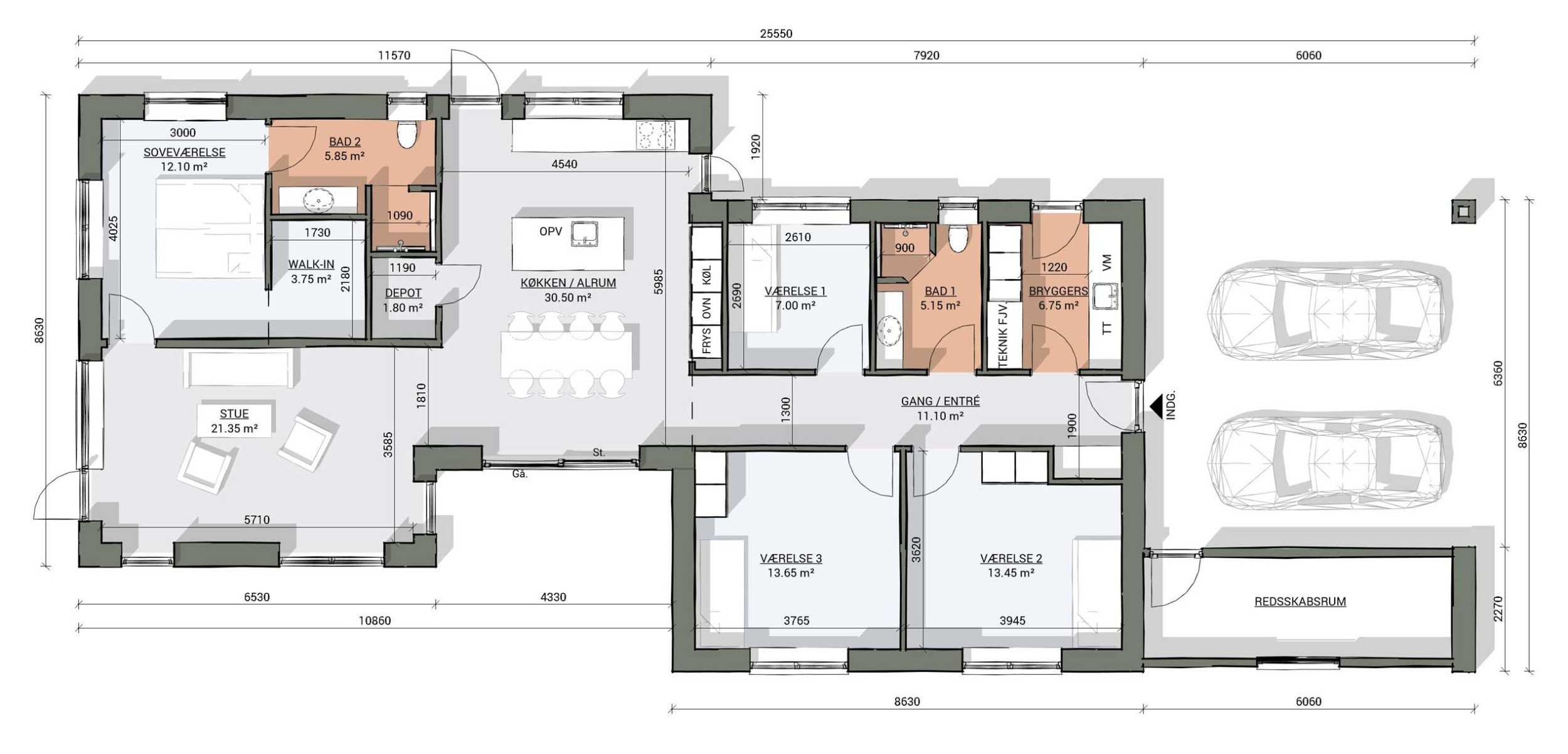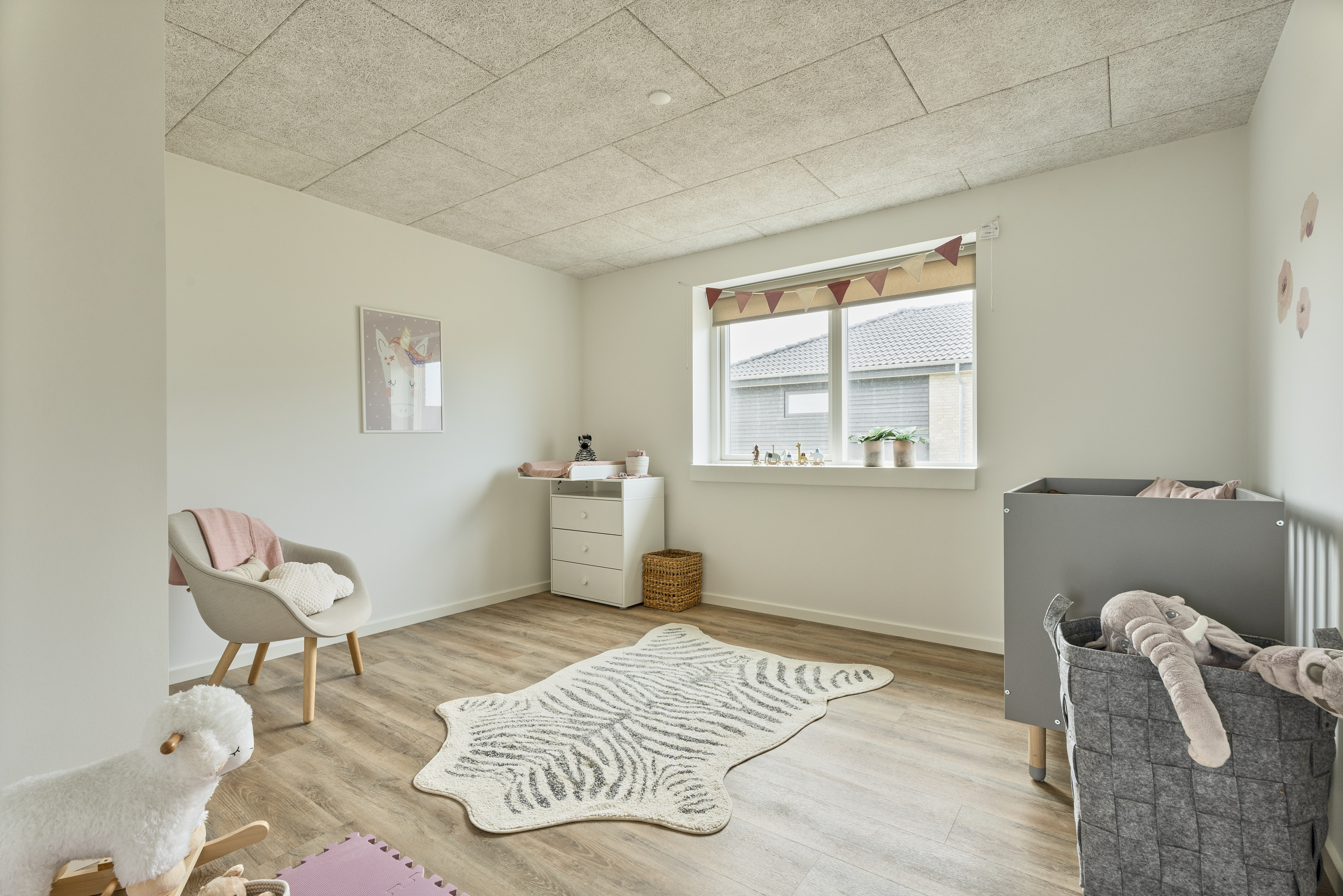 Stort og lyst køkken/alrum, depotrum og walk-in-closet.