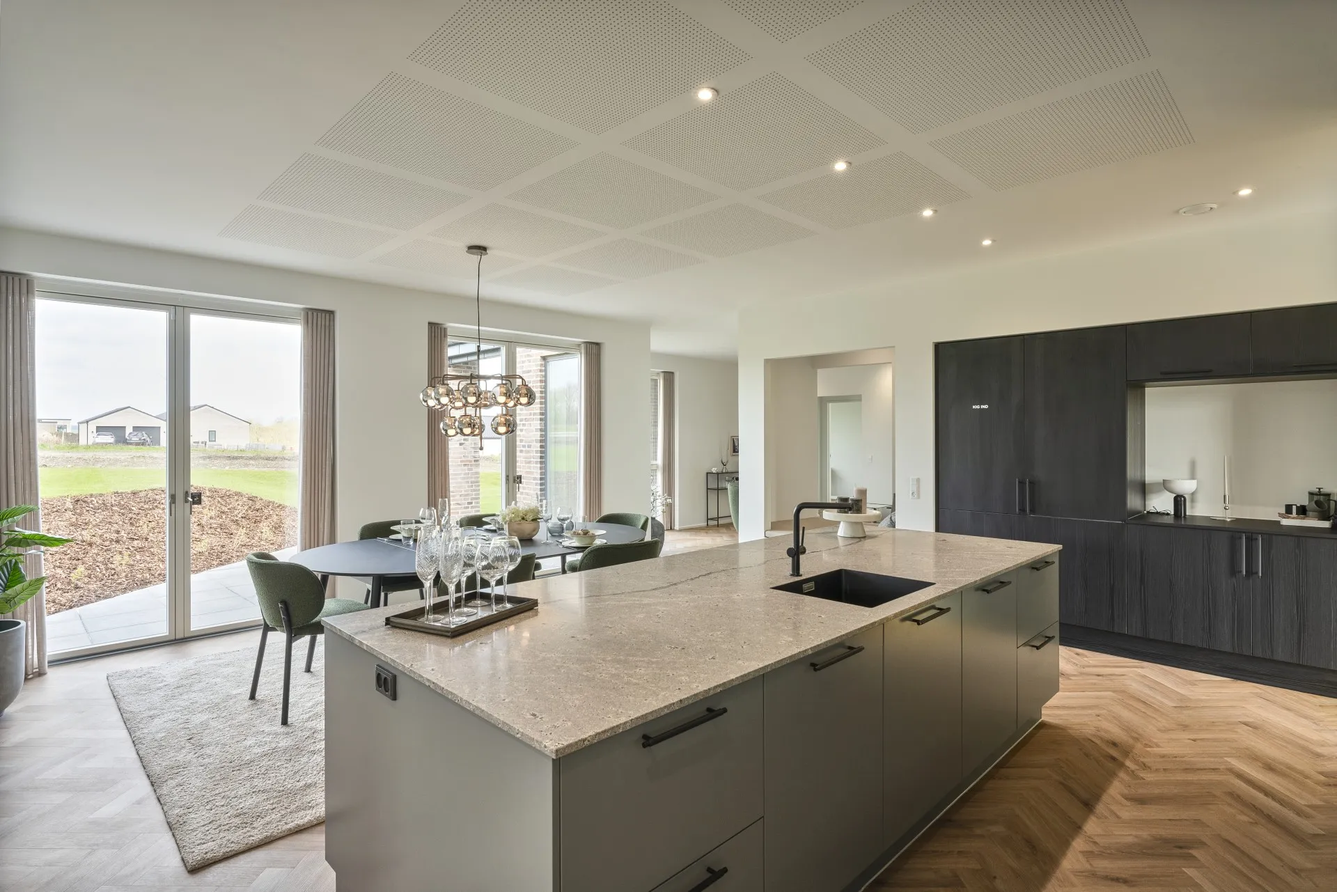 Stort køkken-alrum, hyggelig alkove og adskilt forældre- og børneafdeling.
