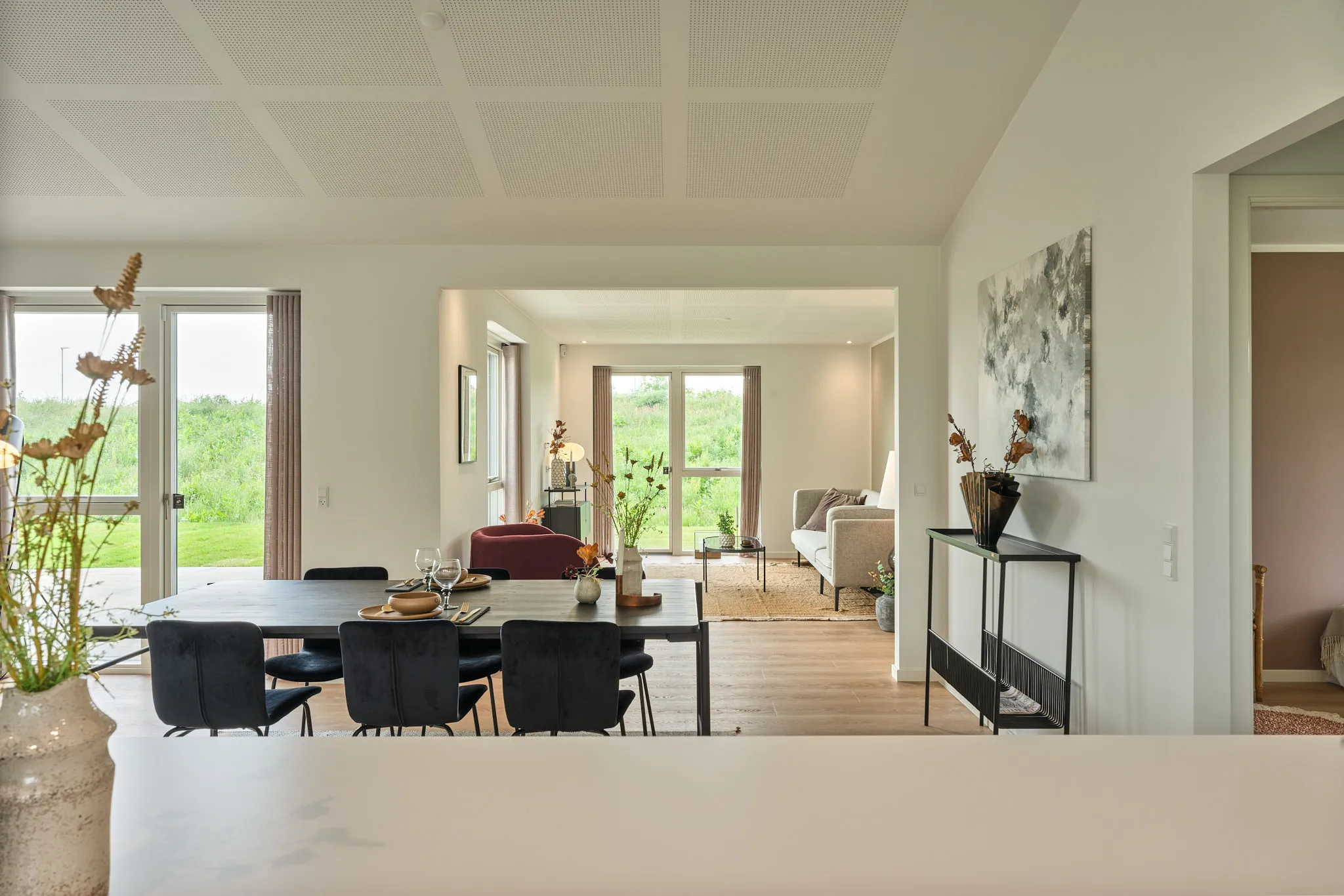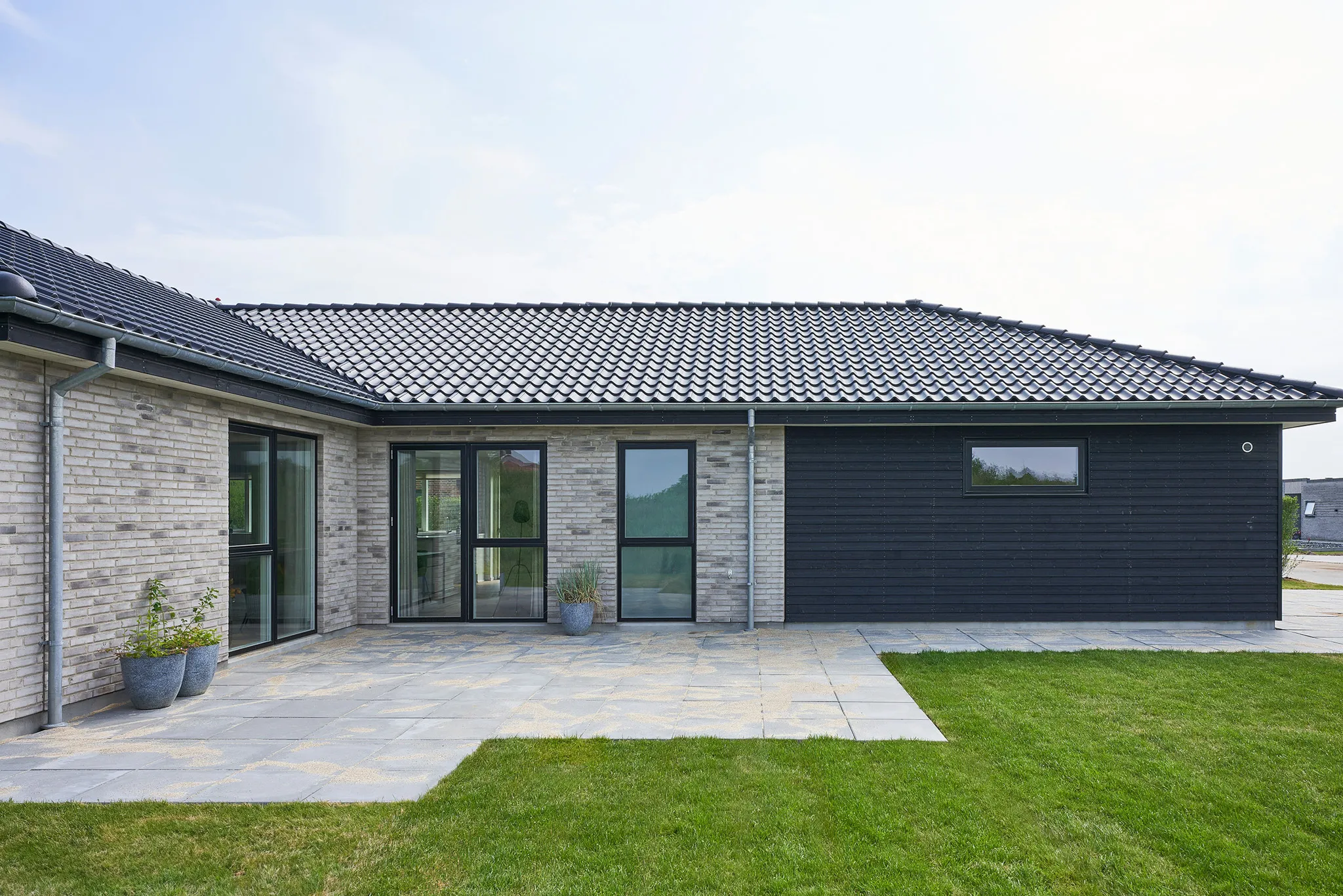 Stort køkken-alrum, opdelt forældre- og børneafdeling og dejlig terrasse.