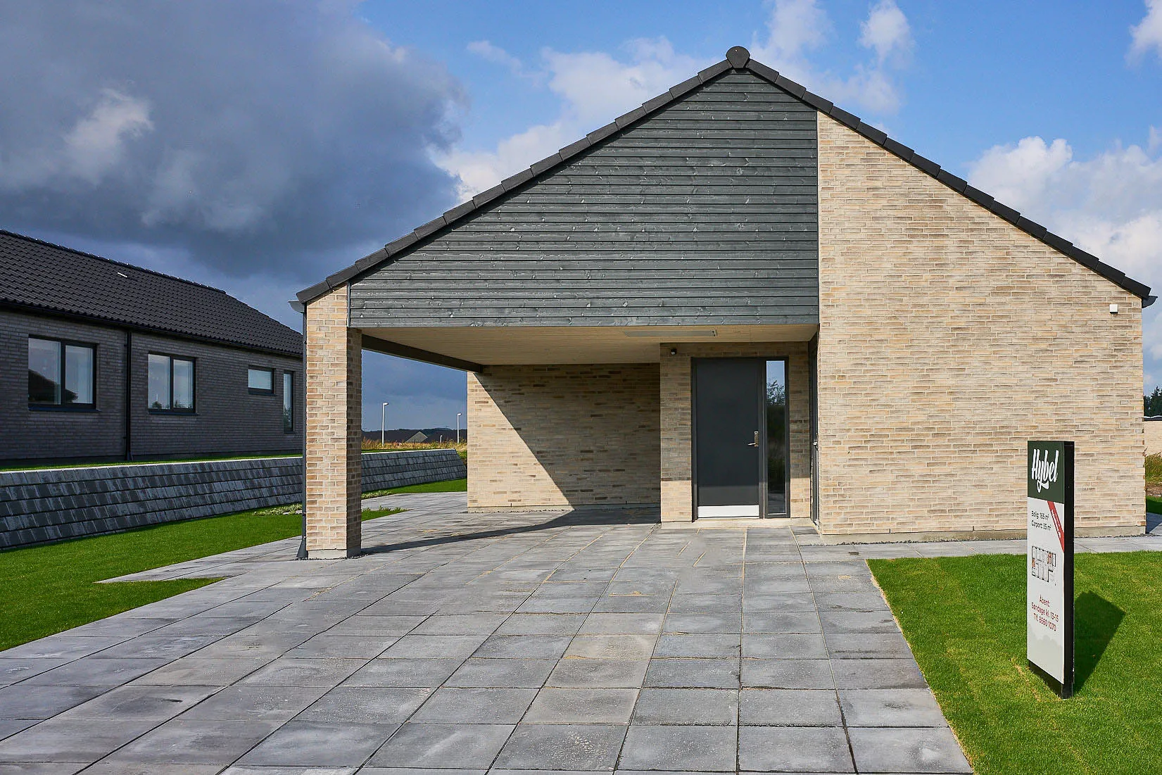 Længehus med veludnyttede kvadrameter og overdækket indgangsparti ved carporten