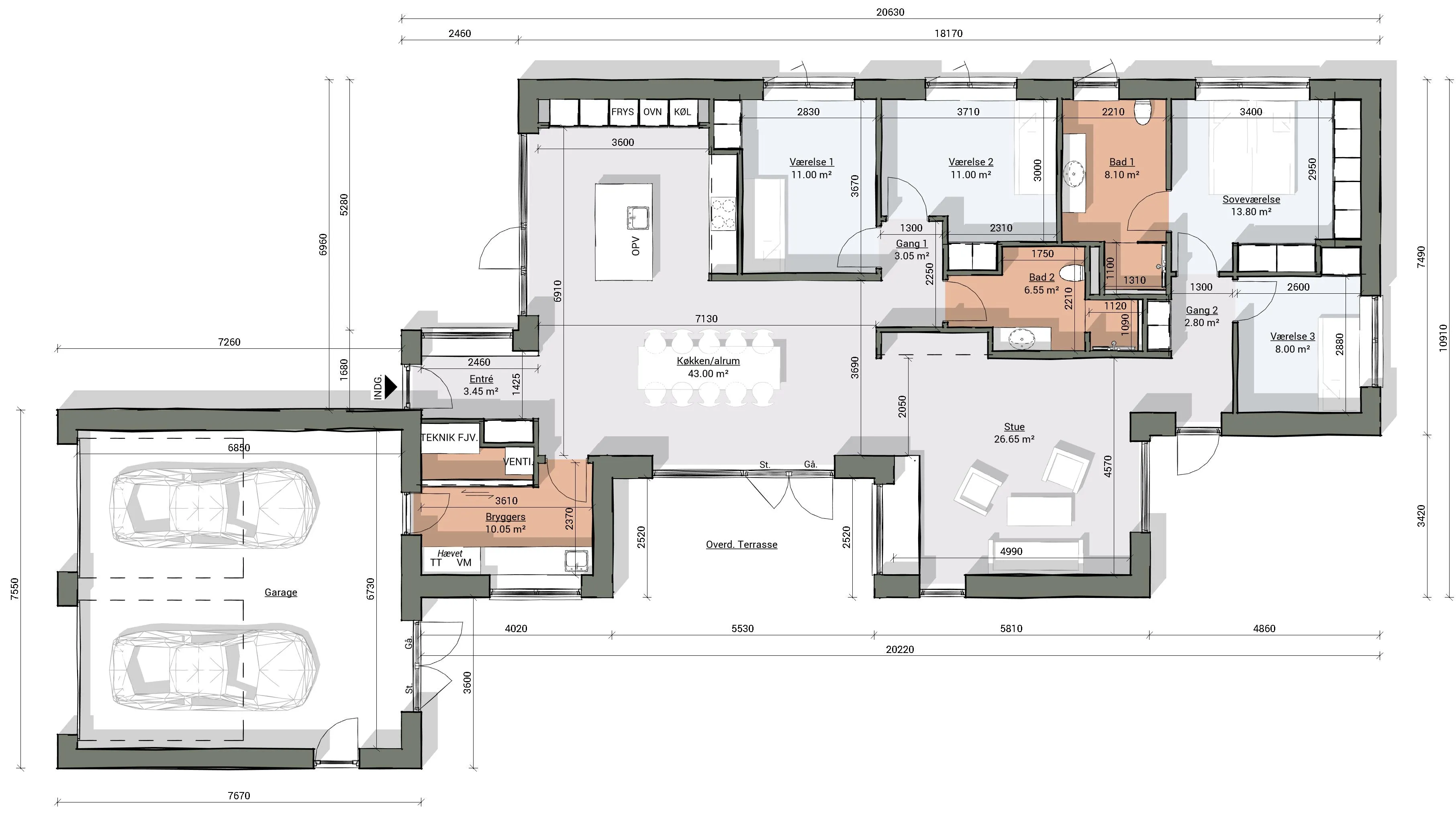 Bolig: 181 m2 Garage: 56 m2