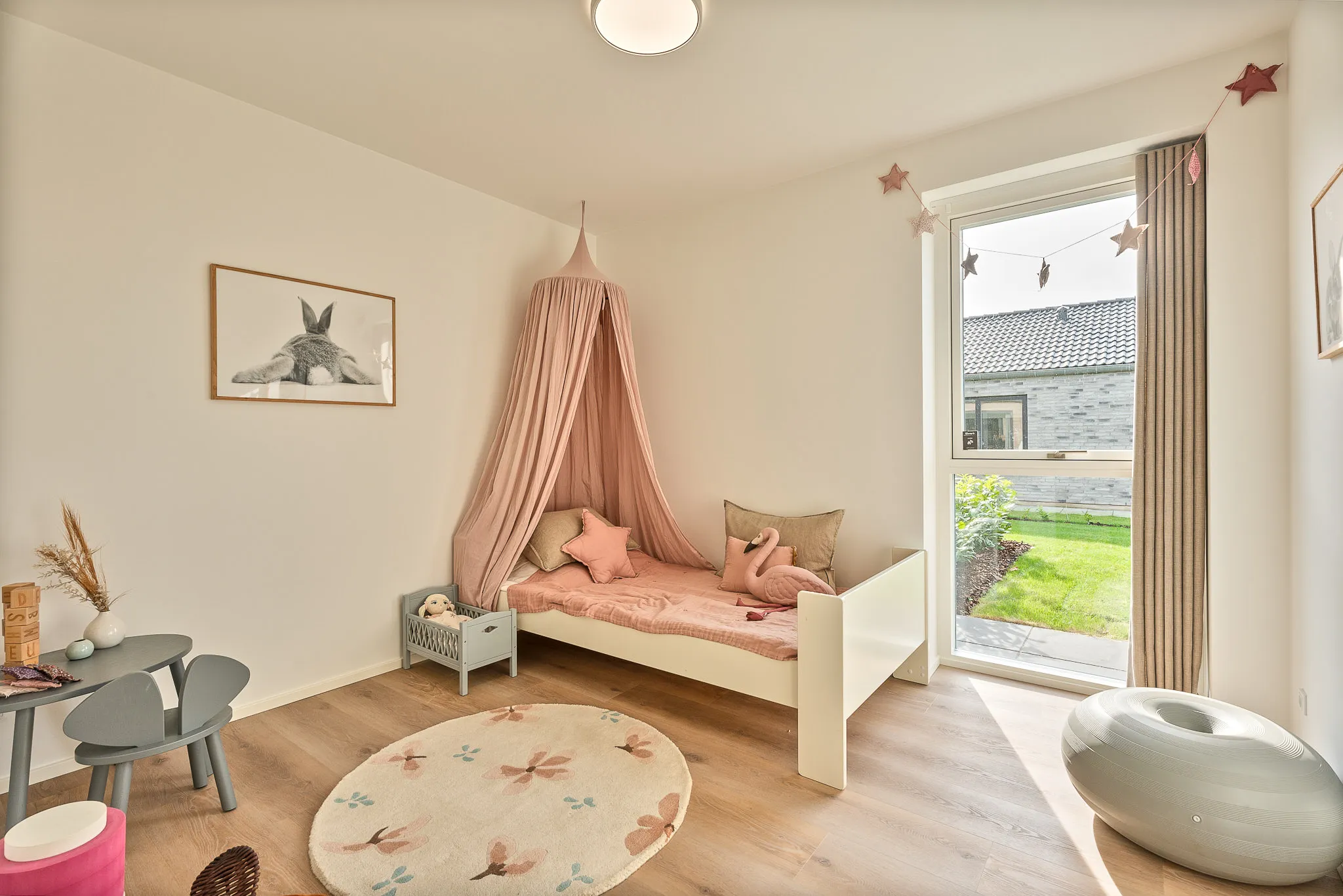 Tre gode værelser, køkken-alrum og stue i ét, praktisk bryggers og to badeværelser.