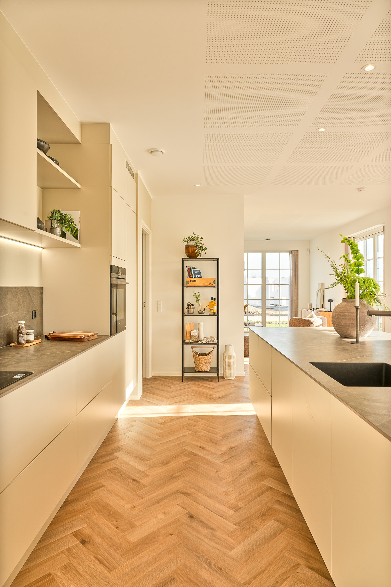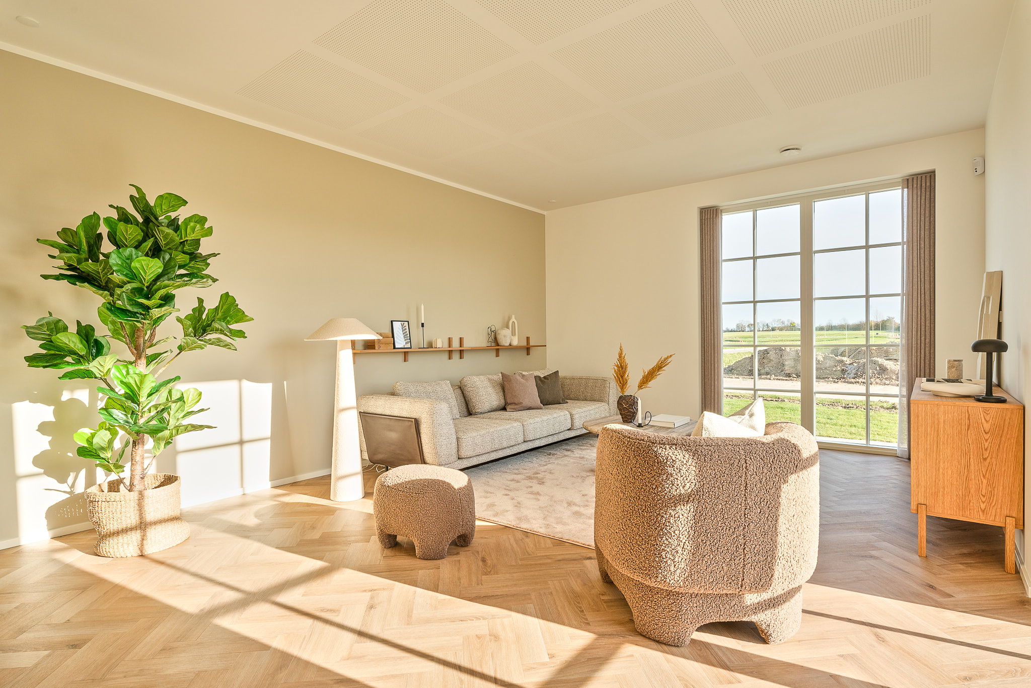Mursten: Vandskuret Klinker: Marazzi Freistil Sand Gulv: Hybel 157 - Sildeben, Scandinavian Oak