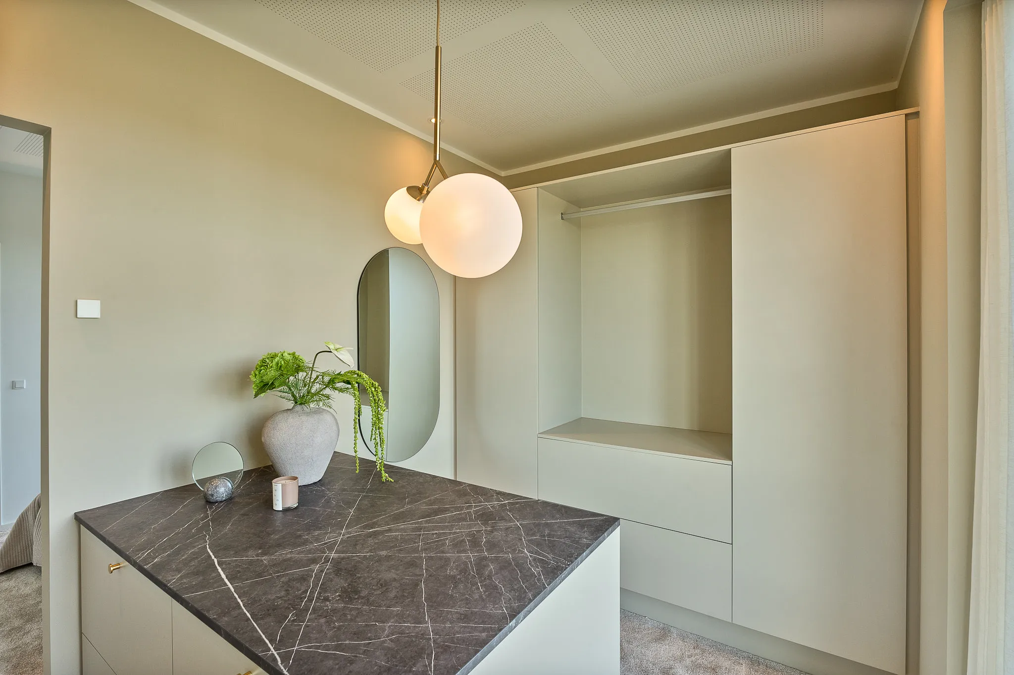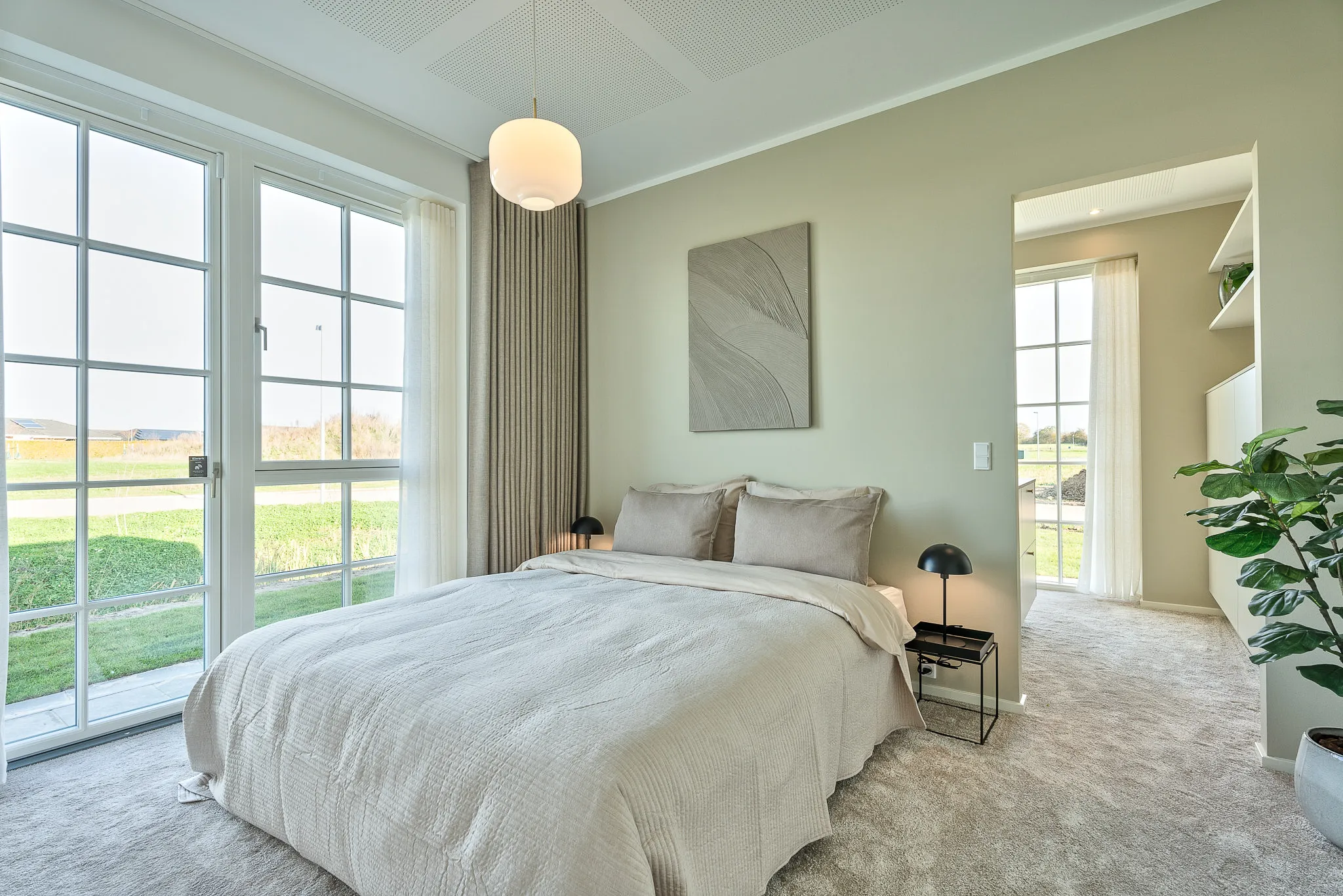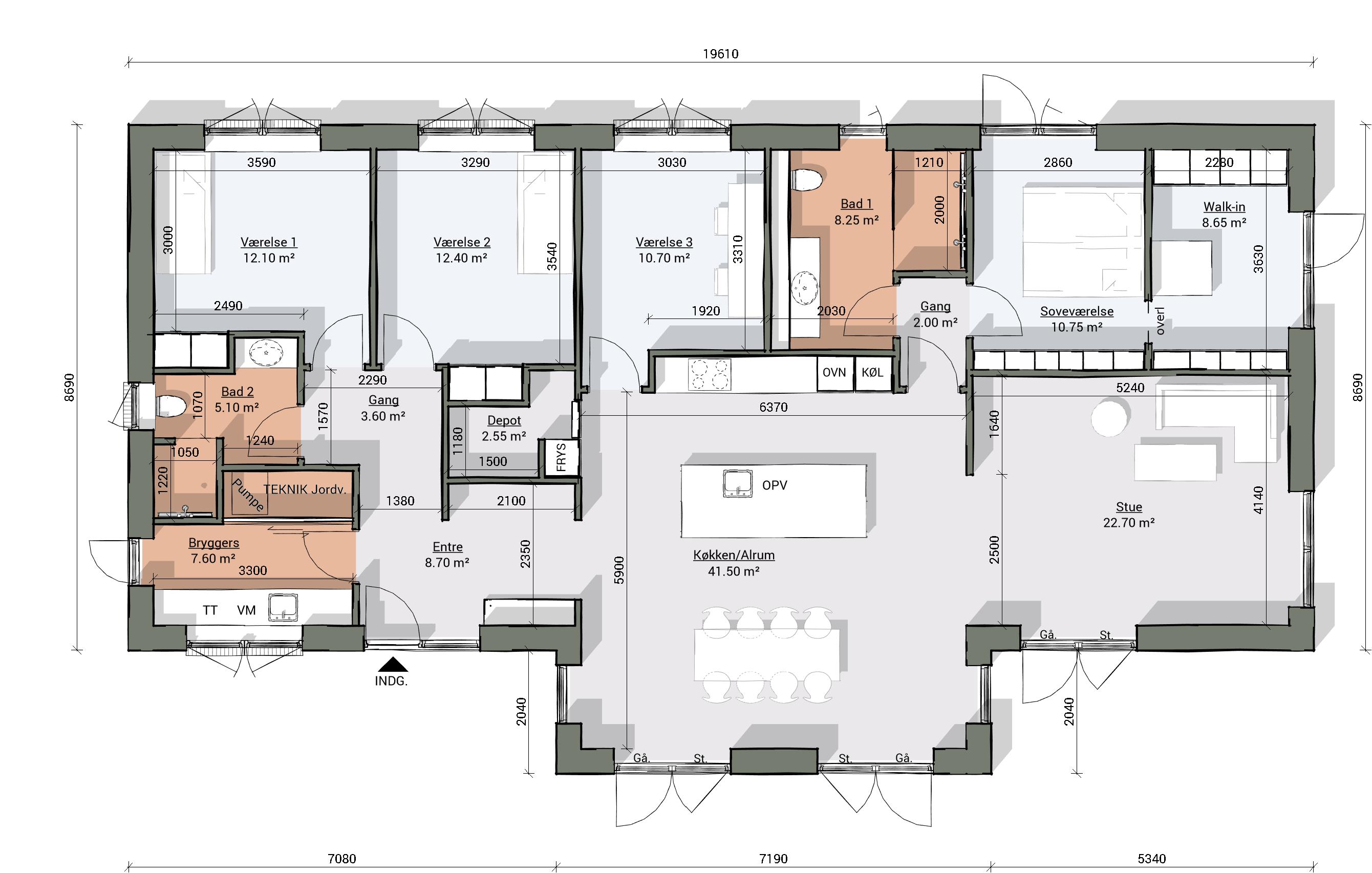 Voksenafdeling med stort walk-in og wellness badeværelse, røde tegl, lofthøjde på 262cm, sildebensgulve, 4 værelser, depot