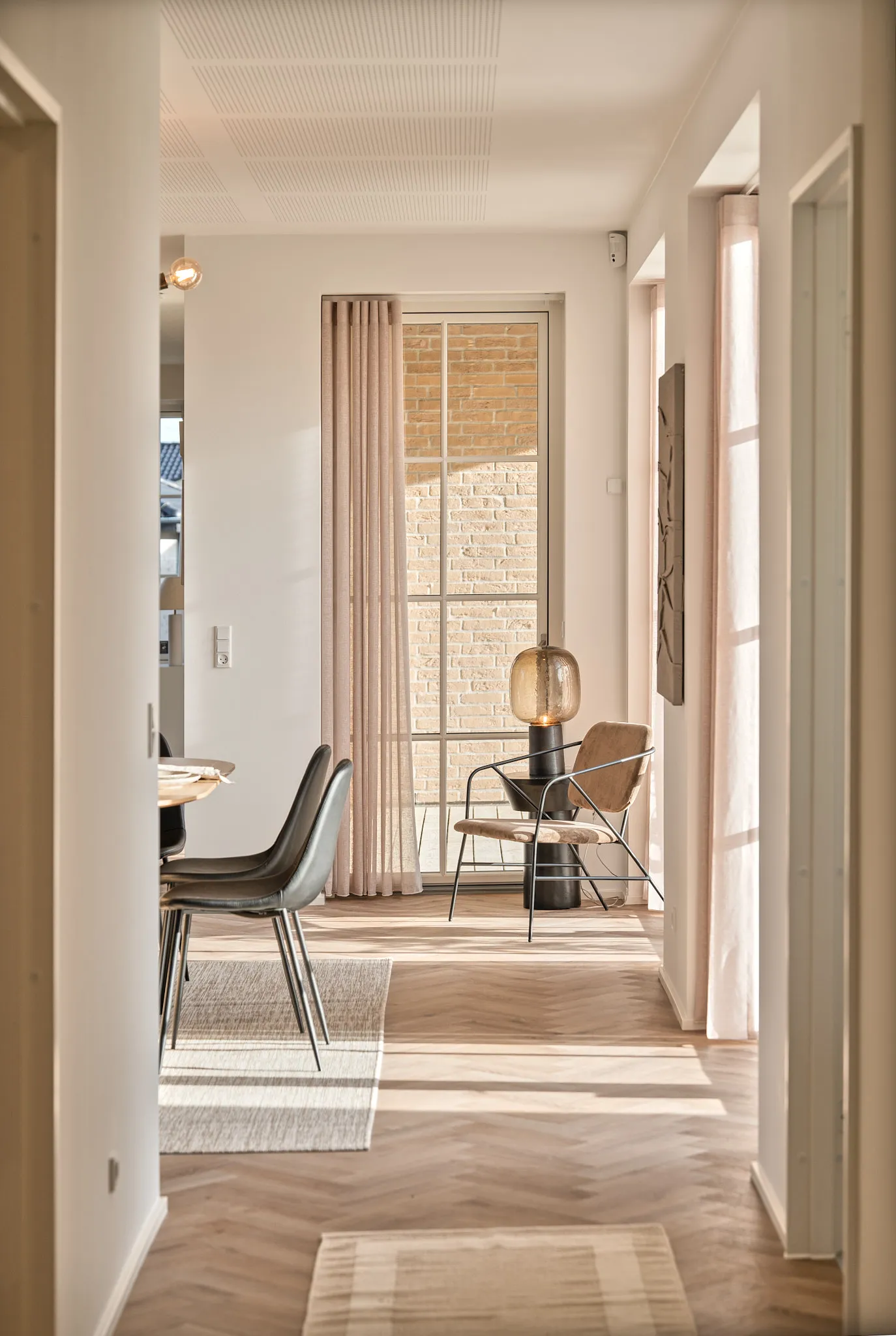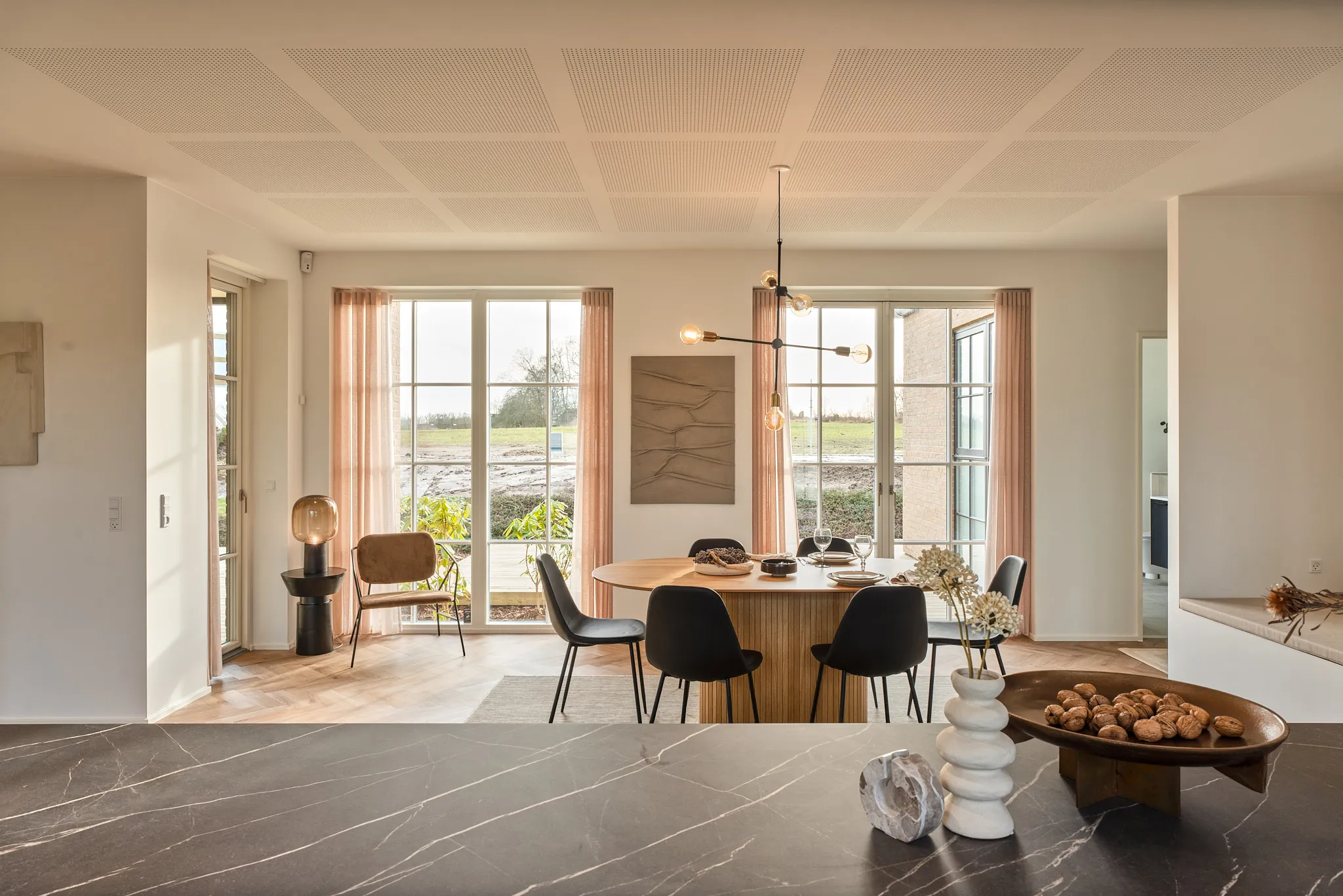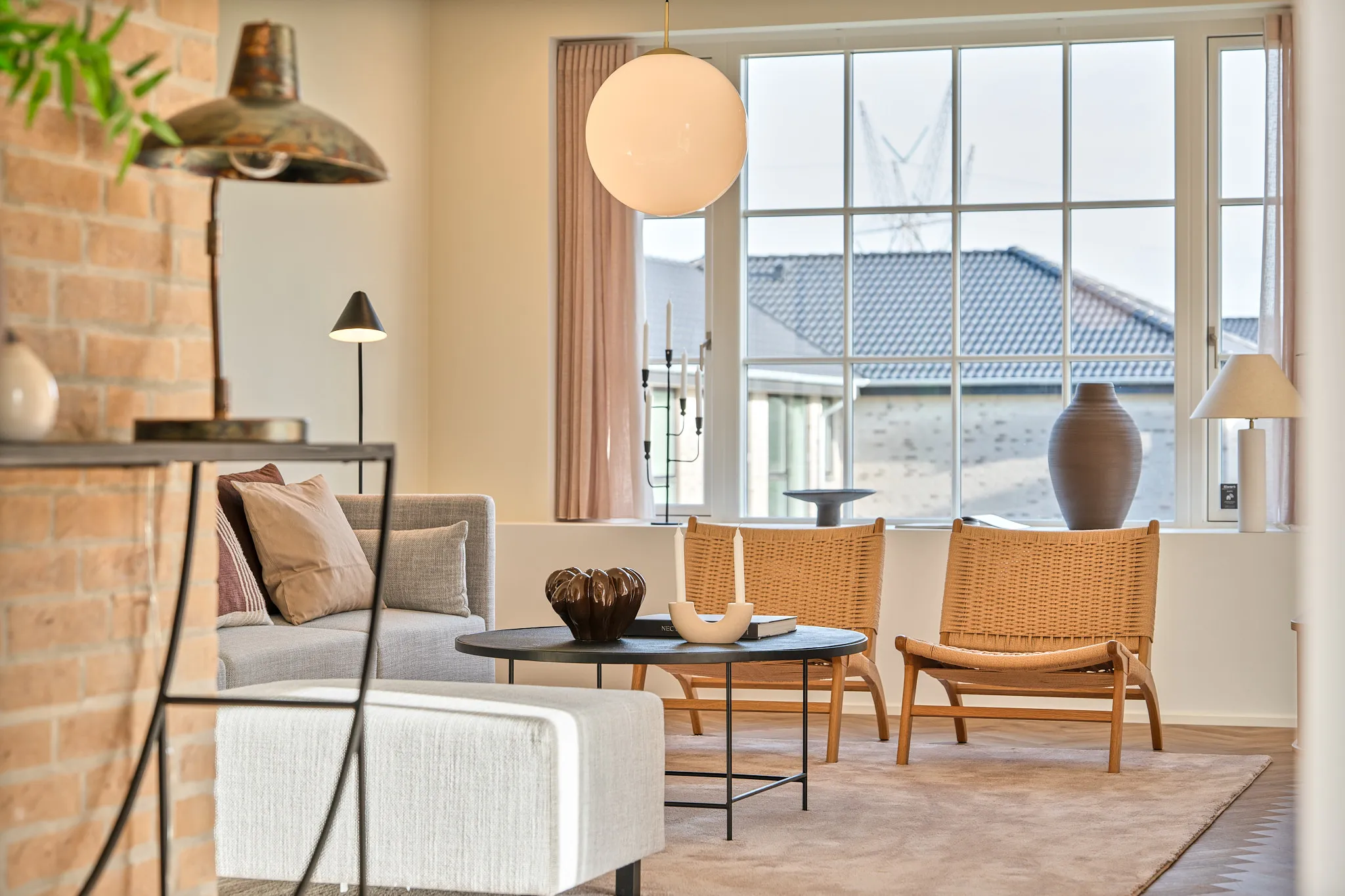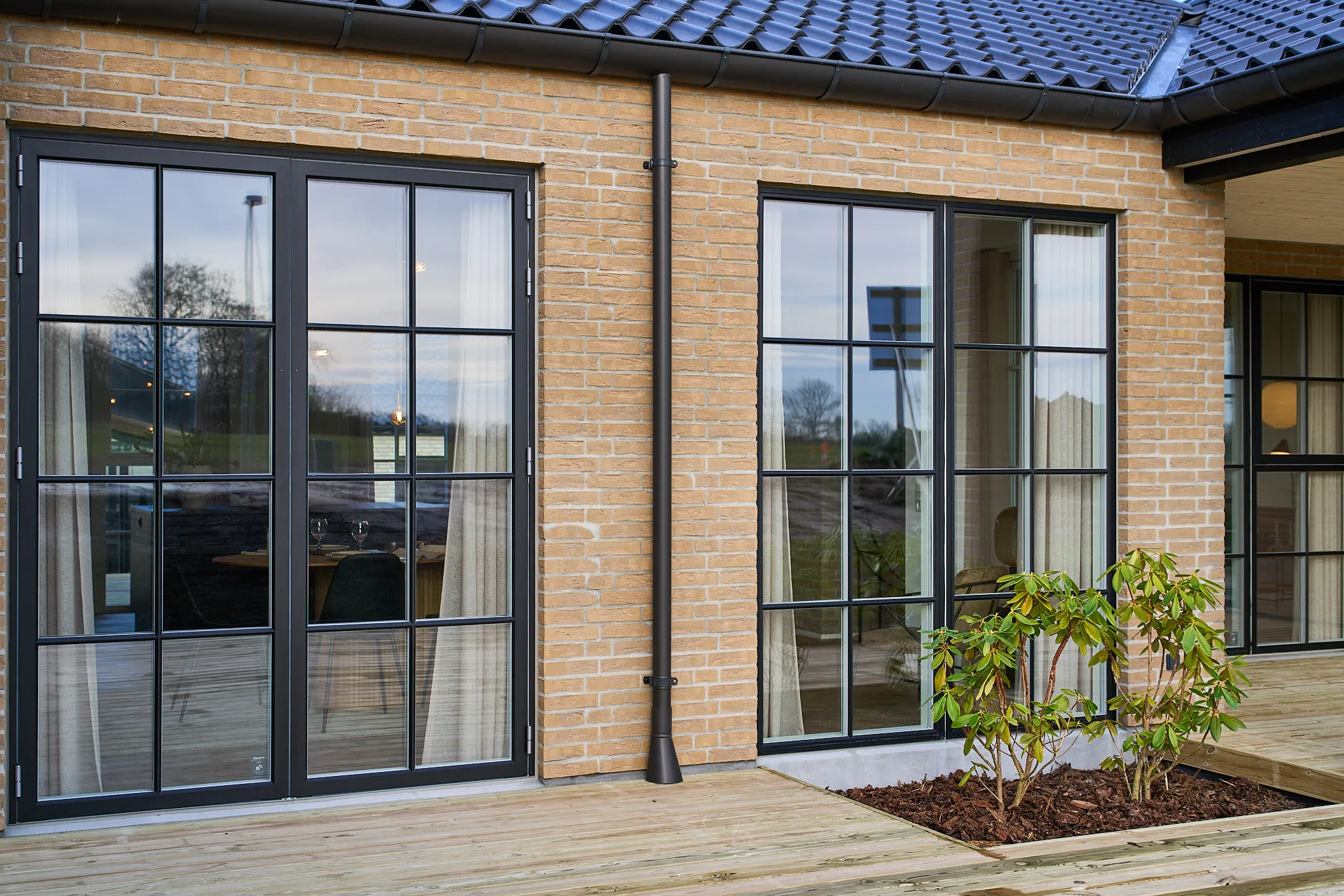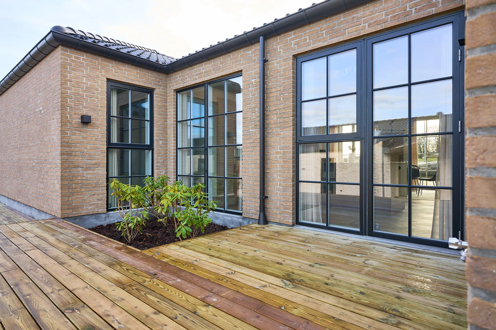 H-hus i romantisk stil med sprosser, sildebensgulve & flot vinrum