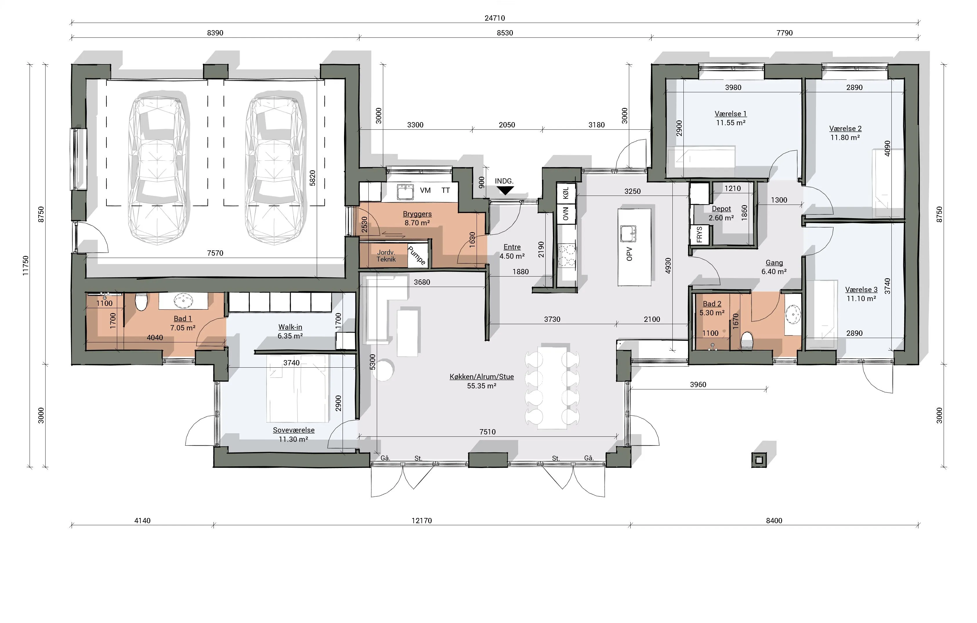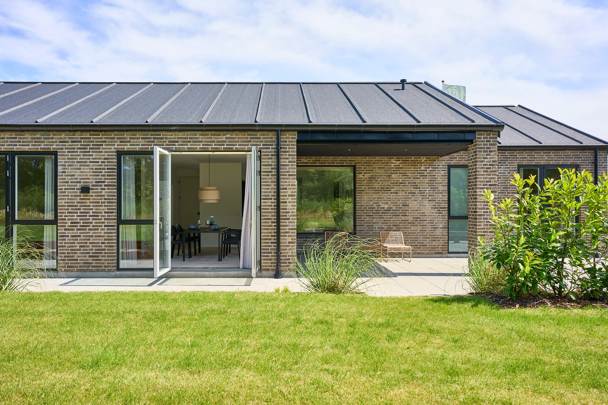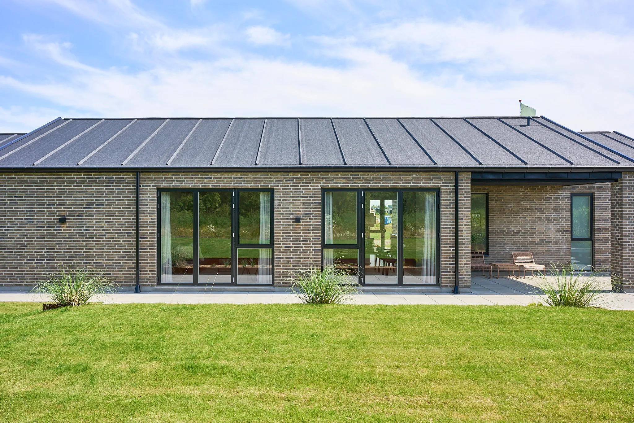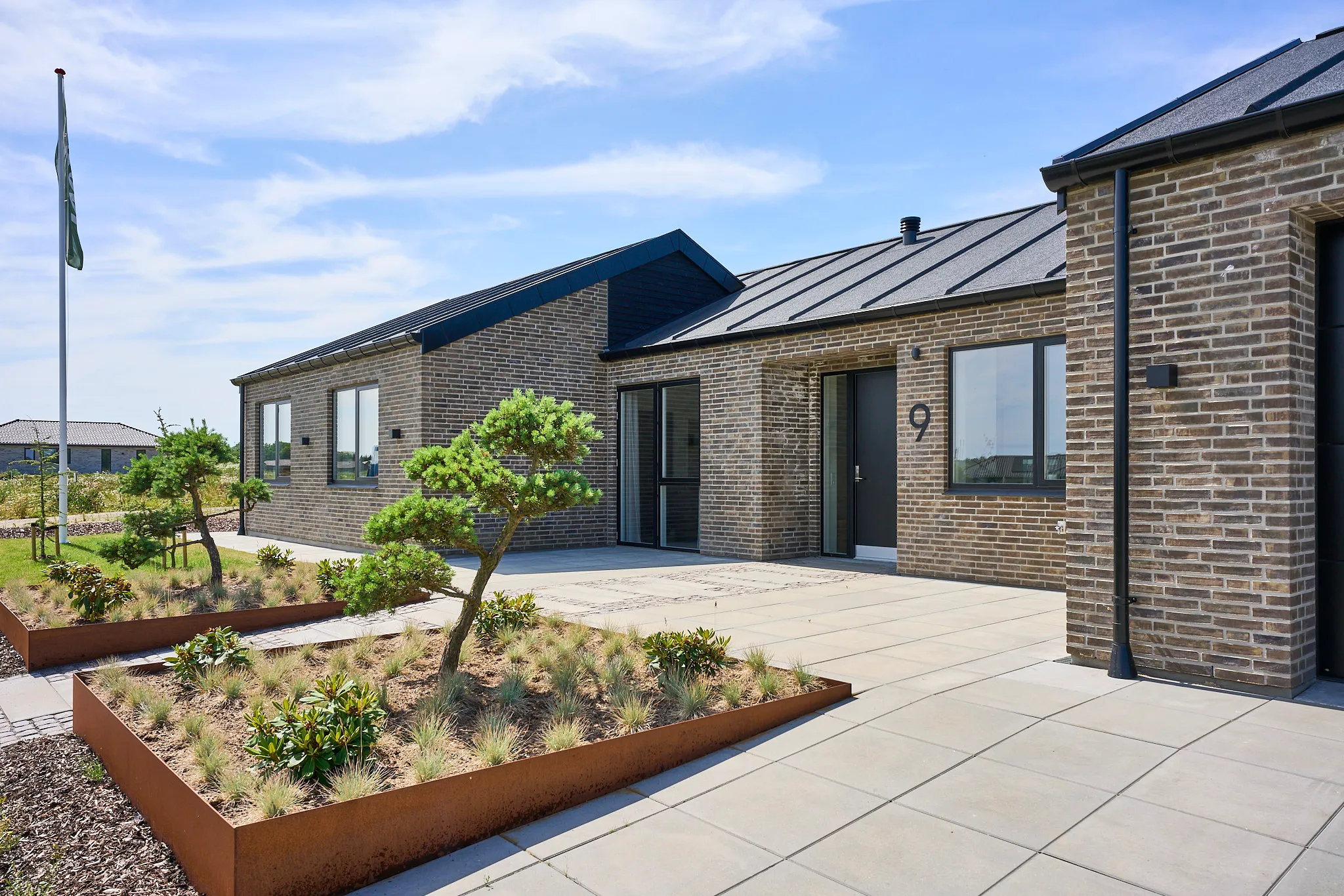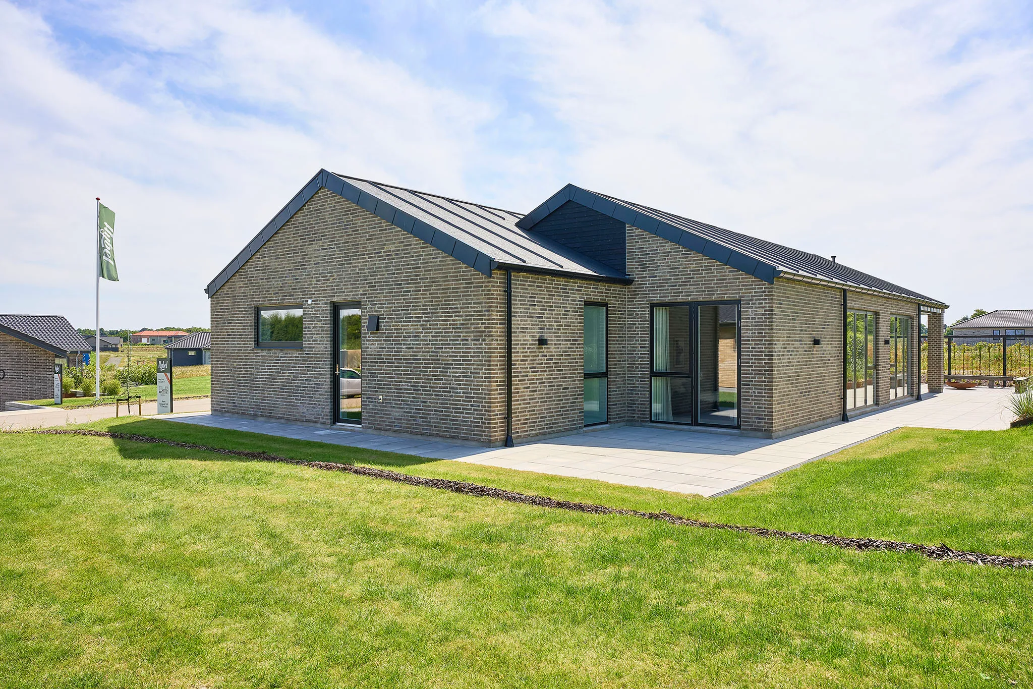 Hus med flot forskydning og unik mursten, Walk-in, overdækket terrasse og stor børneafdeling