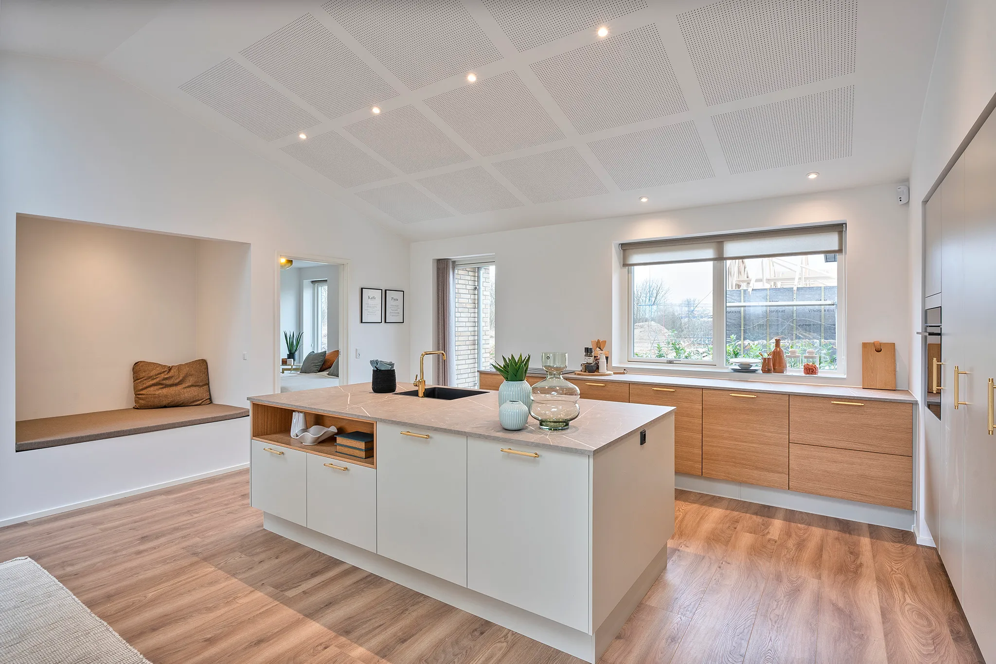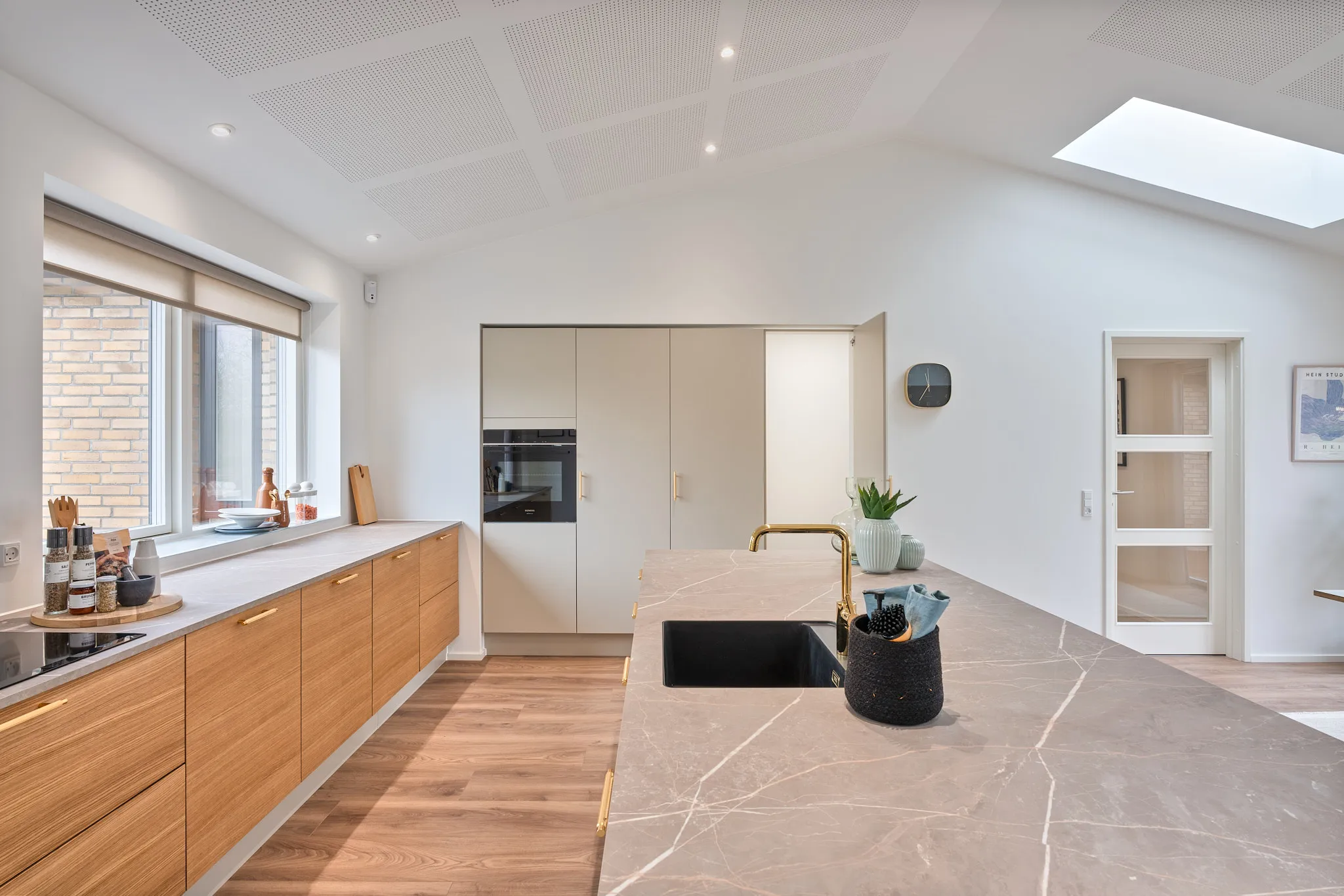 Mursten: Strøjer - B 517 Sputnik Klinker: Marazzi Freistil Sand Gulv: Hybel 421 (Nature Oak)