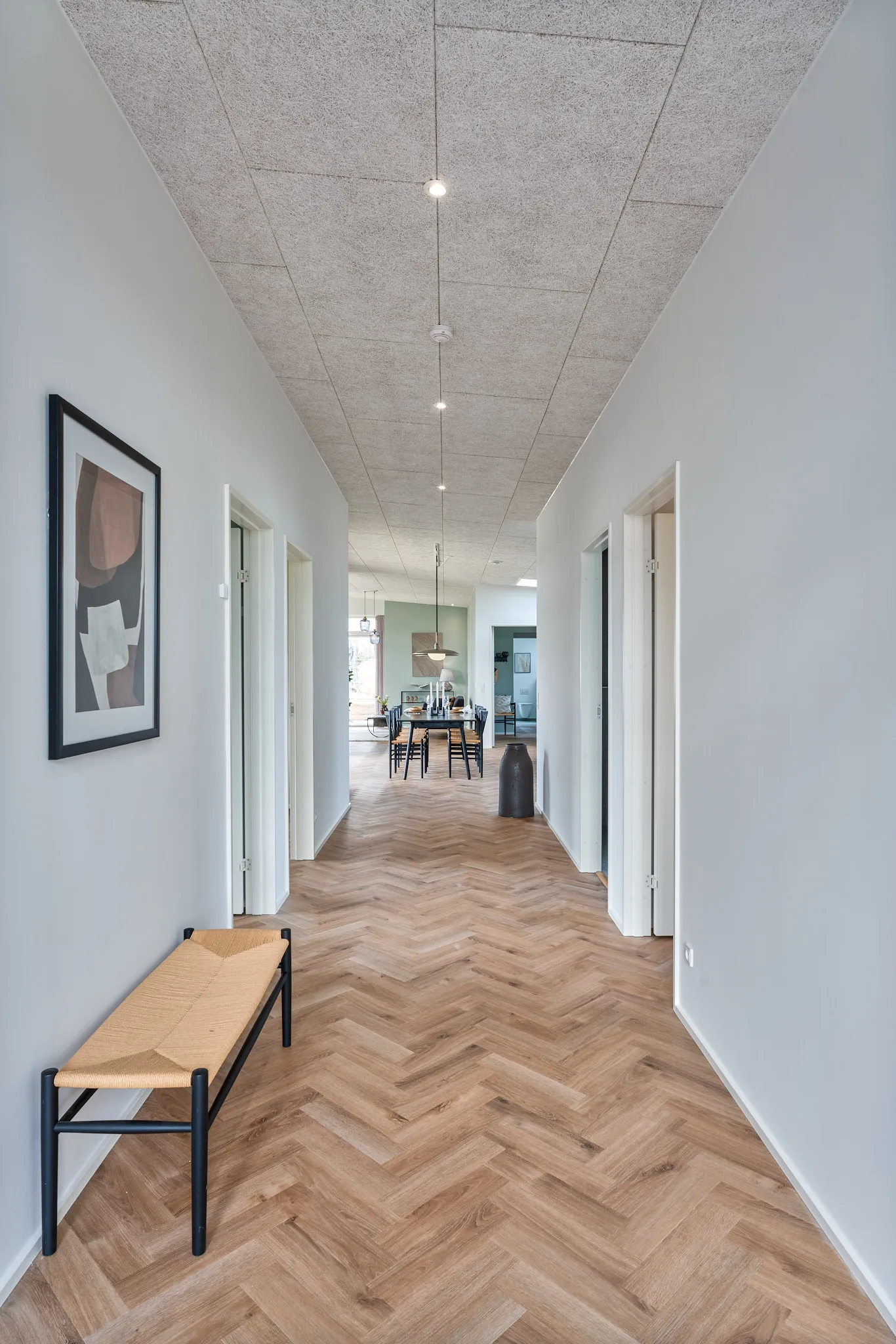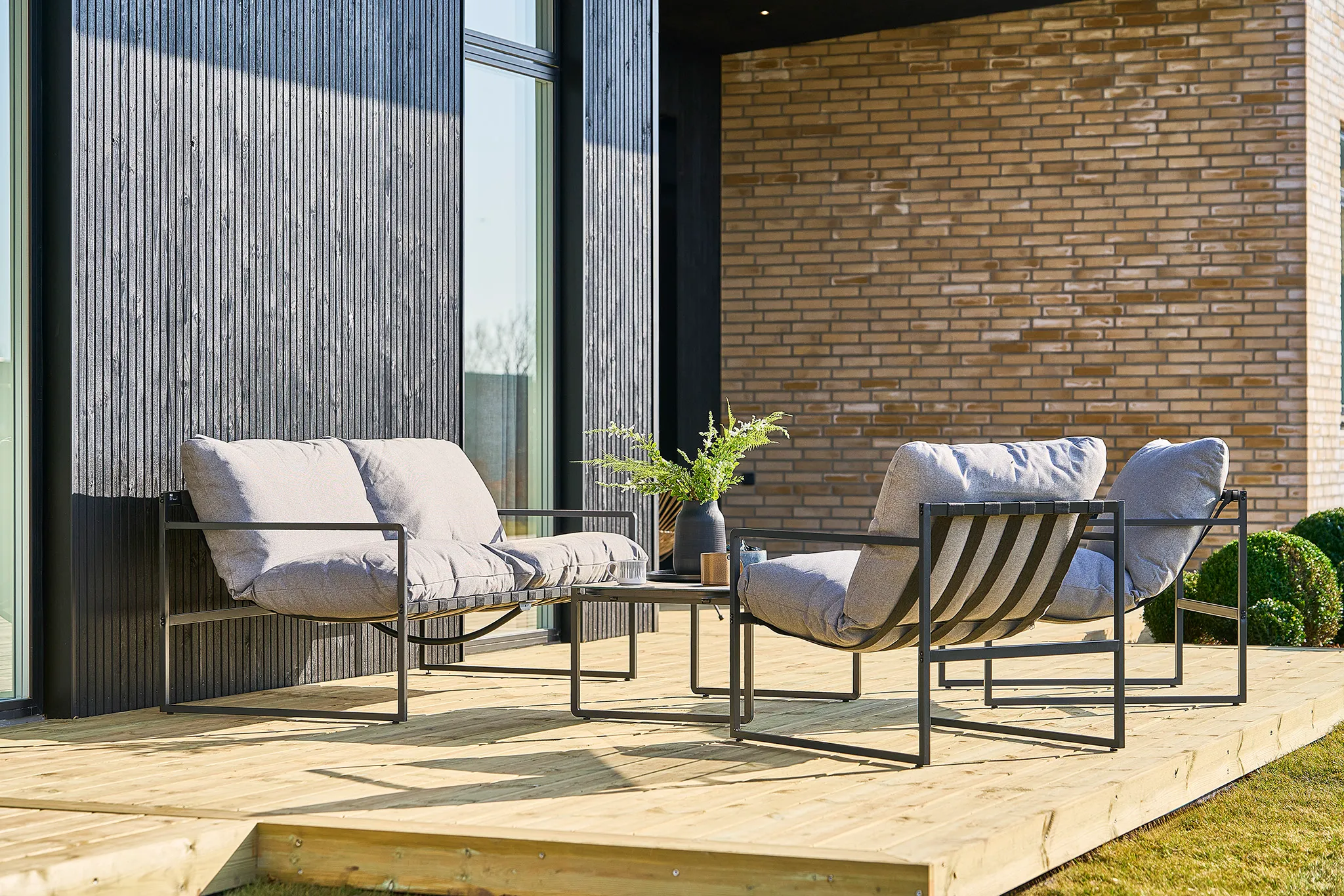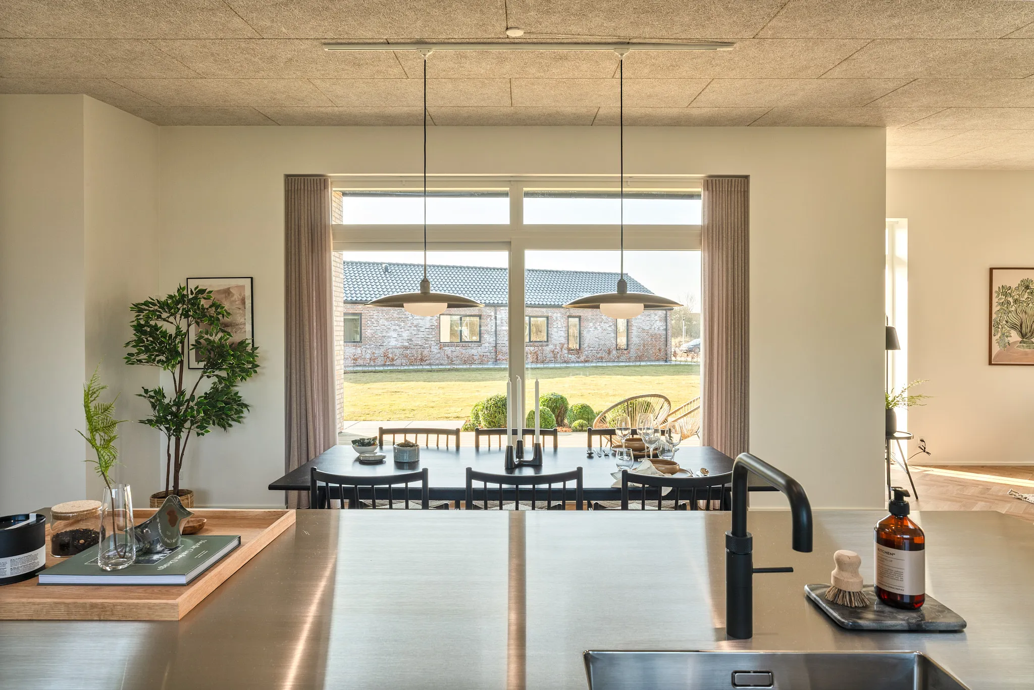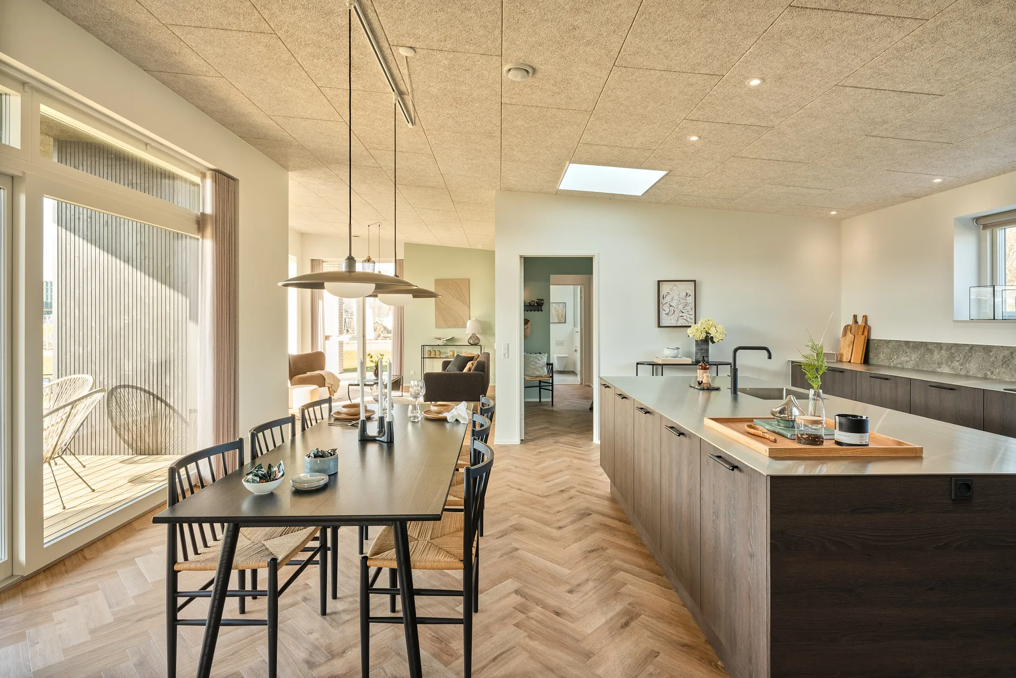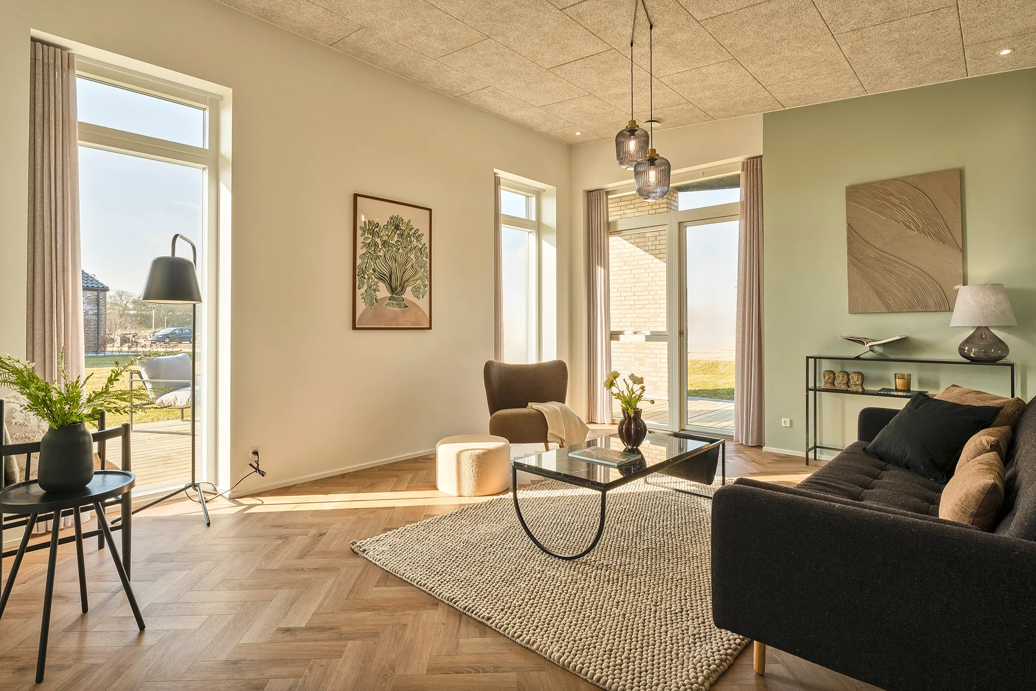 Elegant forskudt hus med træbeklædning og wellness-følelse