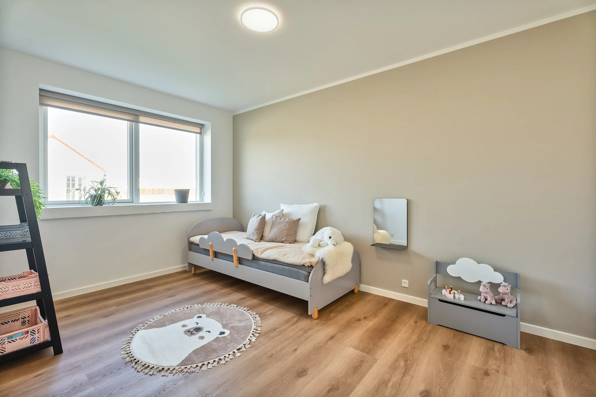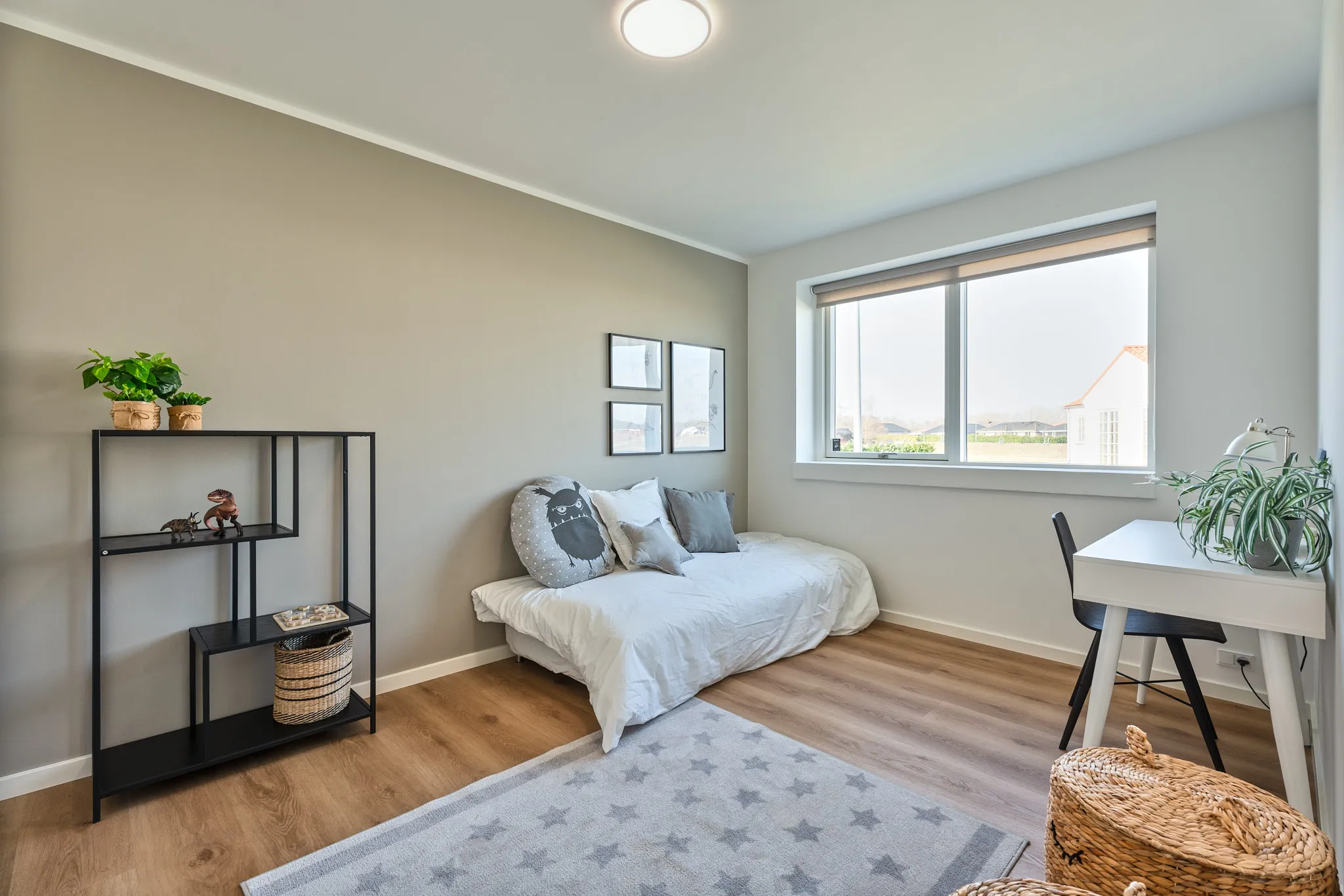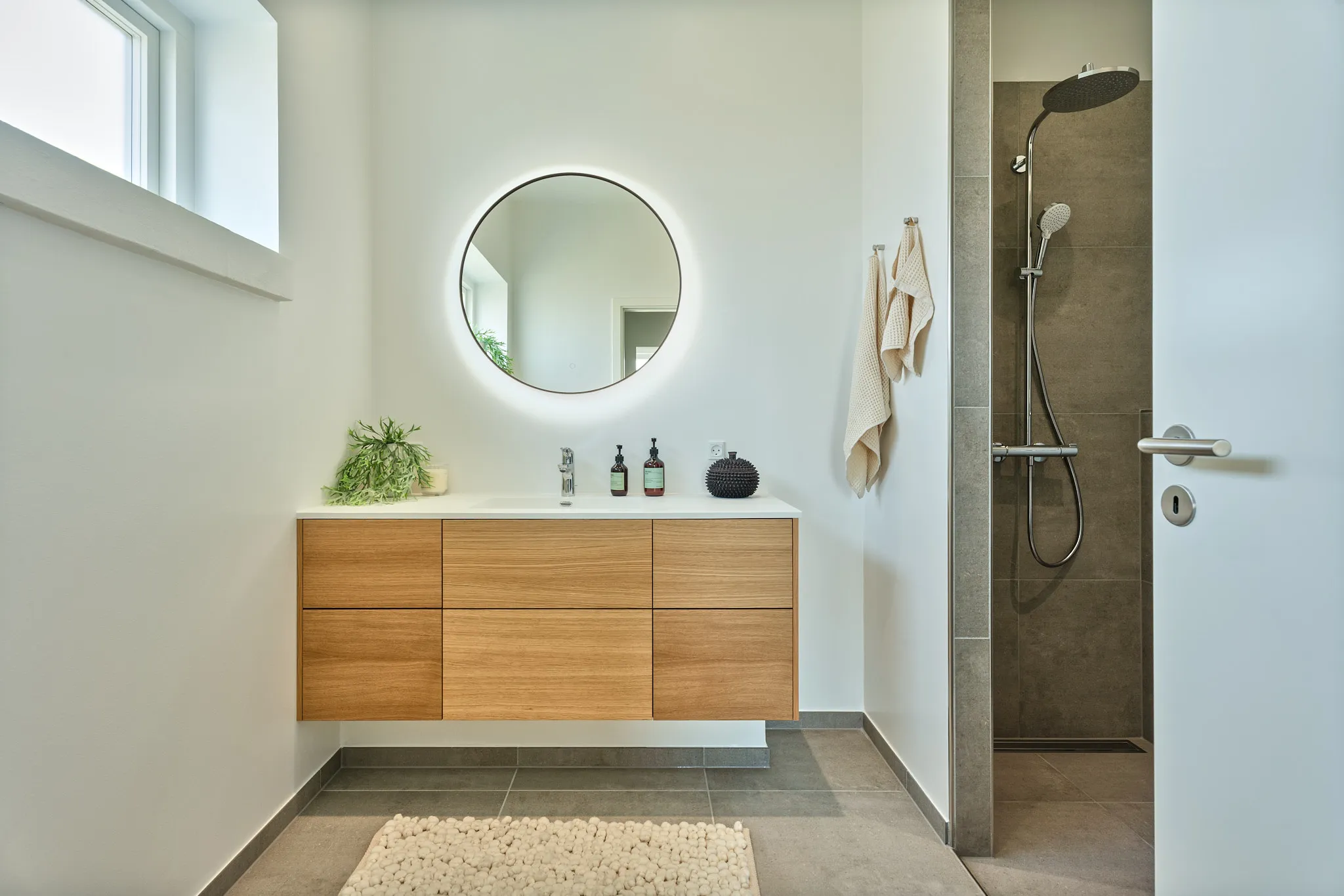 Mursten: EW2403 Gråklit Klinker: Kermos projekt lysegrå Gulv: Hybel 69 - Timberman Nebraska Oak