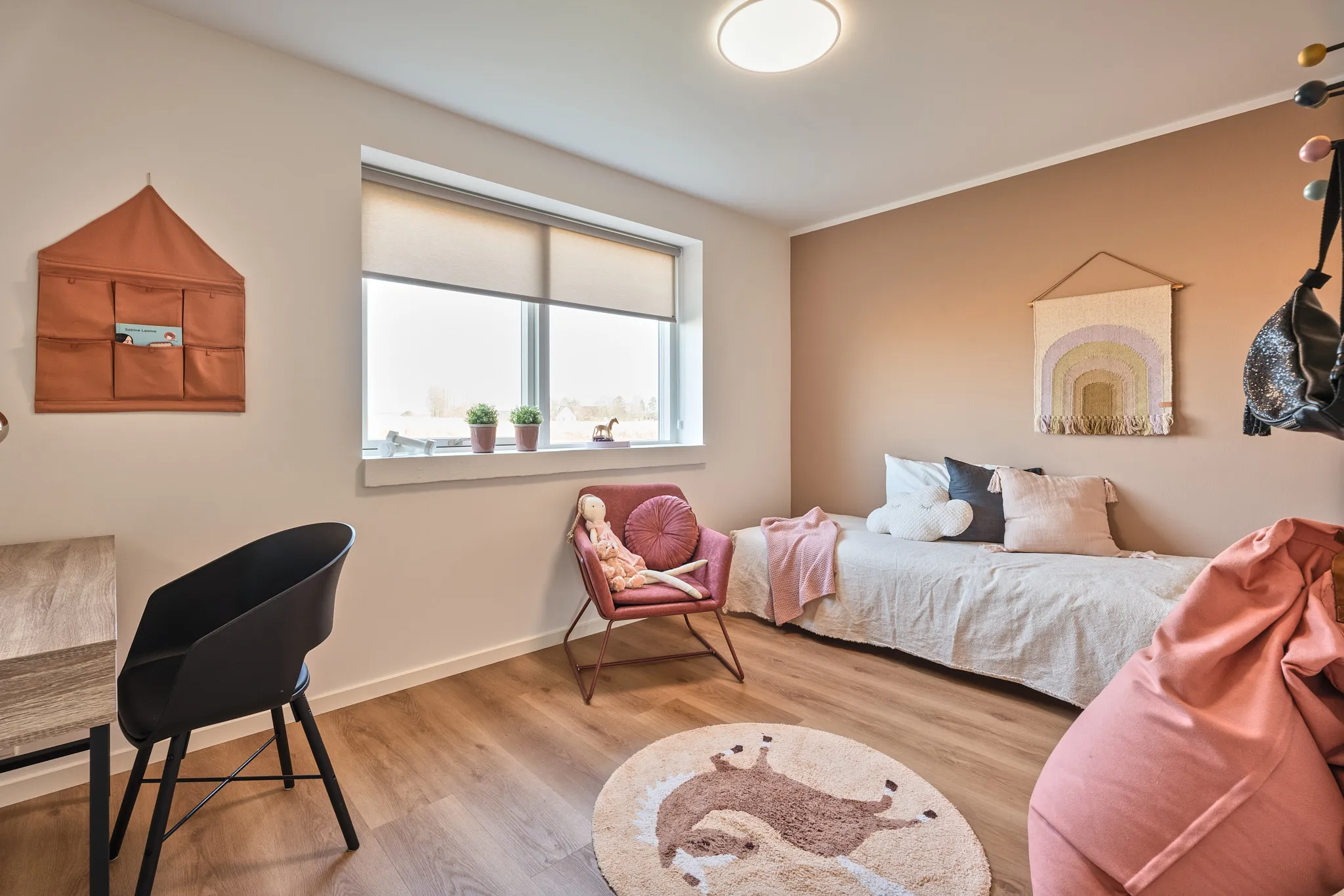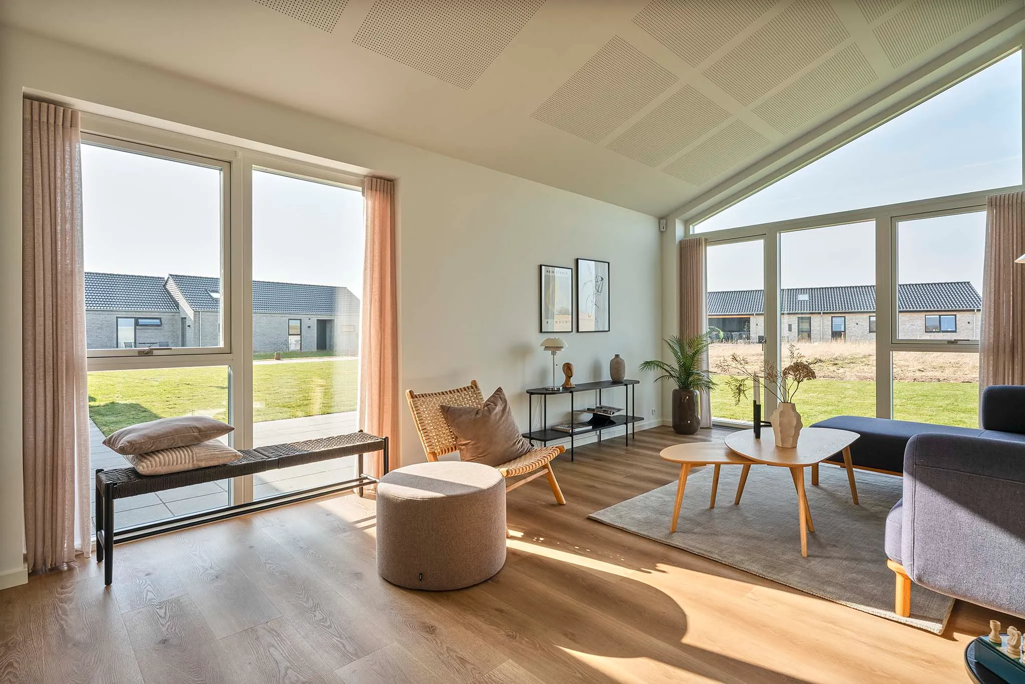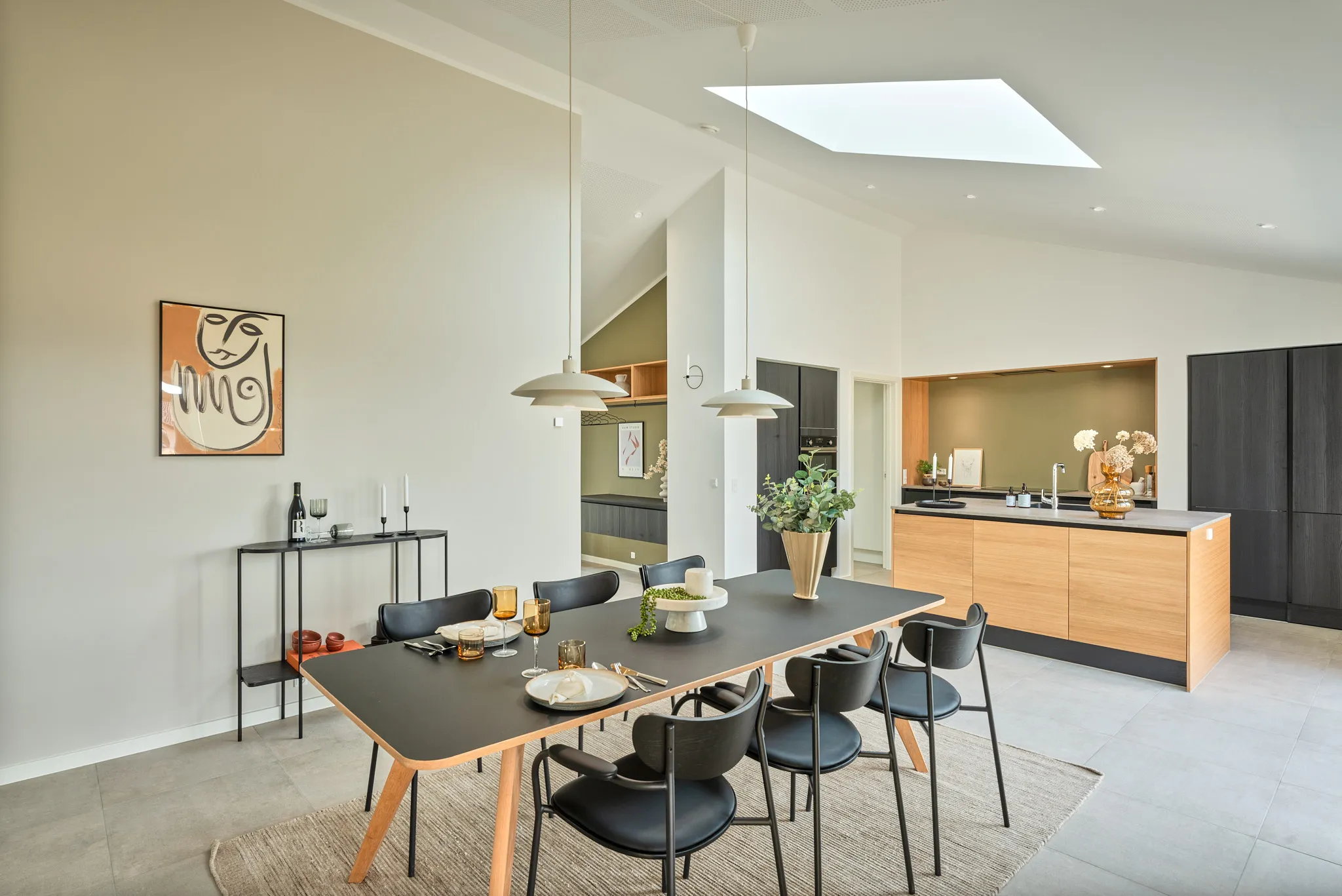 Vinkelhus med fantastisk rumfornemmelse, 20 graders skråloft, ovenlysvindue & maksimeret plads