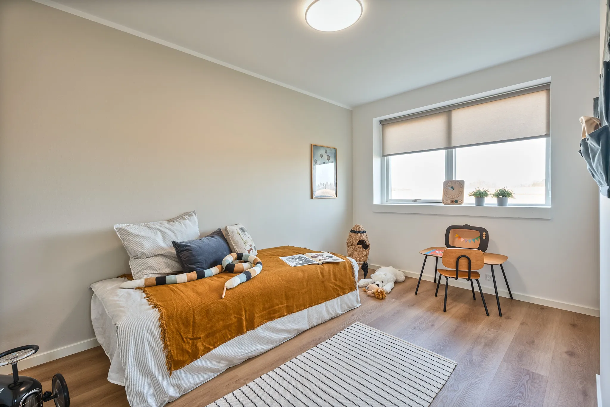 Lameller i carport, tegltag, stort køkken, lang siddebænk i køkken/alrum, veludnyttet bryggers, skjult walk-in & indbyggede skabe på værelser