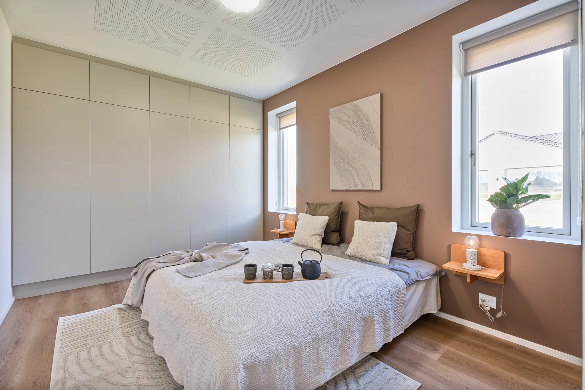 Mursten: EW2403 Gråklit Klinker: Kermos projekt lysegrå Gulv: Hybel 69 - Timberman Nebraska Oak